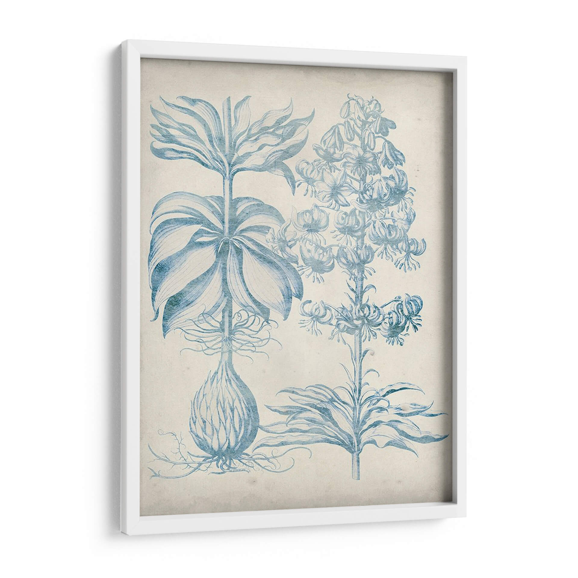 Sumérgete en la elegancia botánica con "Blue Fresco Floral II", una obra de arte que captura la delicadeza de la naturaleza con un toque de serenidad. Este cuadro decorativo presenta un estudio detallado de flores en flor y bulbos, ejecutado en una paleta de azules suaves sobre un fondo texturizado que evoca el encanto del fresco antiguo. Las líneas precisas y la composición equilibrada de Vision Studio invitan a la contemplación, creando un ambiente de calma y sofisticación en cualquier espacio. La riqueza de los detalles florales, desde los pétalos desplegados hasta las raíces expuestas, añade profundidad y un interés visual cautivador. Ideal para quienes buscan añadir un toque de naturaleza atemporal y refinada a su hogar u oficina, este lienzo es perfecto para salones, dormitorios o estudios, aportando una dosis de frescura y tranquilidad. Su estilo clásico con un aire contemporáneo lo convierte en una pieza versátil que complementa diversos estilos decorativos, desde el moderno hasta el tradicional, siendo un punto focal que inspira paz y belleza.