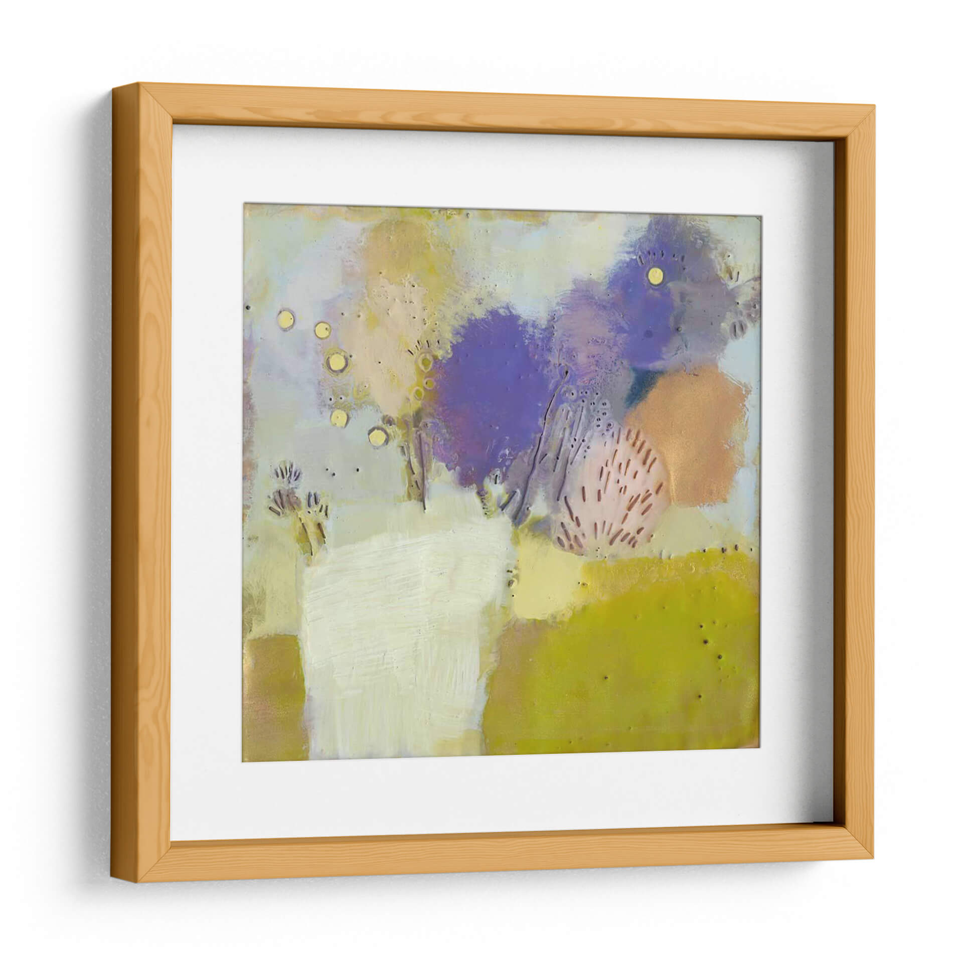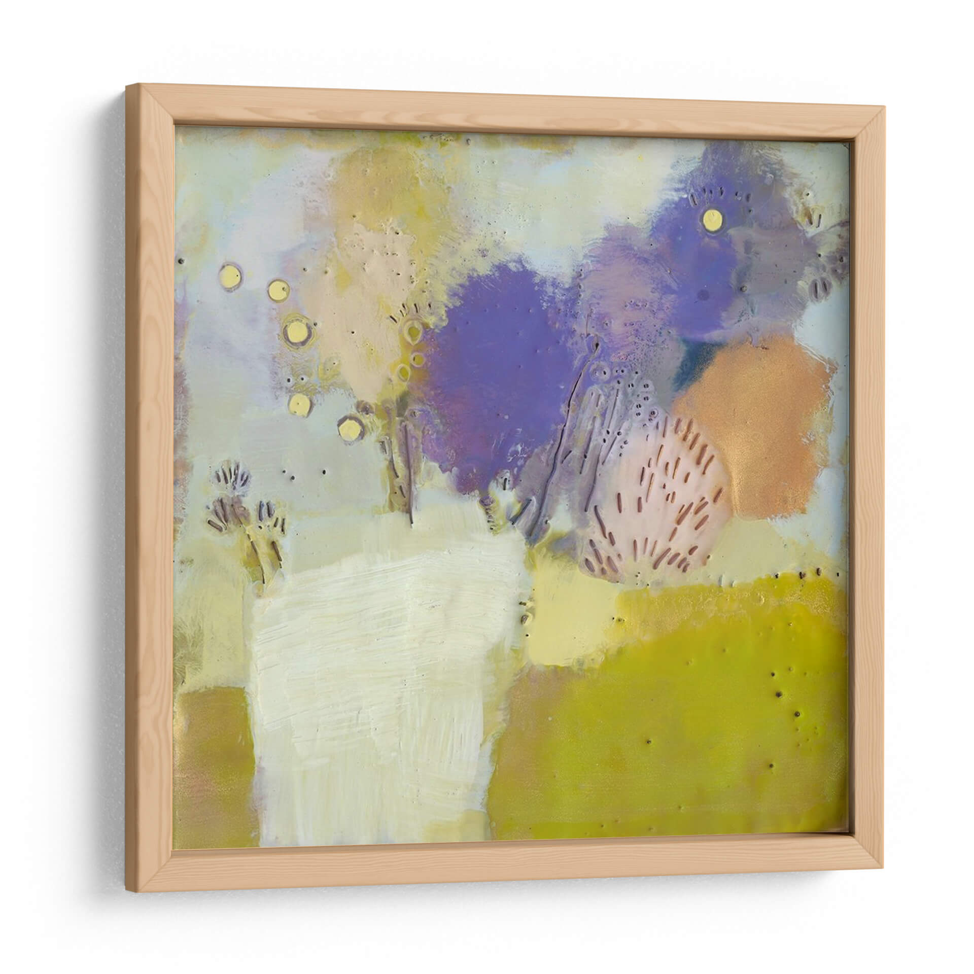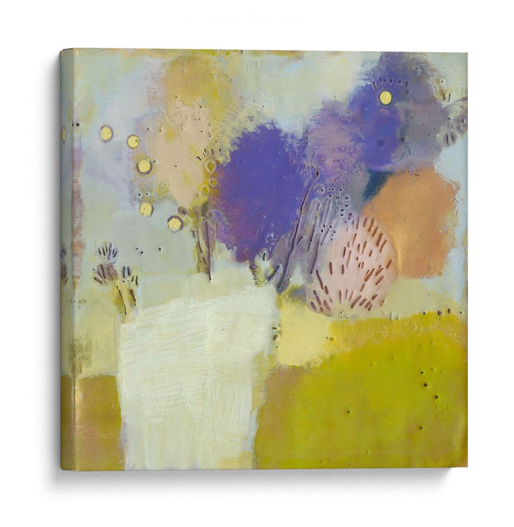 Sumérgete en la serenidad y el color con "Blume I", una obra de arte abstracto contemporáneo de Sue Jachimiec. Esta pieza cautivadora presenta una delicada danza de formas orgánicas y texturas sutiles, evocando la belleza efímera de la naturaleza en flor. La paleta de colores, dominada por suaves tonos pastel de lavanda, amarillo y verde, se complementa con toques vibrantes que crean una atmósfera de calma y optimismo. Las pinceladas expresivas y la composición equilibrada invitan a la contemplación, haciendo de este cuadro decorativo una adición perfecta para cualquier espacio que busque un toque de sofisticación y tranquilidad. Ideal para salones modernos, dormitorios acogedores u oficinas que necesiten inspiración, "Blume I" es un recordatorio visual de la belleza sutil que nos rodea. Su estilo abstracto permite una interpretación personal, resonando con una amplia gama de gustos decorativos. Añade esta obra maestra a tu colección y transforma tu hogar en un oasis de paz y estilo.