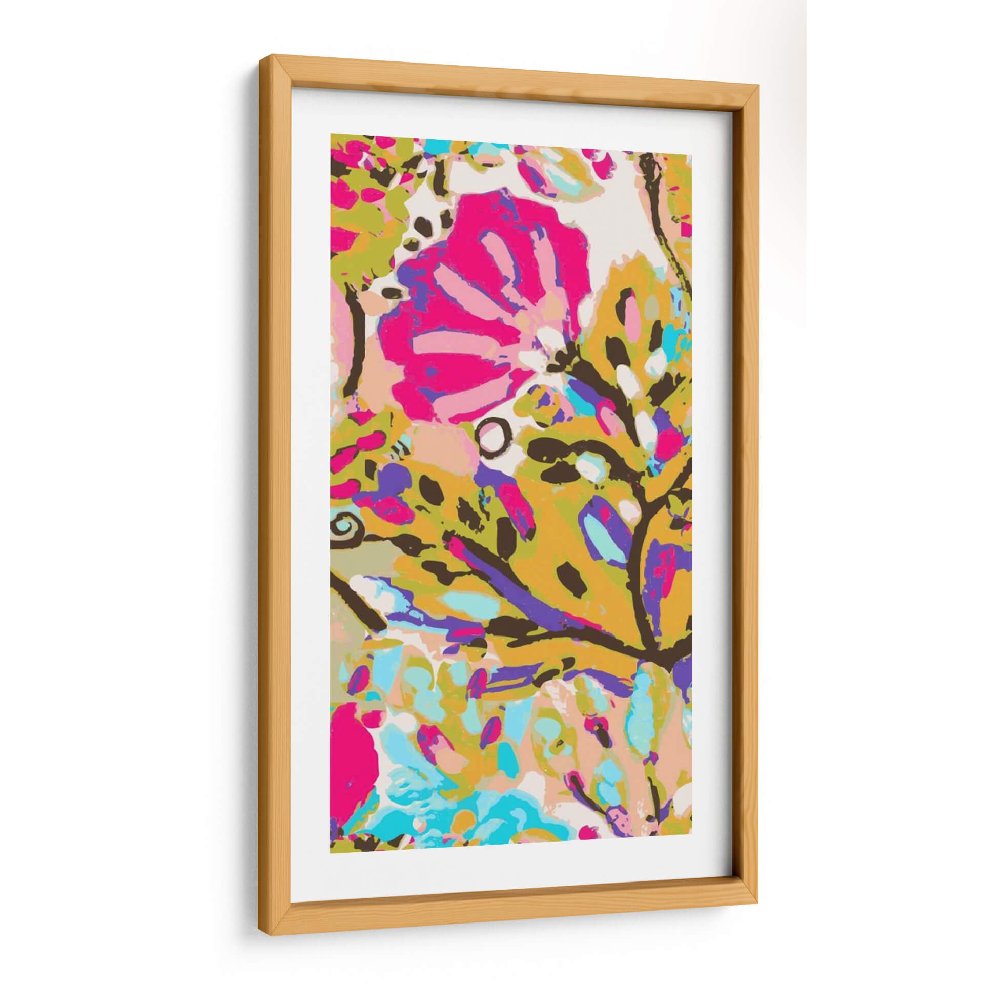 Inyecta vitalidad y un toque bohemio a tu espacio con "Boho Rosa Floral I", una obra vibrante del artista Karen Fields. Este cuadro decorativo es una explosión de color y forma, caracterizado por pinceladas audaces y una composición orgánica que evoca la belleza de la naturaleza reimaginada a través de una lente contemporánea. Los intensos tonos fucsia, vibrante amarillo ocre y turquesa se entrelazan con sutiles toques de morado y verde oliva, creando una paleta rica y estimulante que captura la mirada y eleva el ánimo. El estilo, que fusiona elementos abstractos con insinuaciones florales, permite una interpretación personal, haciendo de cada visión de la obra una experiencia única. Su atmósfera enérgica pero a la vez orgánica la convierte en una pieza ideal para salones modernos, dormitorios que buscan un acento audaz o incluso oficinas que desean un ambiente creativo y dinámico. "Boho Rosa Floral I" no es solo una decoración; es una declaración de estilo que invita a la alegría y la vitalidad a tu hogar, transformando cualquier pared en un punto focal lleno de personalidad y arte contemporáneo.