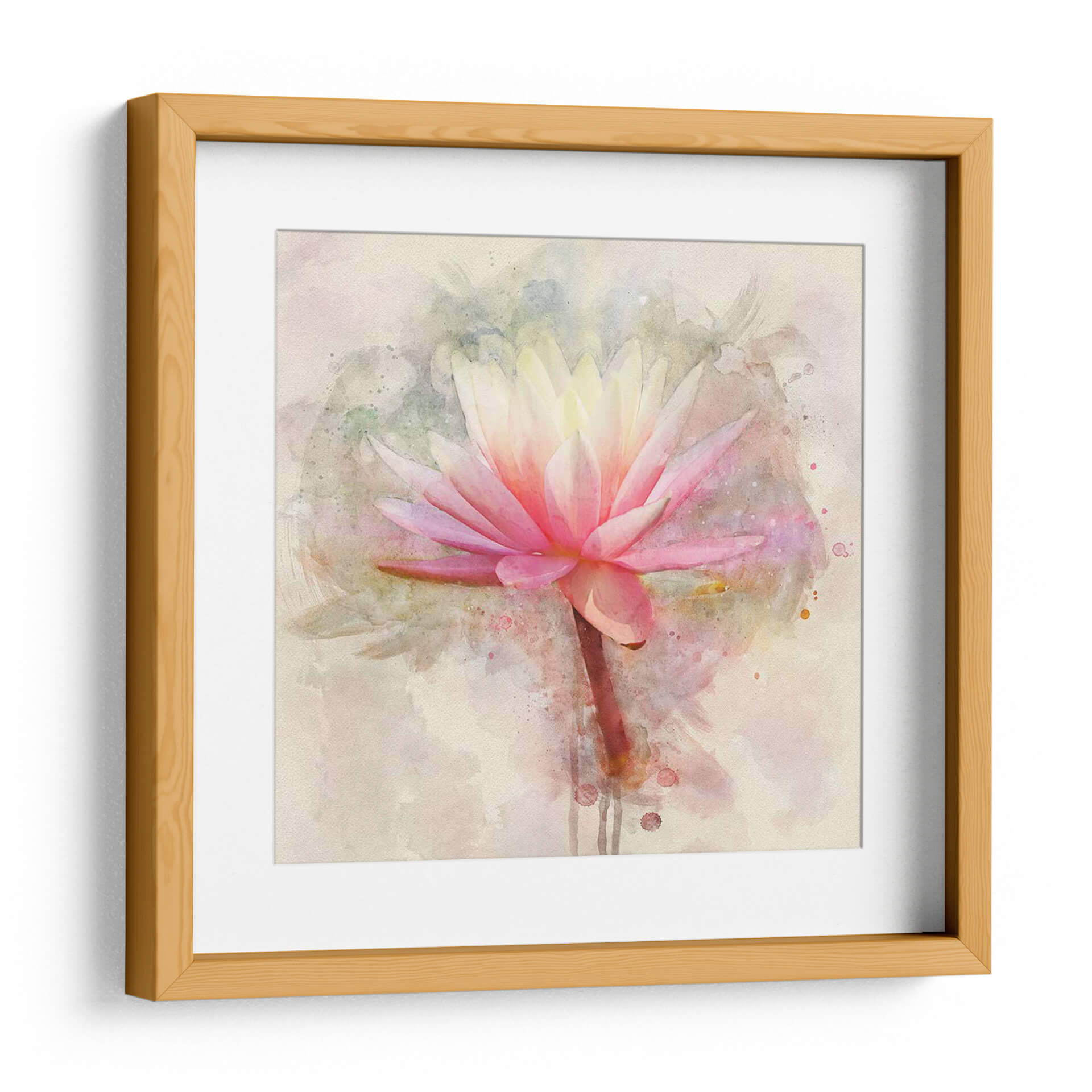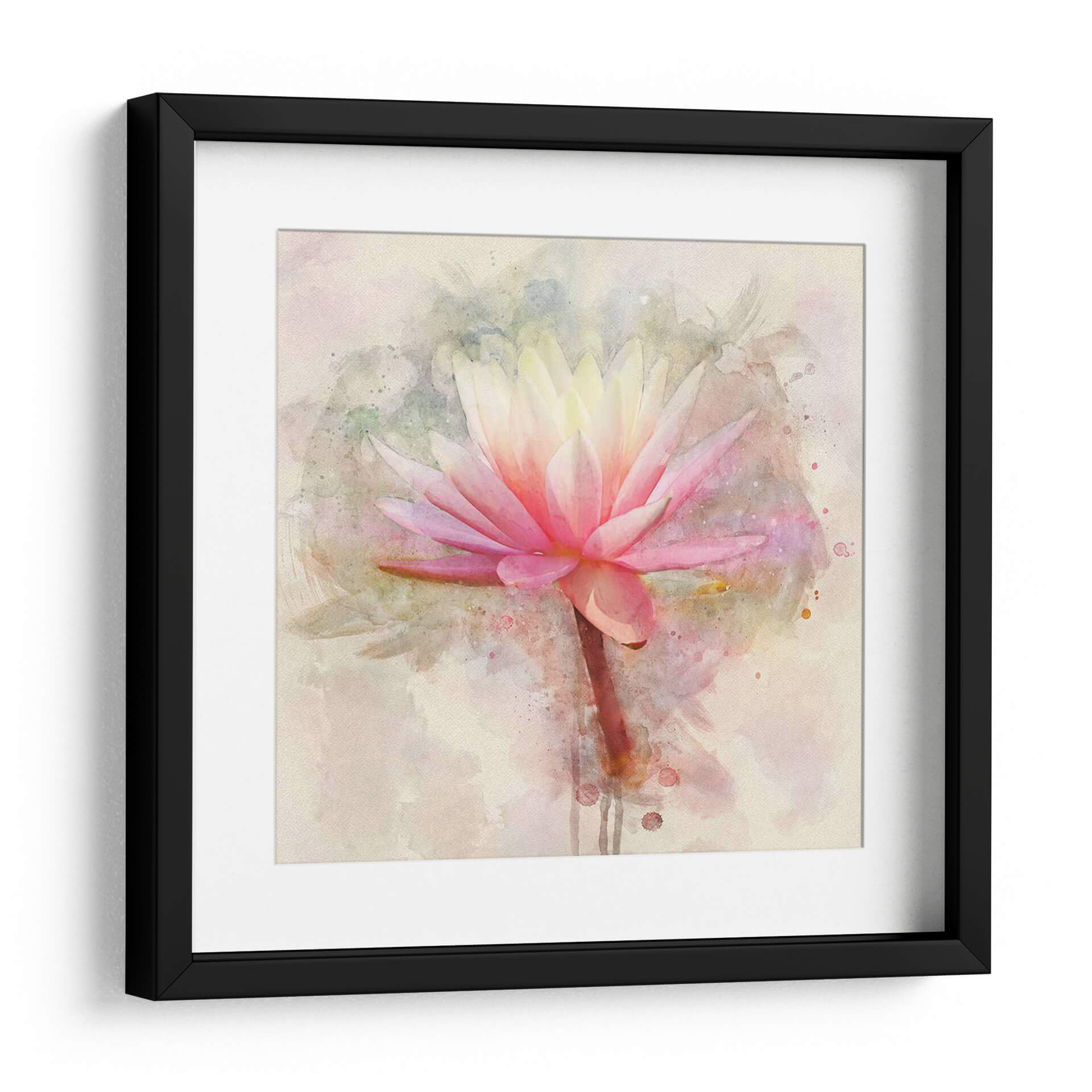 Embellece tu espacio con la delicadeza y serenidad del cuadro "Bonito En Pastel I", una obra maestra de Leda Robertson. Esta pieza evoca la belleza etérea de una flor de loto en plena floración, capturada con una técnica que recuerda a la acuarela, donde las pinceladas suaves y los tonos pastel crean una atmósfera de calma y contemplación. Los pétalos de la flor se despliegan en una gama de rosas vibrantes que se funden con suaves amarillos en el centro, contrastando sutilmente con las salpicaduras de color y las texturas acuosas del fondo, que añaden profundidad y dinamismo sin opacar la delicadeza del tema principal. El tallo, de un marrón rojizo, se alza con elegancia, anclando la composición y añadiendo un toque terrenal a la ligereza de la flor. Este cuadro decorativo es perfecto para añadir un toque de dulzura y tranquilidad a cualquier habitación, desde un dormitorio sereno hasta una sala de estar acogedora o un estudio inspirador. Su estilo contemporáneo y su paleta de colores suaves lo convierten en una adición versátil para diversos estilos de decoración, aportando una sensación de paz y armonía natural. Ideal para quienes buscan arte floral que transmita delicadeza, frescura y un sutil toque de color.