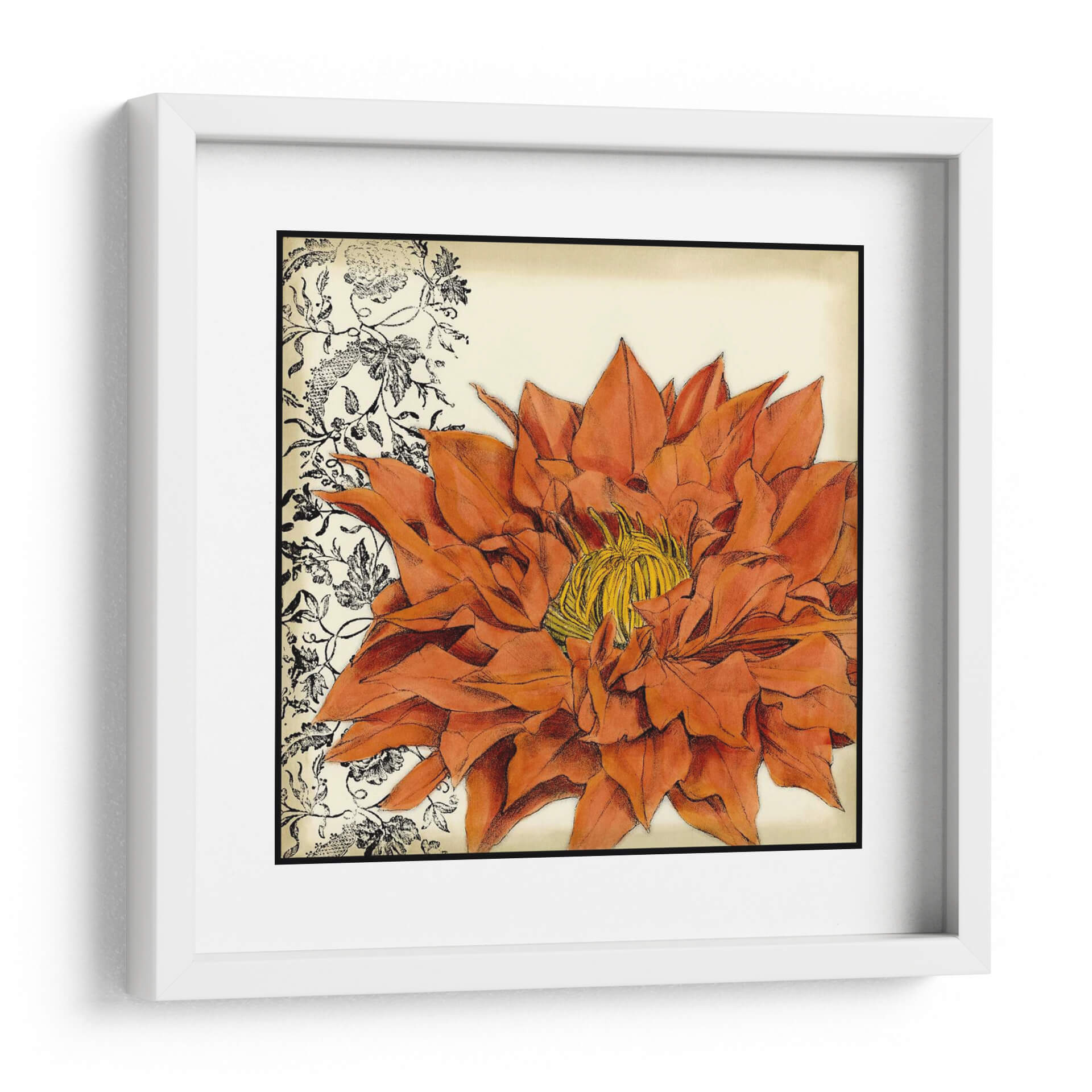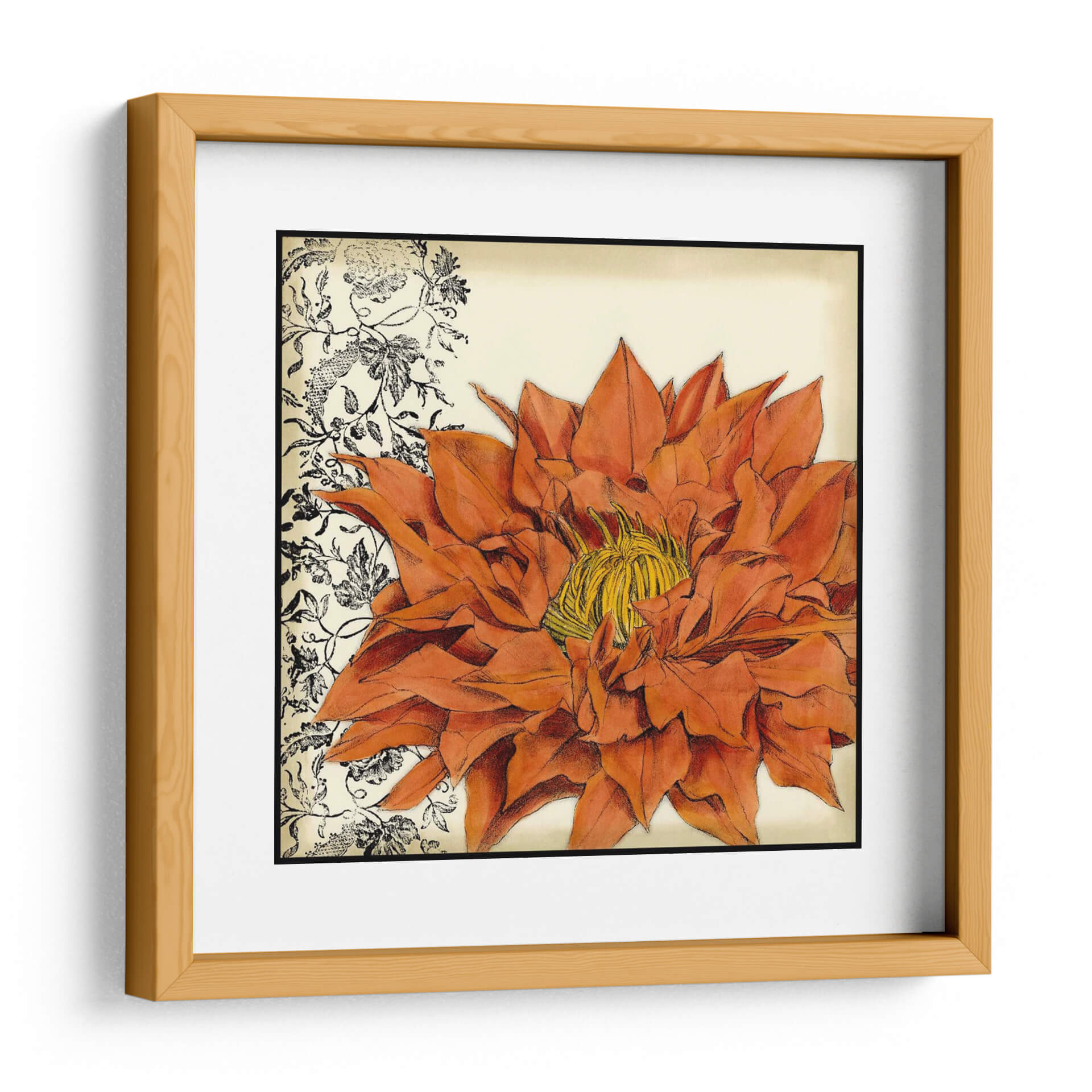 Adéntrate en la exuberante belleza de "Botanica Iii", una cautivadora obra de arte de Jennifer Goldberger que captura la esencia vibrante de la naturaleza. Este cuadro decorativo presenta una flor audaz y detallada en tonos anaranjados intensos, con delicados pétalos que parecen cobrar vida. El vibrante centro amarillo contrasta maravillosamente con los cálidos tonos anaranjados, creando un punto focal impresionante. Un sutil fondo de estilo vintage, adornado con un intrincado patrón floral en blanco y negro, añade una capa de sofisticación y profundidad, evocando un ambiente de elegancia clásica y encanto atemporal. La técnica de ilustración resalta la textura y la forma de la flor, invitando a la contemplación. "Botanica Iii" es ideal para infundir calidez y vitalidad a cualquier espacio, desde una sala de estar moderna hasta un comedor acogedor o un sereno dormitorio. Este cuadro decorativo de gran formato es perfecto para añadir un toque de color y un aire de sofisticación botánica a tu hogar u oficina, transformando tu entorno en una galería personal. Descubre la armonía entre lo contemporáneo y lo clásico con esta pieza única.