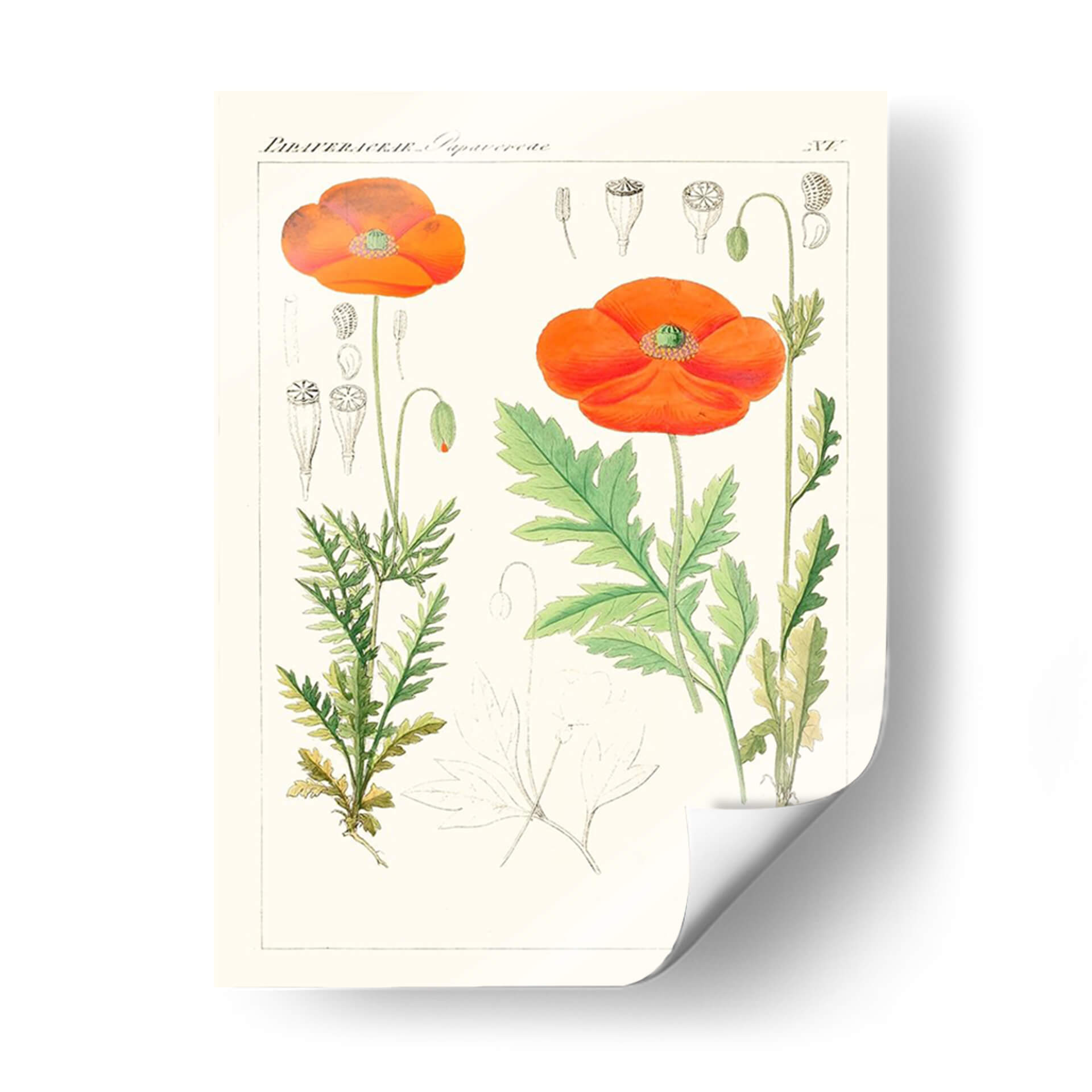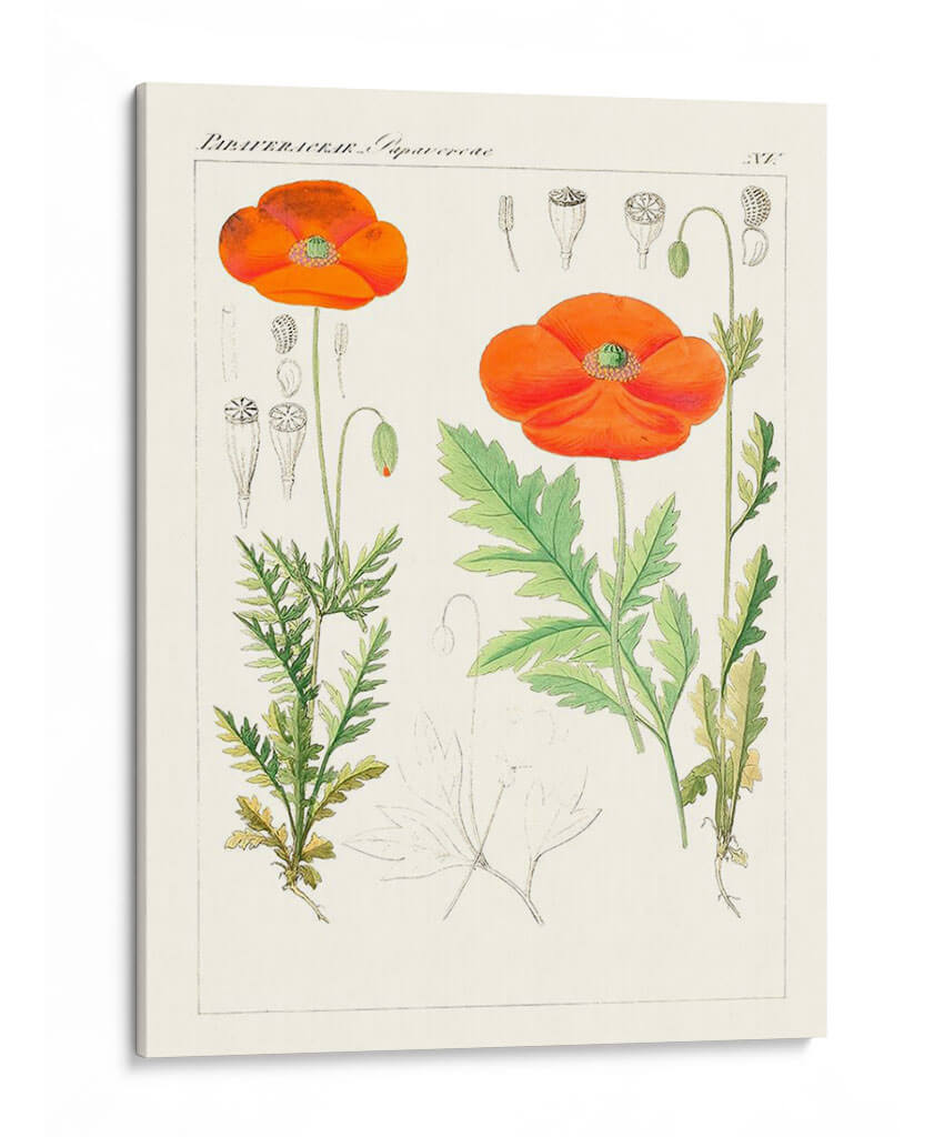 Embellece tu hogar con este exquisito cuadro decorativo 'Botánicos Brillantes Vi'. Esta obra de arte captura la delicadeza y vibrante belleza de las amapolas con un estilo que evoca la ilustración botánica clásica, pero con un toque contemporáneo. Los vibrantes tonos anaranjados de las flores contrastan elegantemente con el verde fresco de sus hojas y tallos, todo sobre un fondo crema que realza la luminosidad de la pieza. La composición detallada, que incluye estudios de las diferentes etapas de crecimiento de la planta, desde el capullo hasta la flor abierta y la cápsula de semillas, añade un aire de erudición y apreciación por la naturaleza. Este cuadro decorativo es perfecto para infundir vida y color en cualquier espacio, ya sea una sala de estar moderna, un comedor acogedor o un estudio tranquilo. Su diseño atemporal y su rica paleta de colores lo convierten en una adición versátil y sofisticada a tu decoración, aportando un toque de la naturaleza y elegancia botánica a tu vida diaria. Ideal para quienes buscan arte que combine precisión científica con un atractivo estético.