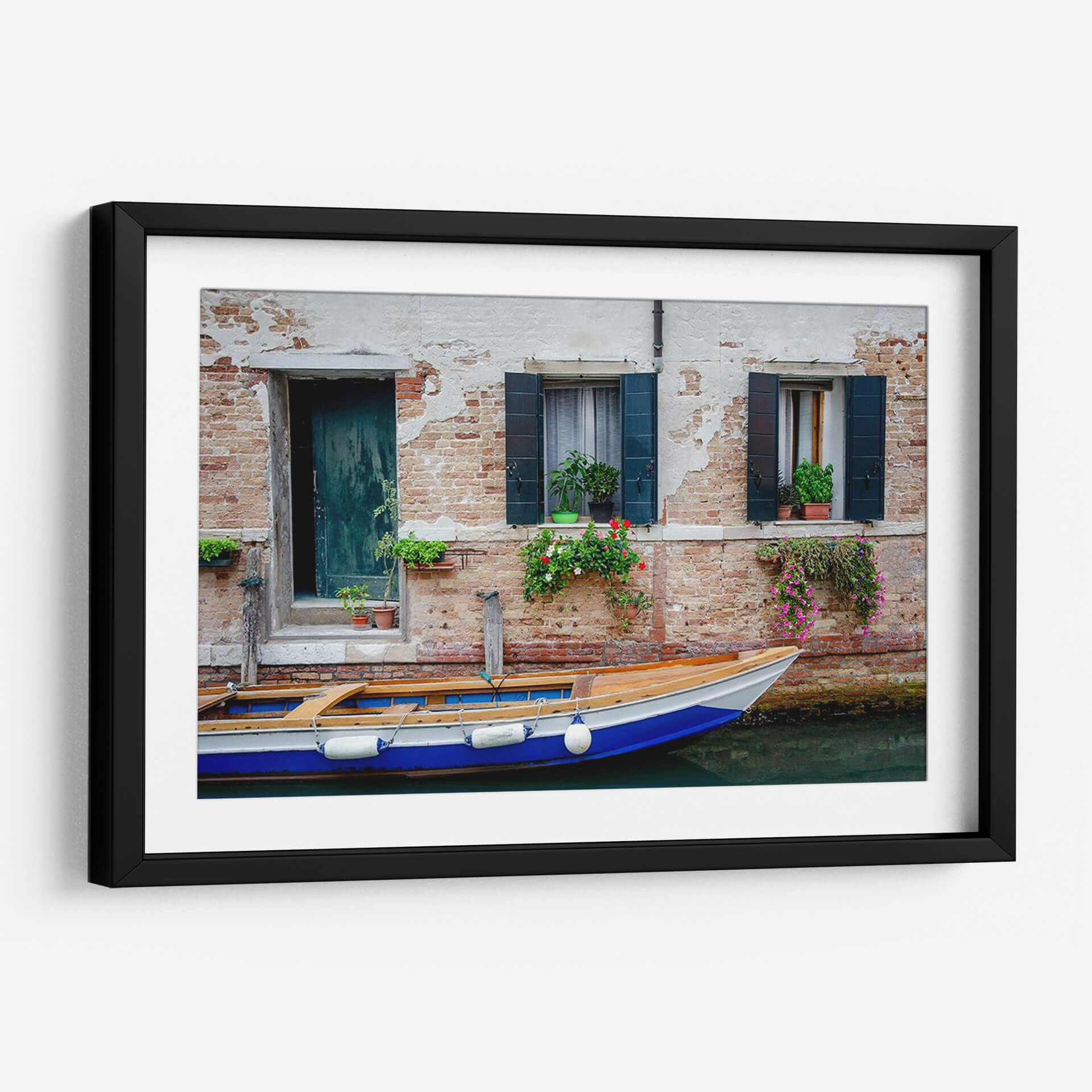 Sumérgete en la serenidad y el encanto de "Bote De Trabajo De Descanso", una obra maestra de Laura DeNardo que captura la esencia de un idílico canal. La pieza presenta una arquitectura veneciana con paredes de ladrillo envejecido, una puerta de madera de un profundo verde azulado y ventanas adornadas con contraventanas oscuras y abundante vegetación. Un bote tradicional, con su distintiva línea azul brillante y detalles en madera pulida, descansa pacíficamente sobre el agua oscura y reflexiva, añadiendo un toque de vida y color. La iluminación suave sugiere un momento tranquilo, invitando a la contemplación y la evasión. Los colores terrosos del ladrillo contrastan armoniosamente con el azul vibrante del bote y los tonos verdes de las plantas, creando una atmósfera acogedora y pintoresca. Este cuadro decorativo es ideal para transformar cualquier espacio en un refugio de paz y belleza, aportando una sensación de viaje y escapismo a tu hogar u oficina. Su realismo detallado y composición equilibrada lo convierten en una adición versátil para diversos estilos de decoración, desde el rústico hasta el contemporáneo, evocando la atmósfera atemporal de los canales italianos.