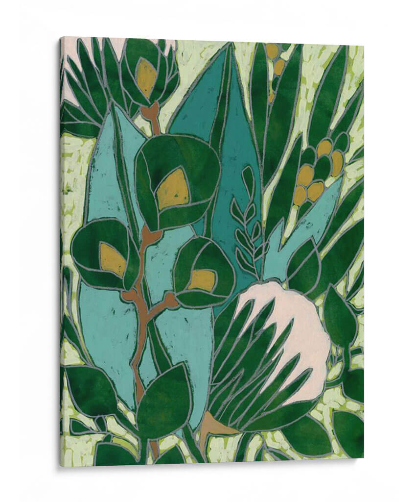Embárcate en un viaje visual con "Botella De Vidrio Jardín II", una obra de arte contemporáneo que captura la exuberancia de la naturaleza en un estilo distintivo. Este cuadro decorativo presenta una composición vibrante de follaje y flores, dominada por una paleta de verdes profundos, turquesas serenos y toques de amarillo dorado y rosa pálido. Las formas audaces y las líneas definidas sugieren una interpretación estilizada de un jardín botánico, evocando una sensación de calma y vitalidad a la vez. La técnica, que combina elementos de la pintura abstracta y el arte gráfico, crea una textura visual intrigante y moderna. Ideal para quienes buscan infundir sus espacios con un soplo de frescura y sofisticación, este cuadro es perfecto para salones, oficinas o dormitorios que deseen un punto focal natural pero contemporáneo. Su atmósfera serena y su diseño atemporal lo convierten en una adición valiosa a cualquier colección de arte de pared, aportando vida y color a tu decoración.