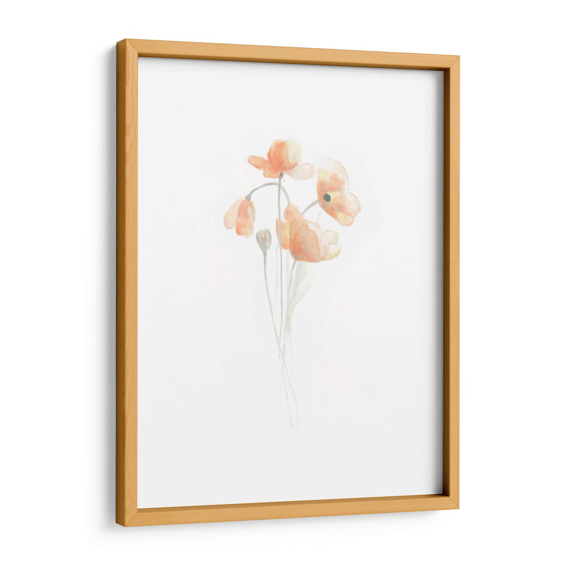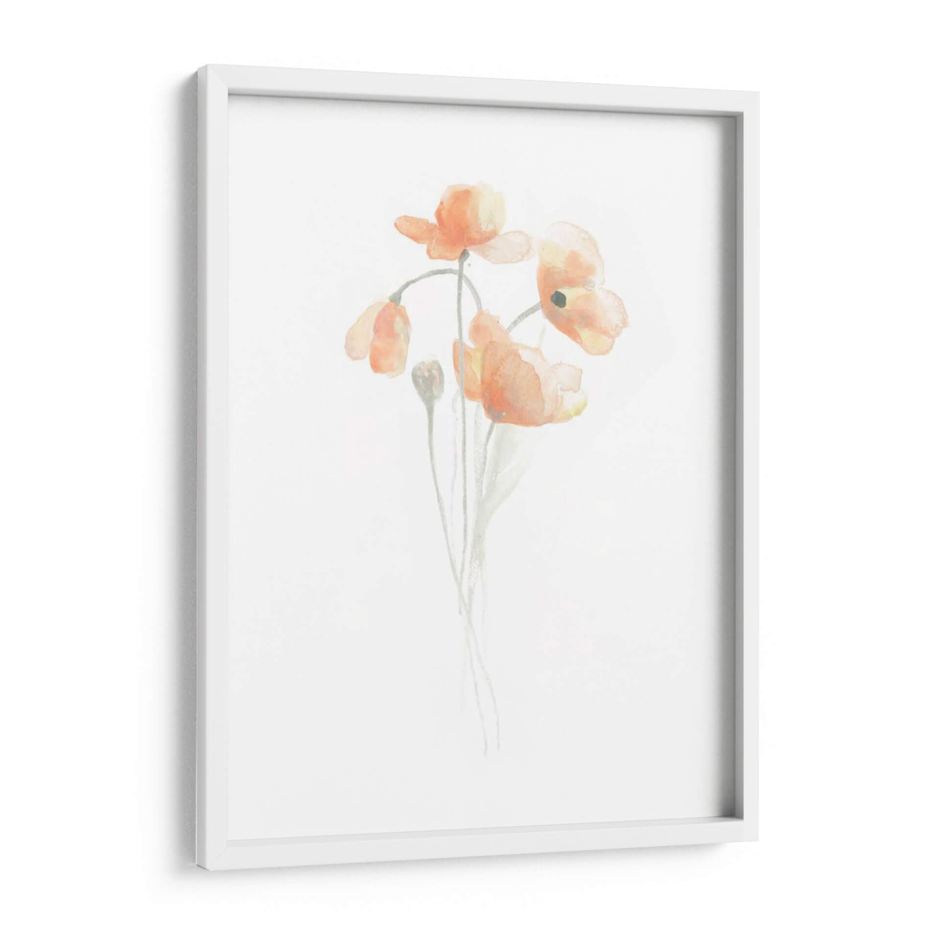 Embellece tu hogar con el delicado encanto de "Bouquet Delicado III", una obra de arte que captura la efímera belleza de las amapolas en acuarela. La artista June Erica Vess nos presenta un delicado ramo de flores en tonos anaranjados y rosados, bañadas por una luz suave que resalta su translucidez y forma etérea. La técnica de acuarela, con sus trazos sueltos y pinceladas sutiles, crea una atmósfera de calma y serenidad, invitando a la contemplación. El fondo blanco o de un blanco roto proporciona un contraste limpio que permite que las flores sean las protagonistas indiscutibles, aportando frescura y vitalidad a cualquier espacio. Este cuadro decorativo es ideal para añadir un toque de color suave y naturalidad a tu sala de estar, dormitorio o incluso a un espacio de oficina, evocando la delicadeza de la primavera y la alegría de un jardín en plena floración. Su estilo minimalista y elegante lo convierte en una pieza versátil, perfecta para complementar decoraciones contemporáneas, bohemias o clásicas. Transforma tus paredes en un lienzo de emociones y sensaciones con esta pieza única que irradia paz y belleza sutil.