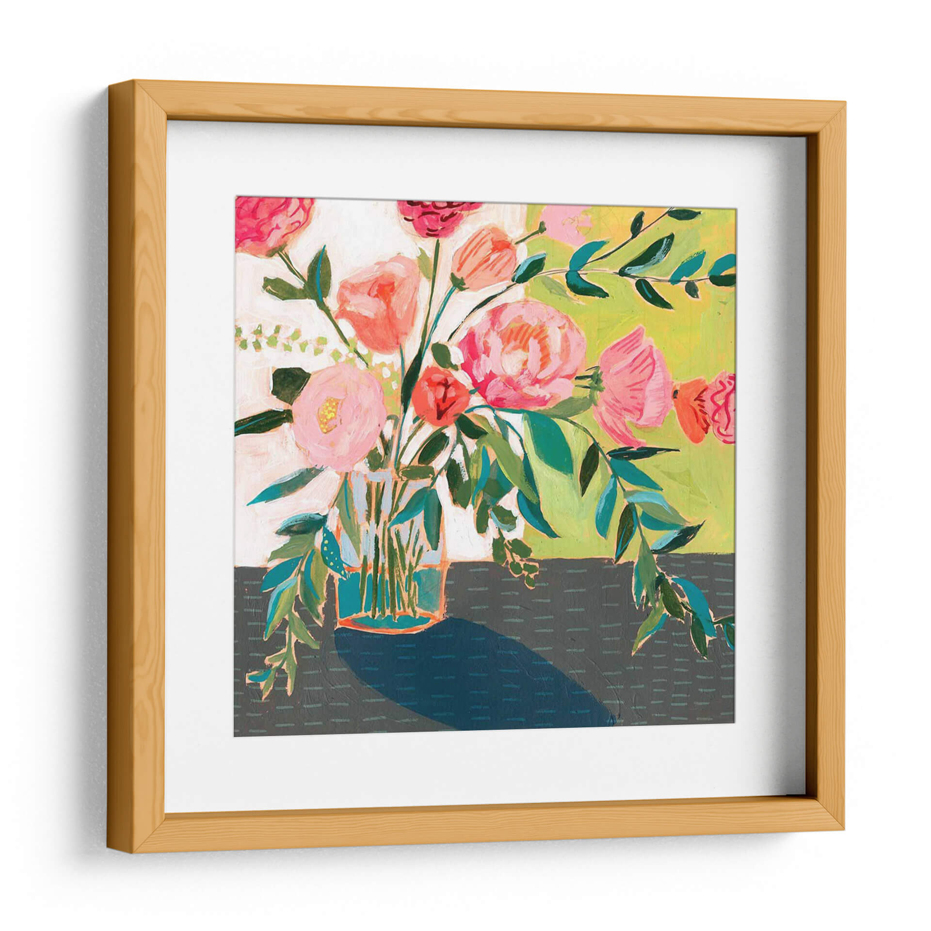 Embellece tu espacio con el 'Bouquet Peculiar I', una obra de arte vibrante y llena de vida de la artista Victoria Borges. Este cuadro decorativo captura la belleza efímera de un arreglo floral con un toque contemporáneo y expresivo. Los vivos tonos rosas, corales y naranjas de las flores contrastan maravillosamente con los profundos verdes de las hojas y el fondo luminoso en tonos lima y blanco roto. La técnica audaz y las pinceladas visibles aportan textura y profundidad, creando una pieza que atrae la mirada y evoca una sensación de alegría y vitalidad. Ideal para añadir un toque de color y sofisticación a tu sala de estar, comedor o incluso a un espacio de oficina que necesite un impulso de energía. Este cuadro es perfecto para aquellos que aprecian el arte moderno con un aire de frescura y optimismo. Su composición equilibrada y la riqueza cromática lo convierten en un punto focal cautivador, capaz de transformar cualquier ambiente en una galería personal. Añade esta pieza única a tu colección y deja que su encanto floral ilumine tus días.