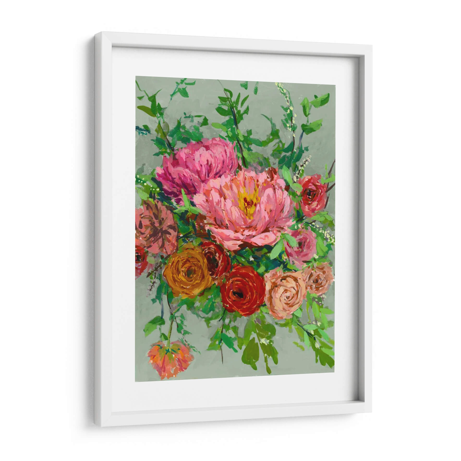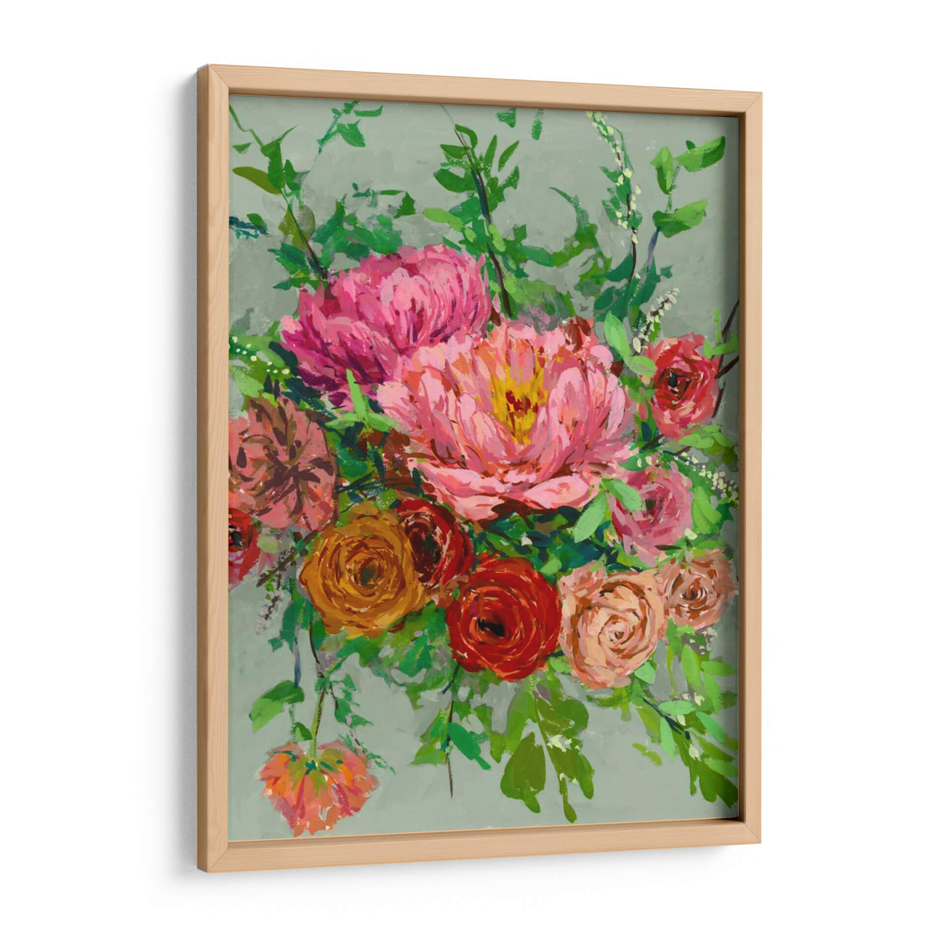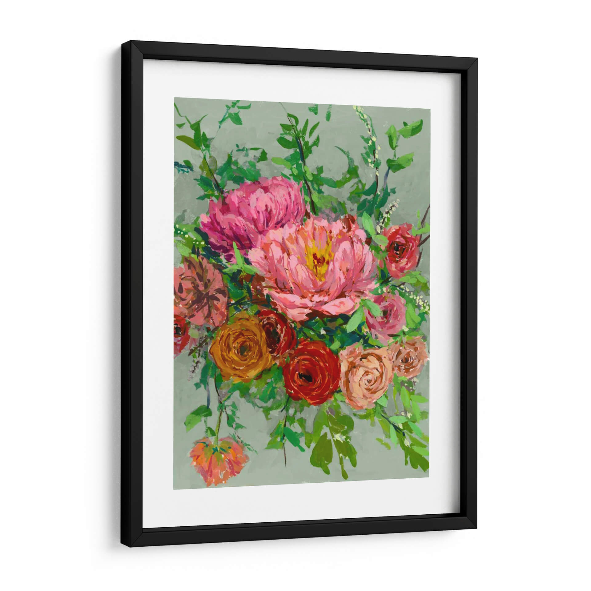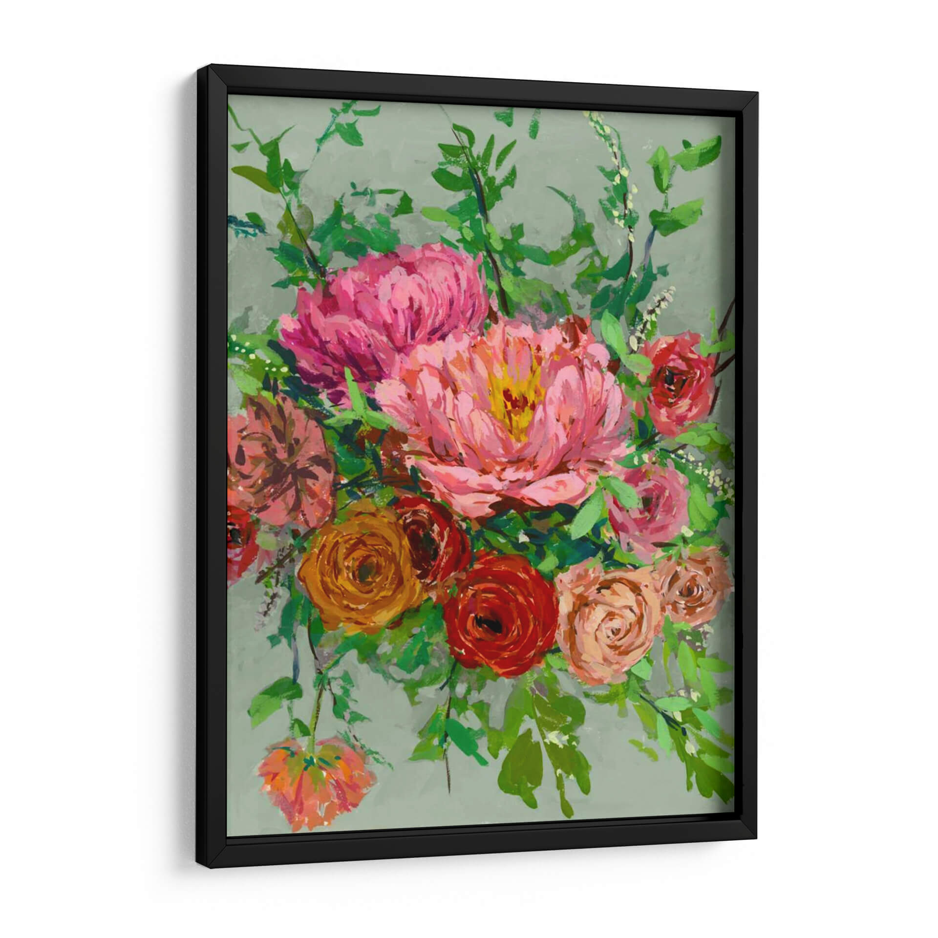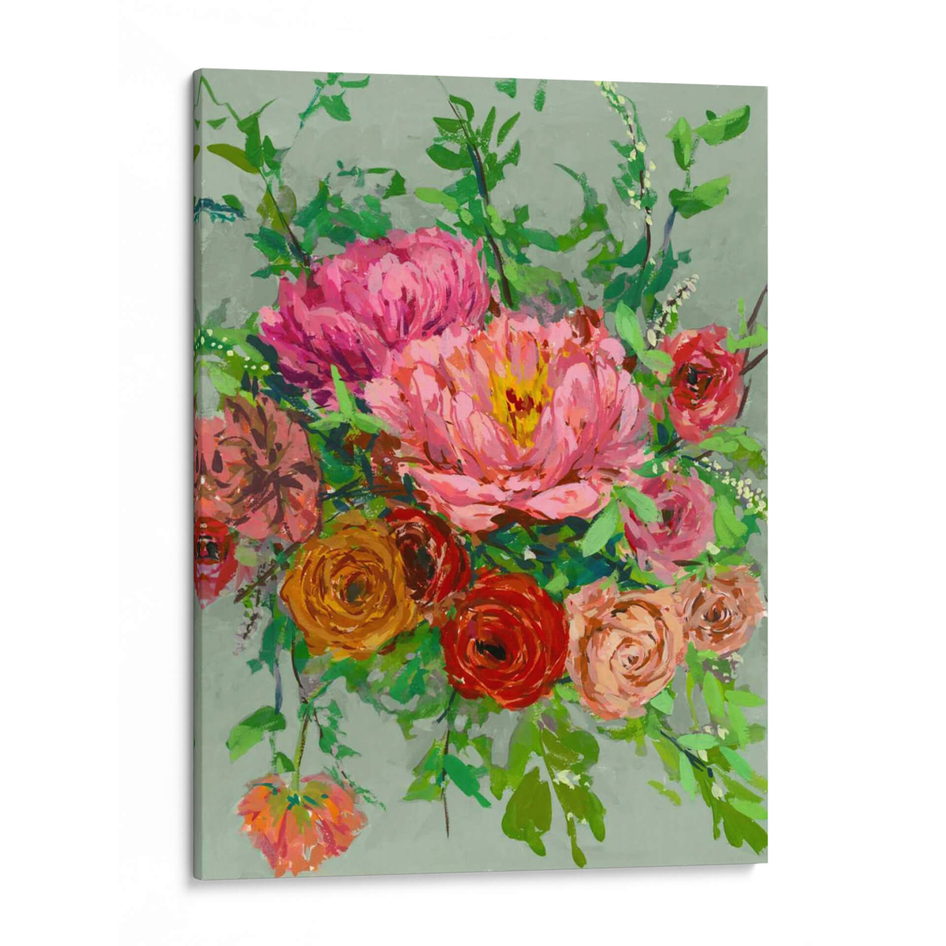 Sumérgete en la belleza atemporal de "Bouquet Vintage I", una obra de arte floral que captura la esencia de la naturaleza con una paleta de colores vibrante y texturas evocadoras. Melissa Wang nos presenta un arreglo de flores exuberantes, dominado por un gran peonía rosa en el centro, rodeado de rosas en tonos coral, naranja y rojo intenso. Las pinceladas sueltas y expresivas añaden un toque contemporáneo a la estética vintage, creando una sensación de movimiento y vida. El fondo grisáceo suave resalta la riqueza de los pétalos y el verdor de las hojas, logrando un equilibrio armonioso. Este cuadro decorativo es perfecto para añadir un toque de color y sofisticación a cualquier espacio, desde una sala de estar moderna hasta un dormitorio acogedor o una oficina elegante. Su estilo neo-impresionista evoca una sensación de alegría y romanticismo, invitando a la contemplación y al aprecio por la belleza efímera de las flores. "Bouquet Vintage I" no es solo una pieza decorativa, es una ventana a un jardín de ensueño, una declaración de estilo que transformará tu hogar en un santuario de arte y color, ideal para quienes buscan crear ambientes llenos de encanto y personalidad.