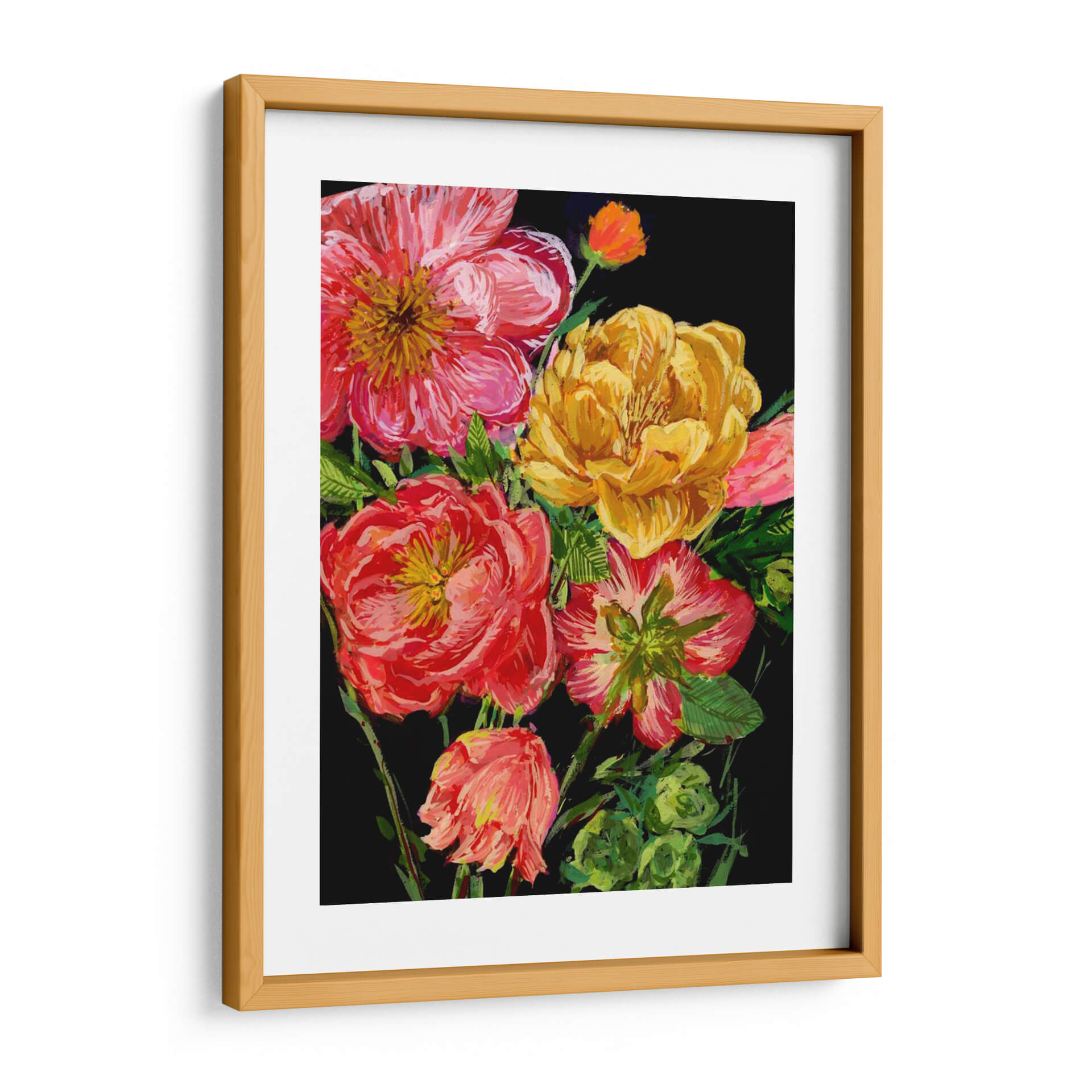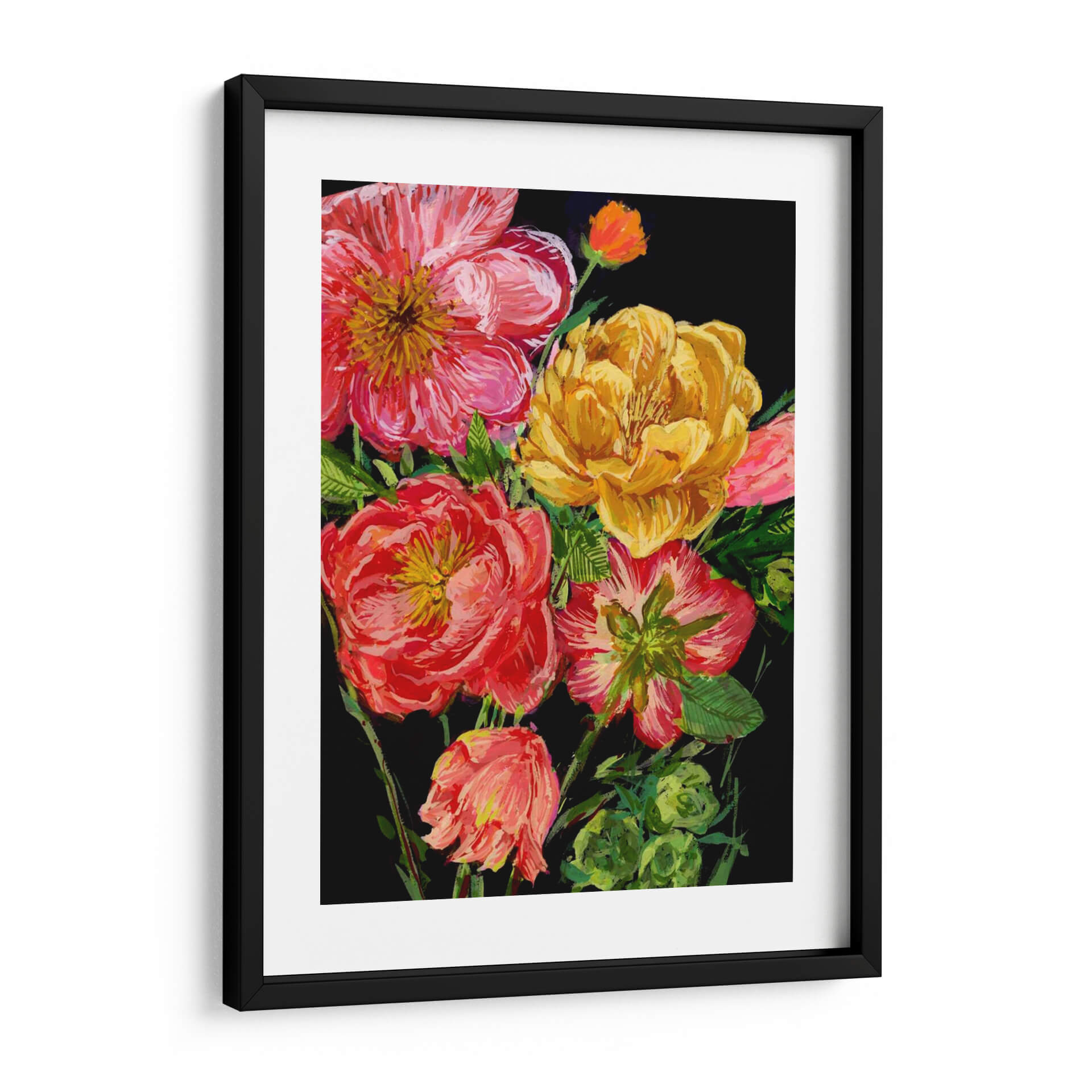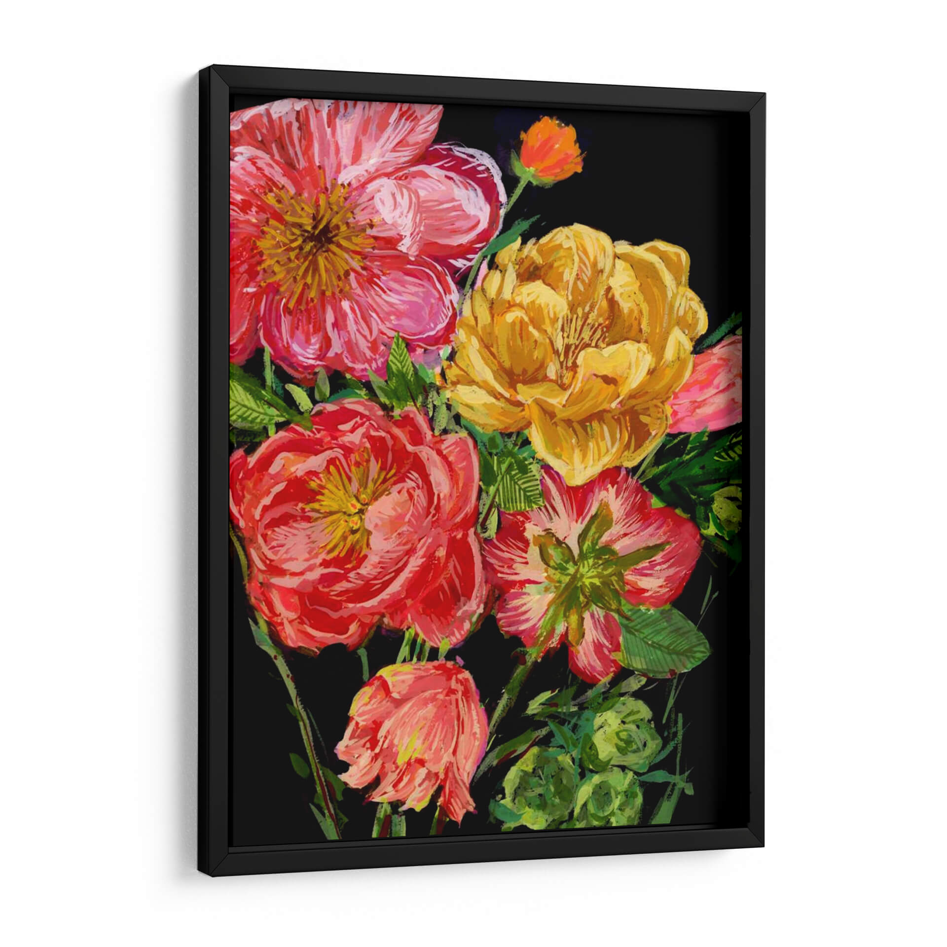 Este cautivador cuadro decorativo, "Bouquet Vintage Iv" de Melissa Wang, es una explosión de vida y color que transforma cualquier espacio en un jardín interior vibrante. La obra presenta un exuberante arreglo floral donde predominan los tonos rojos, rosas y amarillos intensos, contrastando poderosamente con un fondo negro profundo que realza la vivacidad de cada pétalo. Las pinceladas audaces y expresivas de Wang capturan la textura y la forma de los capullos y flores abiertas, evocando una sensación de romanticismo atemporal y la belleza efímera de la naturaleza. Cada flor parece palpitar con energía, invitando a la contemplación y añadiendo un toque de sofisticación clásica con un giro contemporáneo. Ideal para aquellos que buscan infundir calidez y alegría en su hogar u oficina, este cuadro decorativo es una pieza central que atraerá miradas y generará conversaciones. Combina a la perfección con decoraciones modernas y tradicionales, aportando un elemento de arte floral que nunca pasa de moda. Añade esta obra maestra a tu colección y disfruta de su belleza perdurable.