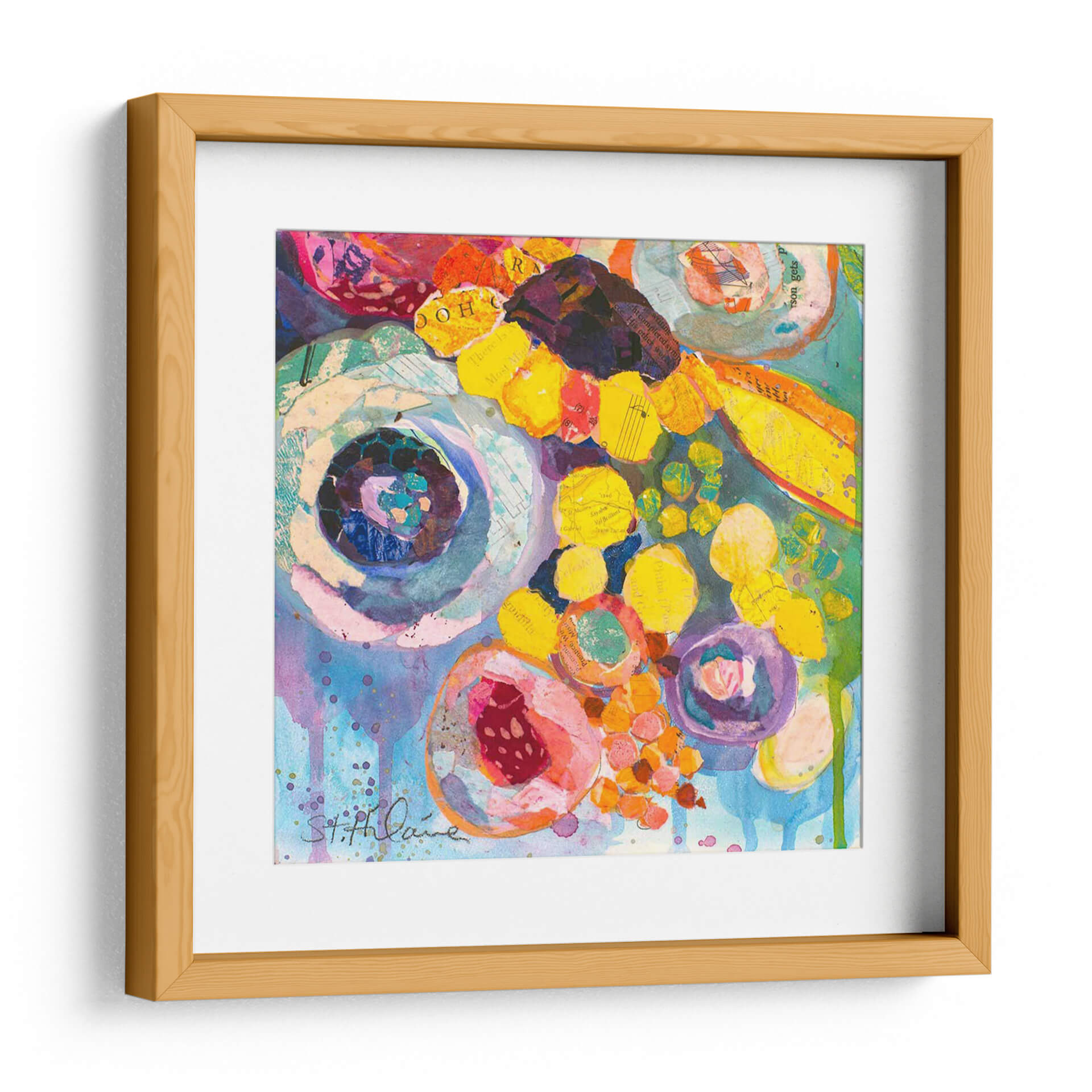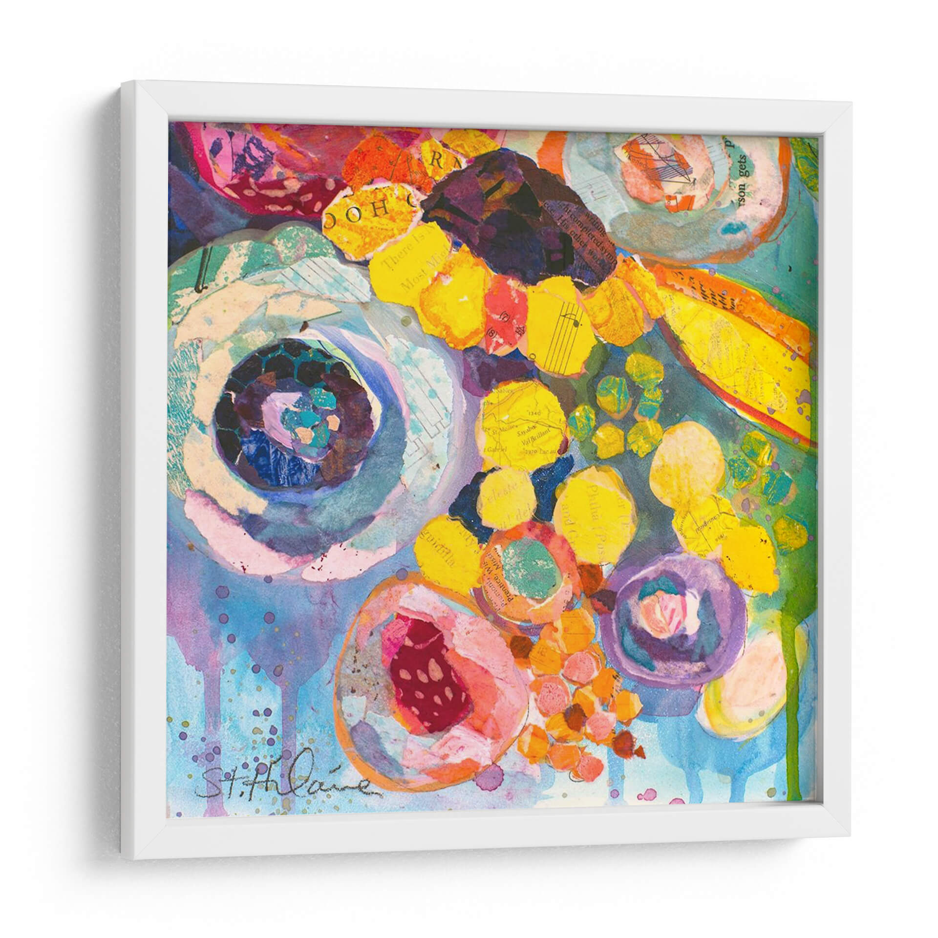 Sumérgete en la vibrante explosión de vida y color de "Brud Blooms V" de Elizabeth St. Hilaire, una obra de arte abstracto que celebra la alegría y la energía de la naturaleza. Este cuadro decorativo es una composición fascinante de formas orgánicas y texturas ricas, donde los pétalos fluidos y los vibrantes centros florales se entrelazan en un tapiz visual cautivador. La paleta de colores, dominada por azules profundos y luminosos, se ve realzada por salpicaduras de amarillo solar, naranjas ardientes y toques de rosa y púrpura, creando una sensación de dinamismo y vitalidad. La técnica mixta, que incorpora elementos de collage y pintura, añade una profundidad y un interés táctil únicos a la pieza. "Brud Blooms V" es más que una simple decoración; es una invitación a sentir la exuberancia del mundo natural, ideal para infundir calidez y optimismo en cualquier espacio, desde una sala de estar moderna hasta un estudio creativo o un dormitorio acogedor. Su estilo contemporáneo y su composición audaz lo convierten en un punto focal que atrae la mirada y estimula la conversación, añadiendo un toque de sofisticación artística y una explosión de felicidad a tu hogar u oficina. Descubre la belleza intrínseca de las flores reimaginadas a través de una lente abstracta y enérgica.