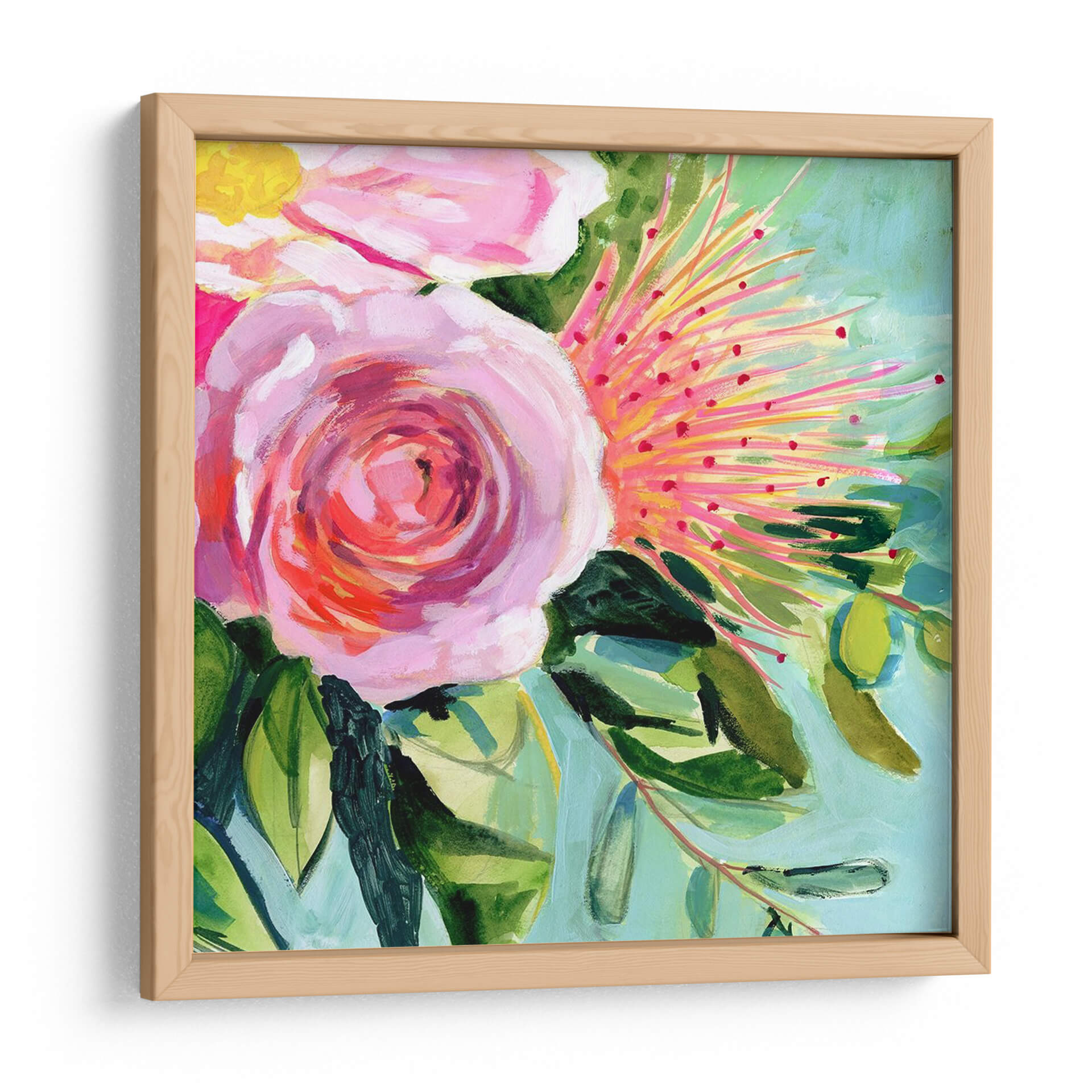 Embellece tu espacio con la vibrante obra "Brushy Floral I" de Victoria Borges, un cuadro decorativo que captura la esencia de la primavera con una explosión de color y textura. Esta pieza, caracterizada por su estilo expresionista y pinceladas audaces, presenta un arreglo floral dinámico donde rosas pálidos y vibrantes se entrelazan con toques de amarillo sol y un exótico elemento floral de tonos naranjas y fucsias. El fondo, un aguamarina suave y texturizado, realza la vivacidad de las flores, creando una atmósfera alegre y energizante. Ideal para añadir un toque de frescura y vitalidad a cualquier habitación, desde una sala de estar moderna hasta un dormitorio acogedor o una oficina inspiradora. La composición, centrada en el primer plano de las flores, invita a la contemplación y aporta profundidad visual. "Brushy Floral I" no es solo una decoración, es una celebración de la naturaleza y la alegría de vivir, una pieza de arte contemporáneo que transformará tu pared en un jardín de inspiración. Transmite una sensación de optimismo y sofisticación, perfecta para aquellos que buscan arte que hable de la belleza y la vitalidad.