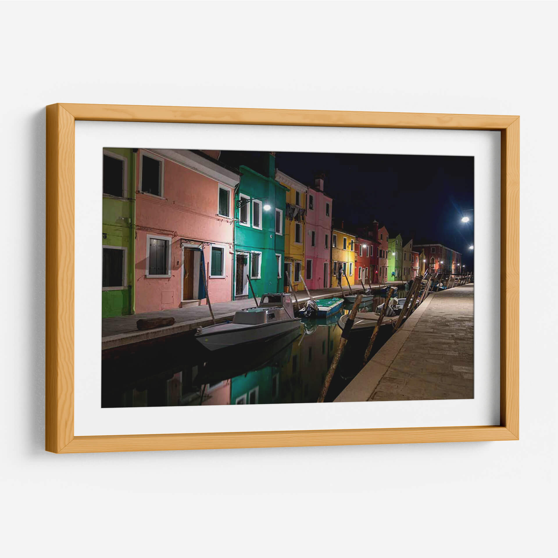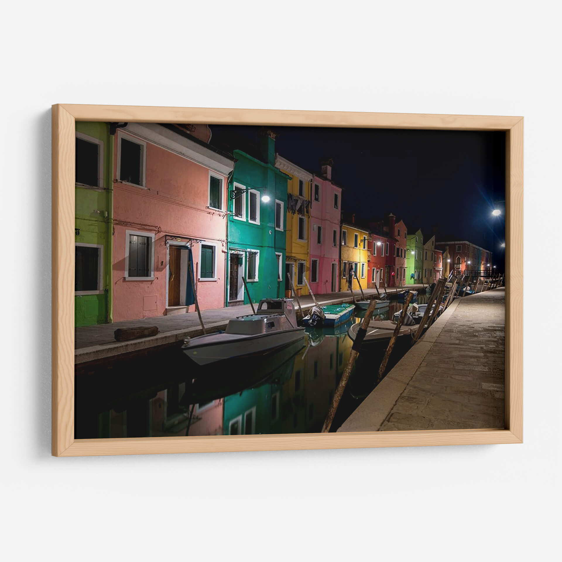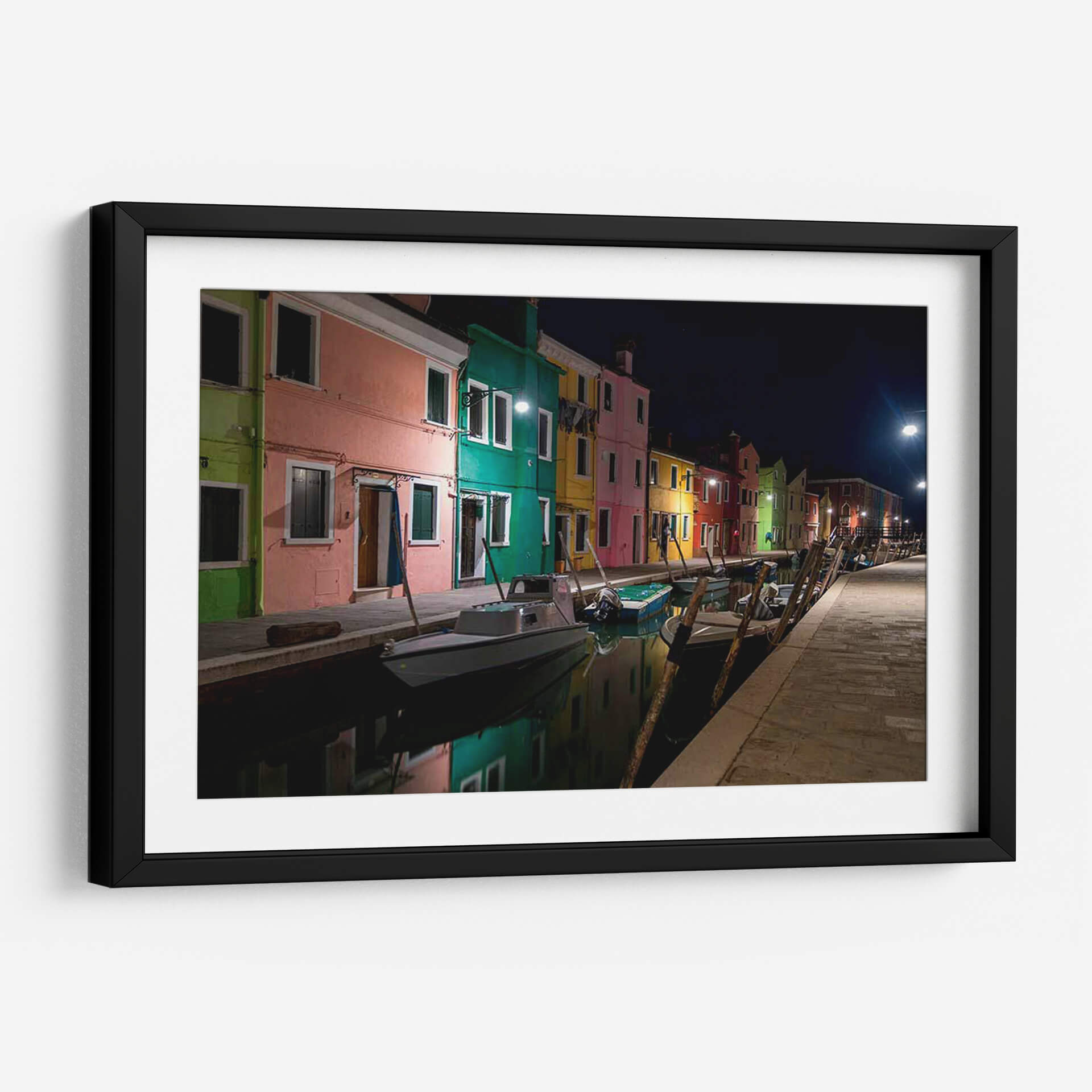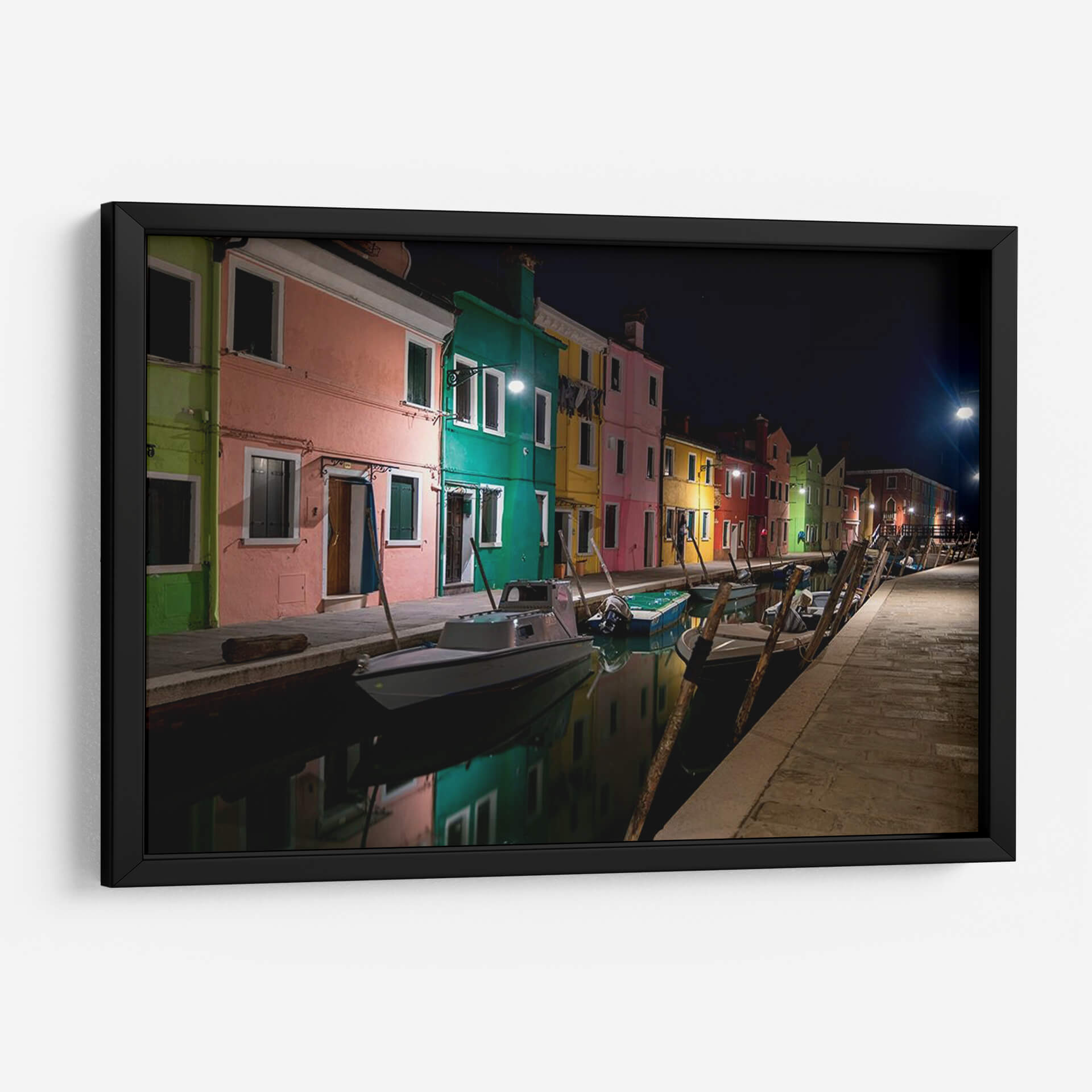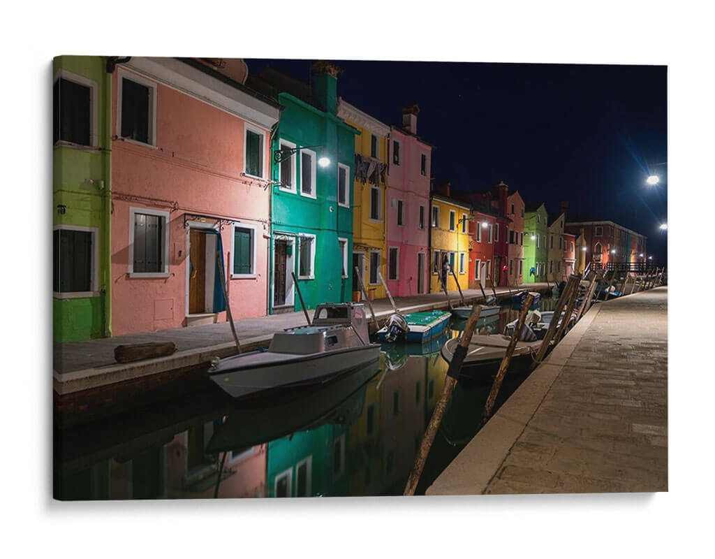 Captura la magia de Venecia con 'Burano Street Lights I', una obra de arte que te transporta a las pintorescas calles de esta isla italiana al anochecer. Los vibrantes colores de las fachadas, bañados por la luz cálida de las farolas, crean una atmósfera de ensueño y serenidad. El reflejo de las casas y las luces en el canal añade una dimensión de profundidad y realismo, invitándote a sumergirte en la escena. Las siluetas de los barcos amarrados a lo largo del canal aportan un toque de realismo y evocan la vida cotidiana de este pintoresco lugar. Esta pieza de Danny Head es ideal para quienes buscan añadir un toque de color y sofisticación a su hogar u oficina. Su estilo fotográfico realista, combinado con la elección de colores intensos y la iluminación nocturna, la convierte en un punto focal cautivador para cualquier espacio. Transforma tu pared en una ventana a Italia, infundiendo tus ambientes con la belleza atemporal de Burano y la energía sutil de la noche veneciana. Una invitación a la contemplación y al escapismo a través del arte.