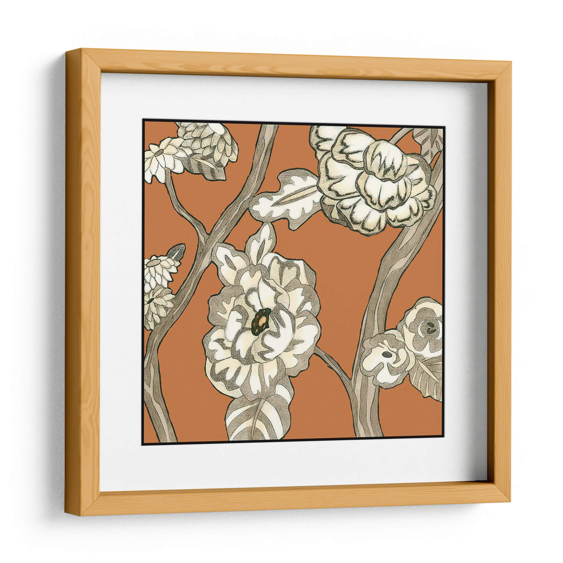 Sumérgete en la elegancia botánica de "Butterscotch Chintz III", una obra de arte que transforma el espacio con su diseño floral detallado y una paleta de colores cálidos y envolventes. Este cuadro decorativo presenta un patrón intrincado de flores estilizadas y ramas en tonos tierra y crema, contrastando sutilmente sobre un fondo vibrante de color caramelo quemado. La composición evoca una sensación de sofisticación atemporal, con influencias que recuerdan al arte clásico de tapicería y al diseño textil. Cada pétalo y hoja está dibujado con trazos delicados pero definidos, creando una profundidad visual que atrae la mirada y fomenta la contemplación. Es la pieza perfecta para añadir un toque de naturaleza estilizada y calidez a cualquier habitación, ya sea en una sala de estar moderna, un comedor acogedor o un estudio que busque inspiración. "Butterscotch Chintz III" no es solo una decoración, sino una ventana a un jardín encantado, diseñado para infundir serenidad y un sentido de belleza refinada en tu hogar u oficina, convirtiéndose en un punto focal que inspira y deleita a partes iguales. Transforma tus paredes en un lienzo de expresión artística con esta cautivadora obra.