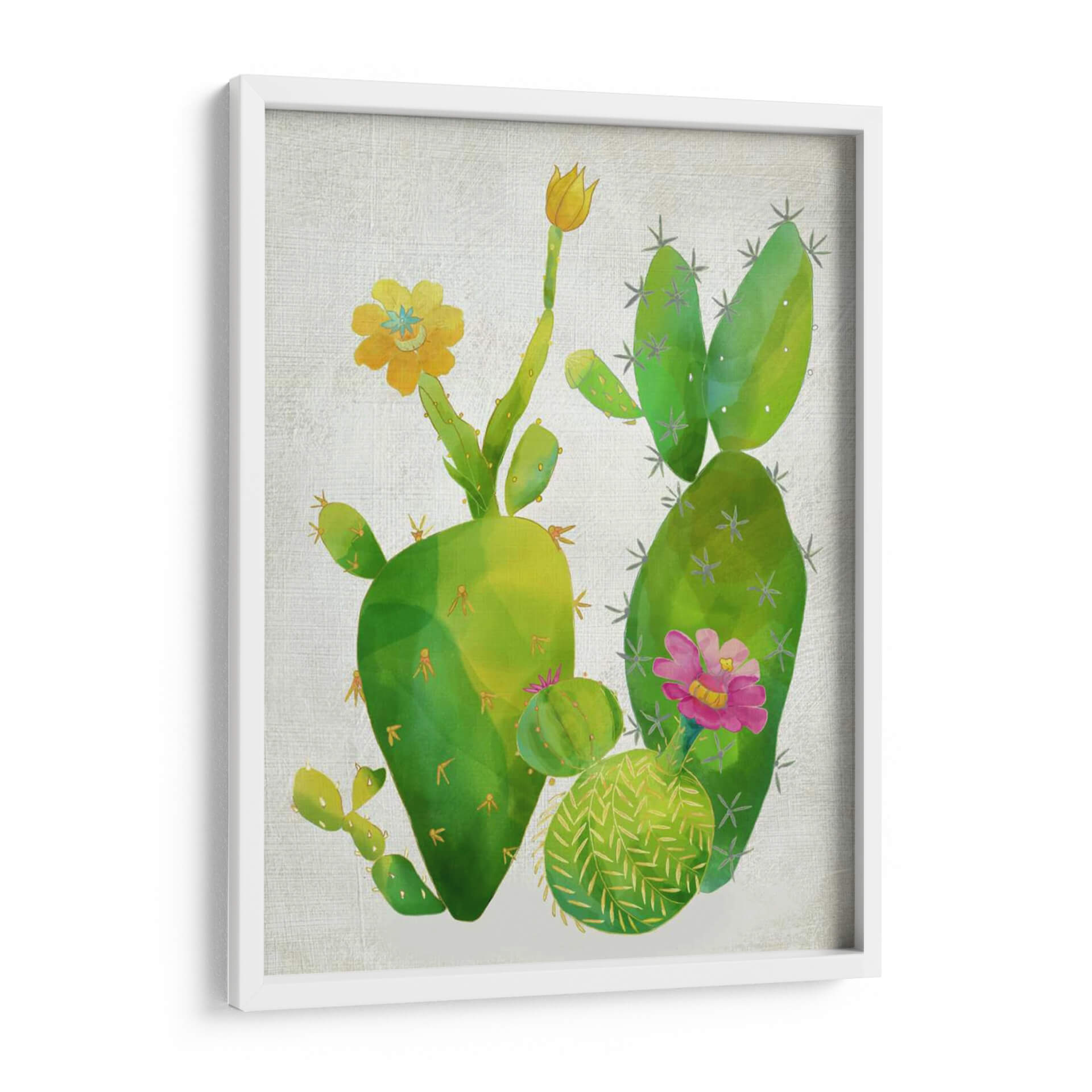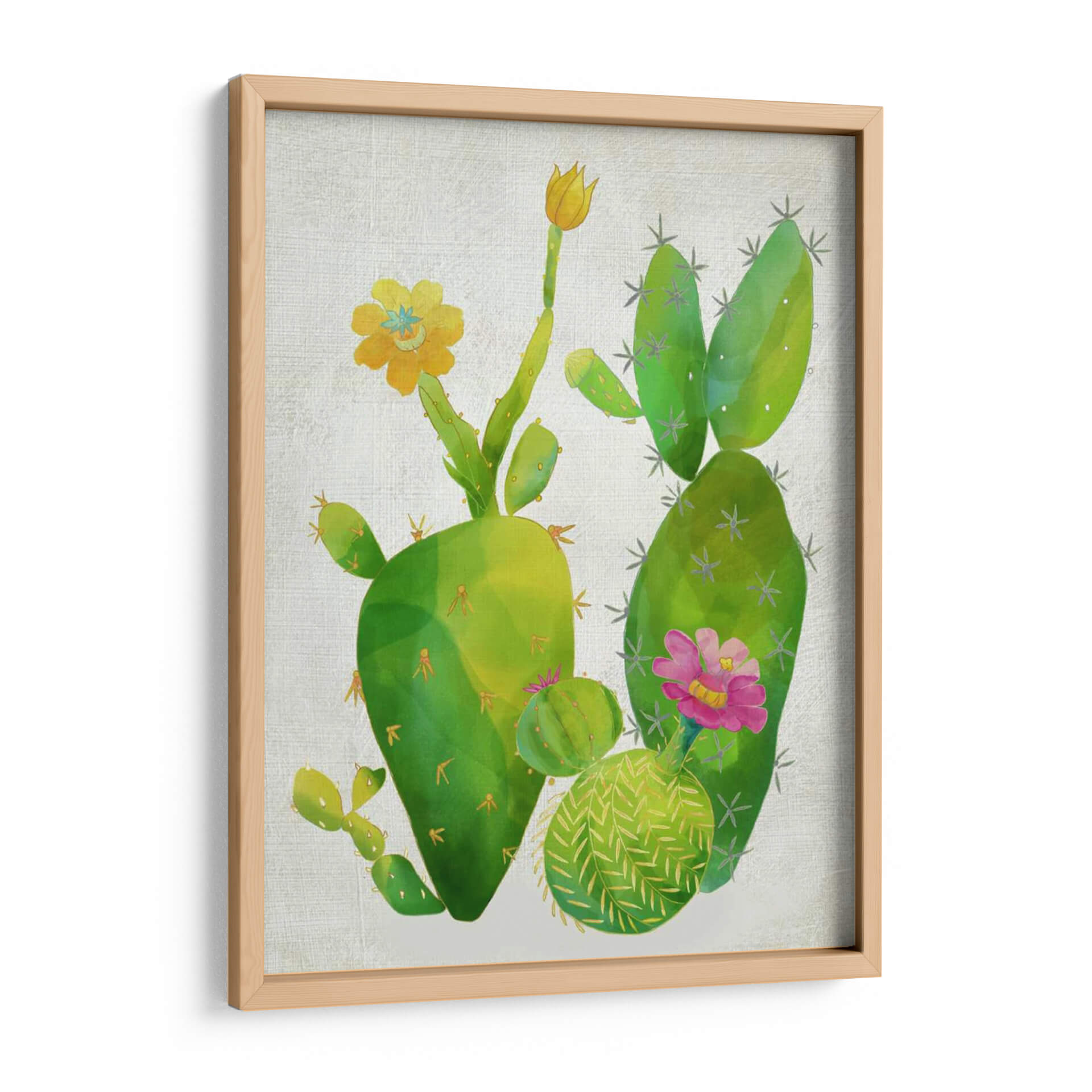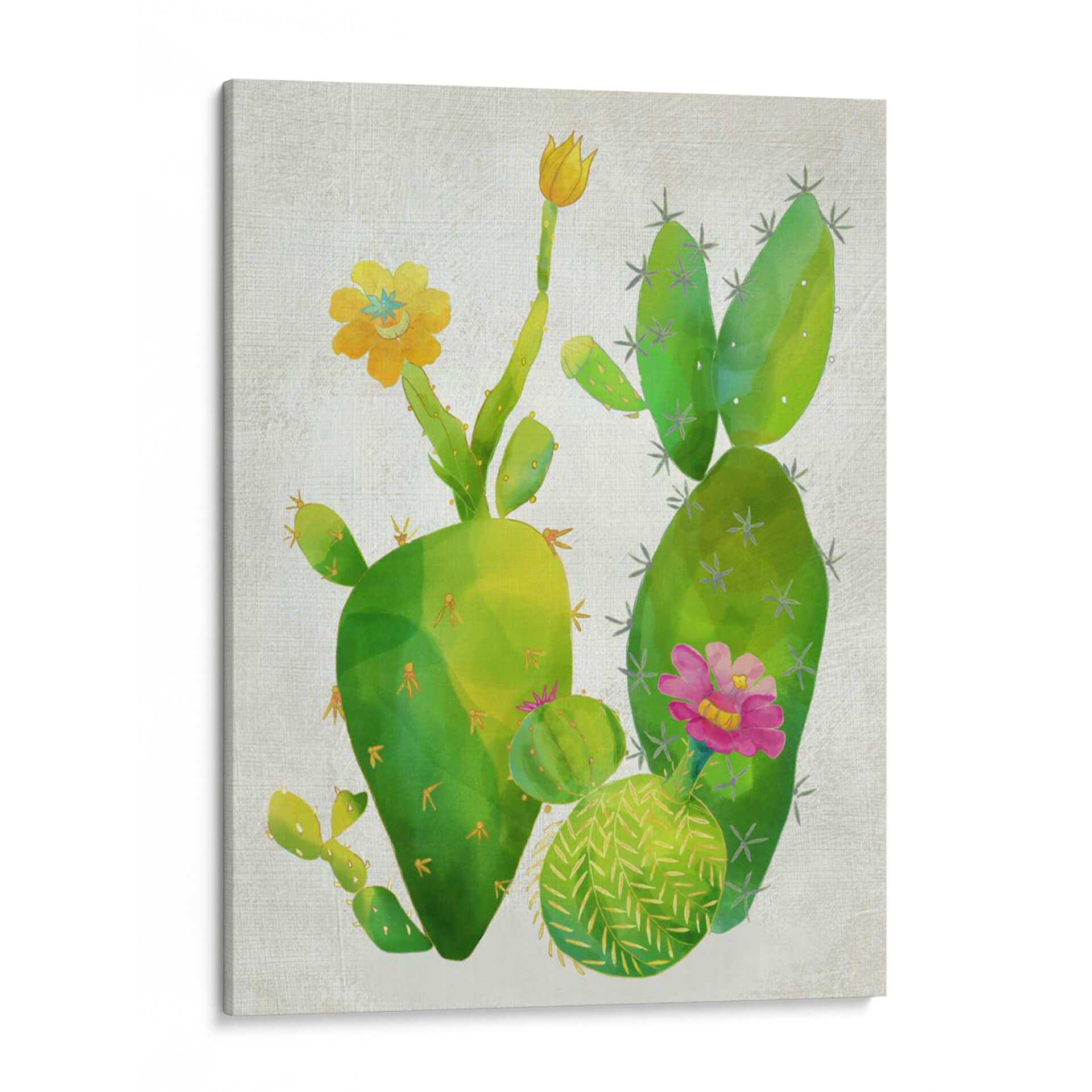 Sumérgete en la frescura y la vitalidad del desierto con "Cactti Colección II", una obra de arte decorativo que captura la esencia botánica de los cactus en plena floración. La pieza presenta una composición vibrante y detallada de diversas variedades de cactus, desde sus gruesas y suculentas paletas hasta las delicadas flores que adornan sus espinas. La paleta de colores se centra en ricos tonos verdes, salpicados con toques de amarillo brillante y un cautivador rosa fucsia, creando un contraste visual que atrae la mirada. El fondo texturizado, de un suave tono arena, proporciona una base neutra que permite que las formas y colores de los cactus resalten, evocando una atmósfera de calma y resiliencia natural. El estilo artístico, con un toque de acuarela y trazos delicados, otorga a la obra una cualidad etérea y moderna. "Cactti Colección II" es una elección perfecta para añadir un toque de naturaleza y color a cualquier espacio, ideal para salones contemporáneos, estudios o incluso para infundir serenidad en un dormitorio. Este cuadro decorativo es una invitación a celebrar la belleza robusta y sorprendente de la flora del desierto, transformando tu hogar en un oasis de estilo y tranquilidad.