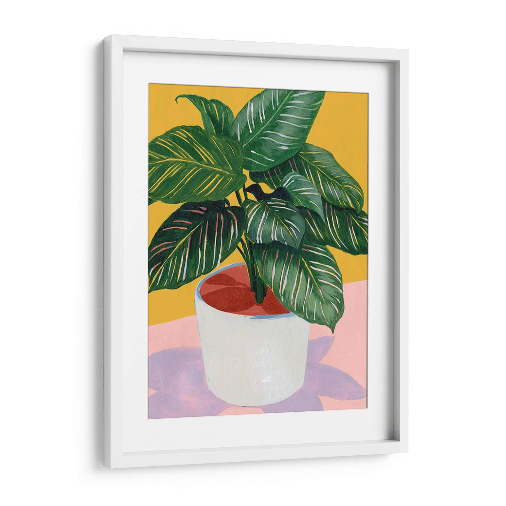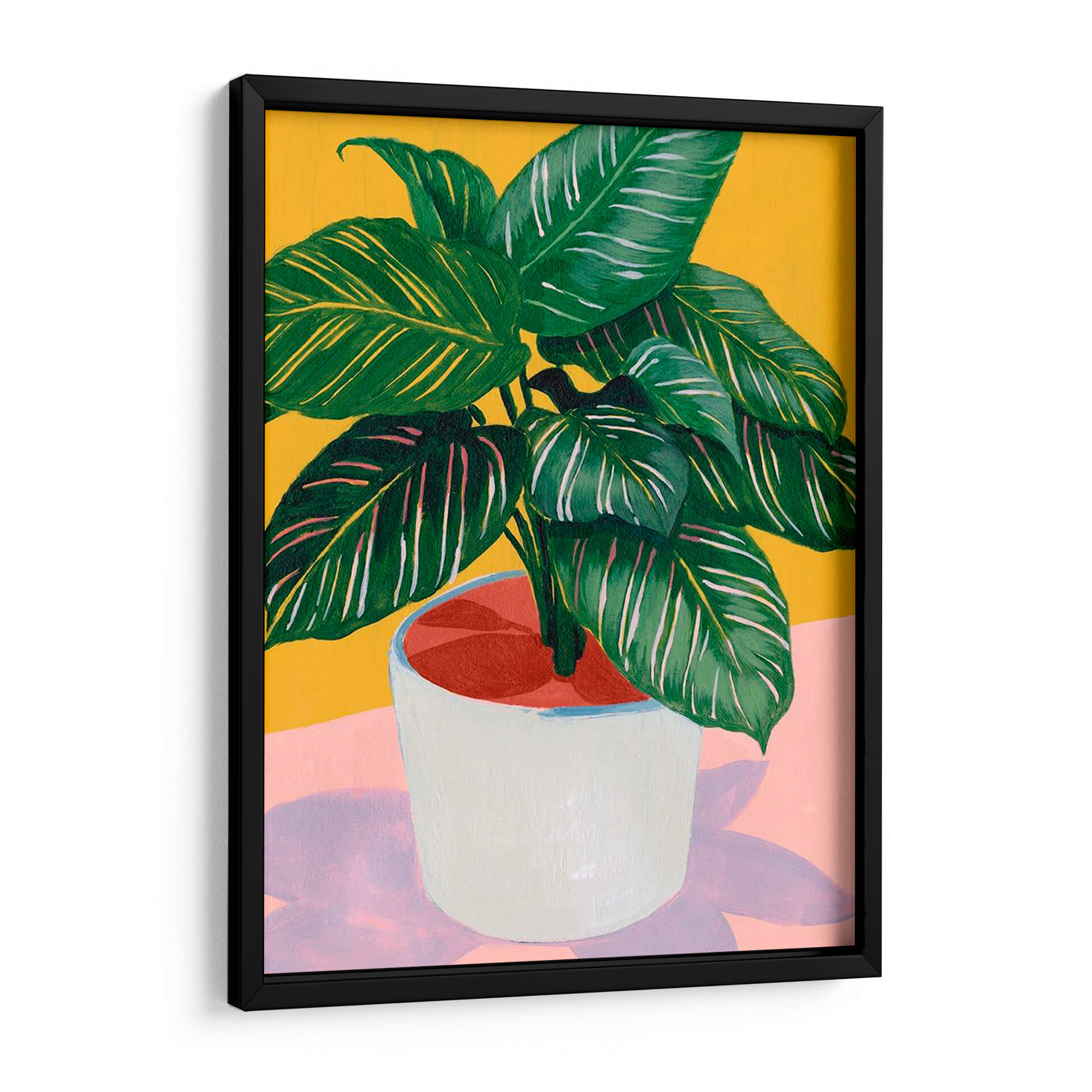 Embellece tu hogar con el vibrante cuadro decorativo 'Calathea I' de Grace Popp, una obra que captura la exuberancia de la naturaleza con un toque contemporáneo y audaz. Esta pieza presenta una detallada representación de las distintivas hojas de la planta Calathea, adornadas con delicadas venas en tonos rosados y blancos sobre un profundo verde esmeralda. El contraste se acentúa maravillosamente con un fondo amarillo sol radiante que aporta una energía positiva y luminosa al espacio. La base de la planta, un jarrón blanco minimalista, se asienta sobre una superficie en tonos pastel de rosa y lavanda, creando una composición equilibrada y moderna. El estilo de Grace Popp, caracterizado por pinceladas expresivas y una paleta de colores optimista, convierte a 'Calathea I' en mucho más que una simple representación botánica; es una declaración de vitalidad y frescura. Este cuadro es ideal para añadir un punto focal de color y vida a cualquier habitación, desde una sala de estar moderna hasta un estudio o dormitorio, infundiendo un ambiente de calma y conexión con la naturaleza. Su diseño versátil se integra a la perfección con diversas decoraciones, aportando un aire de sofisticación y calidez.