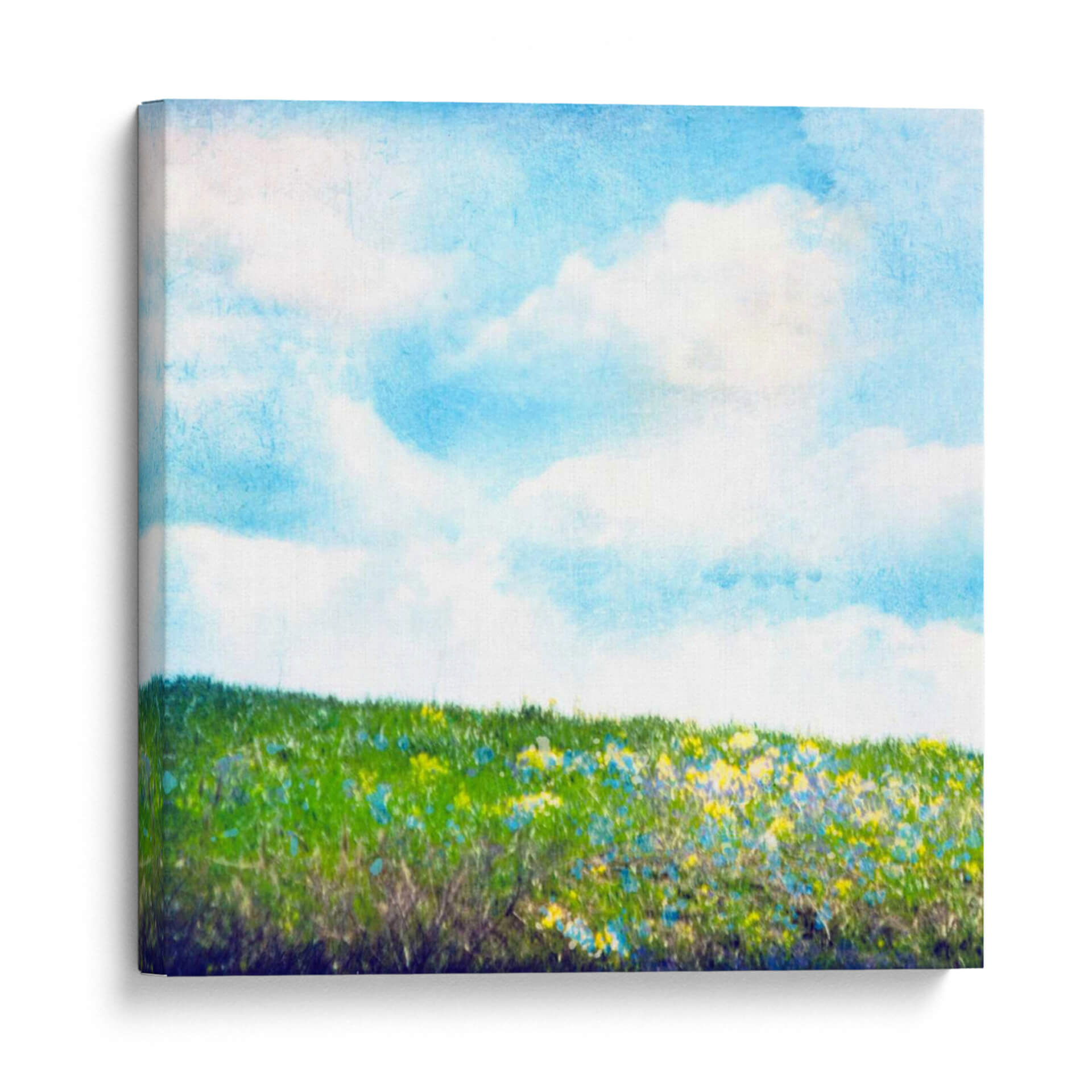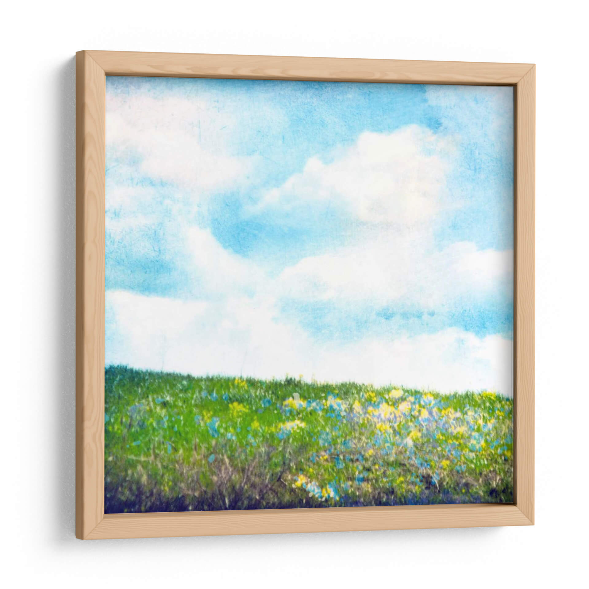 Sumérgete en la serenidad y el color de "Campo Brillante I", una obra de arte contemporáneo que captura la esencia de un prado florecido bajo un cielo despejado. Los vibrantes verdes de la hierba se entrelazan con salpicaduras de azul y amarillo, evocando la alegría y la vitalidad de la primavera. Las nubes etéreas y celestiales flotan en un fondo azul claro, añadiendo una sensación de amplitud y ligereza a la composición. El estilo impresionista y ligeramente texturizado de Ingrid Blixt dota a la pieza de una profundidad visual y una atmósfera soñadora, invitando a la contemplación y al relax. Este cuadro decorativo es perfecto para infundir calma y un toque de naturaleza en cualquier espacio de tu hogar u oficina, como una sala de estar, un dormitorio o un estudio. Su paleta de colores brillantes y alegres lo convierte en un punto focal ideal para crear un ambiente acogedor y lleno de vida. Descubre la belleza atemporal de la naturaleza reinterpretada a través de una visión artística única y añade una pieza inspiradora a tu colección de arte de pared.
