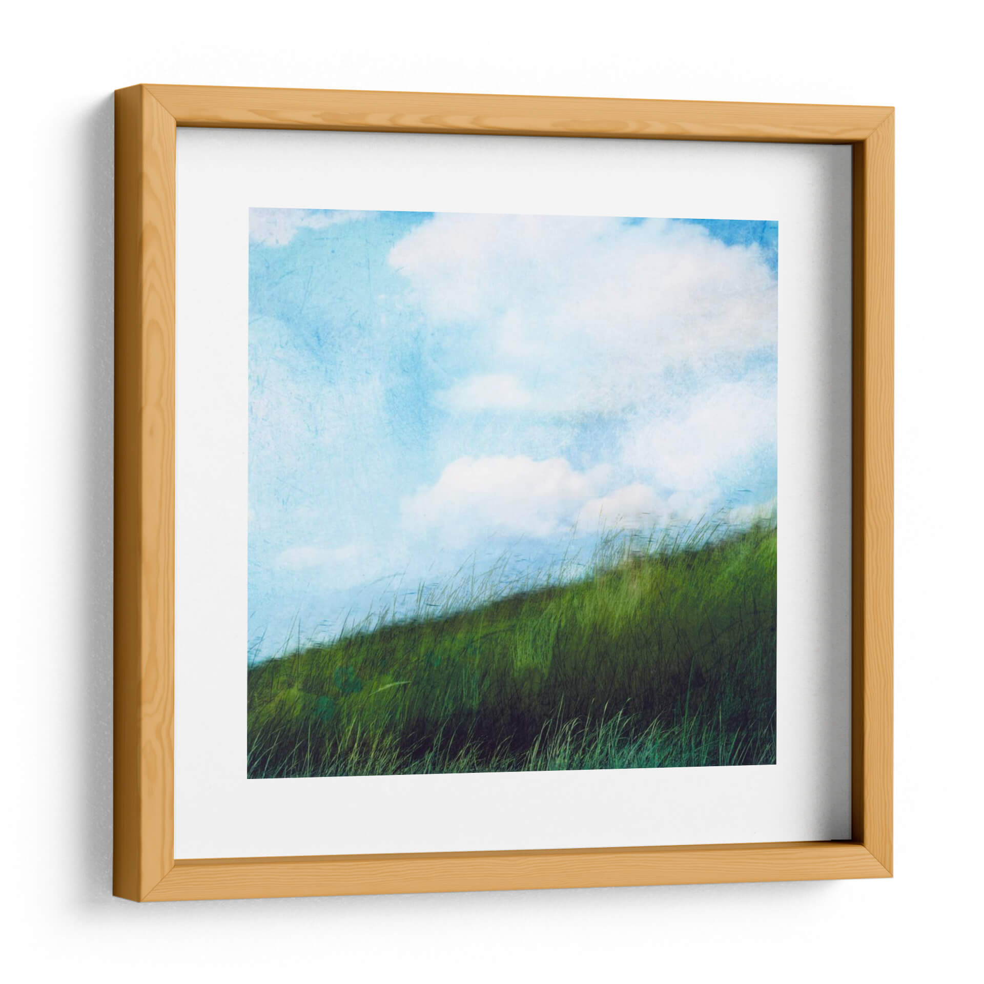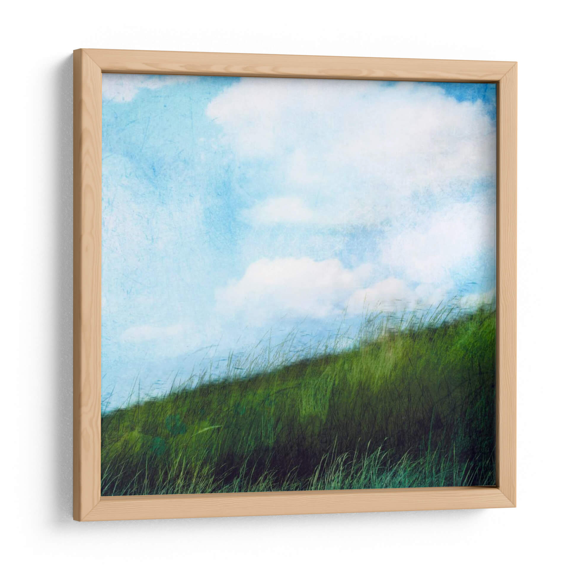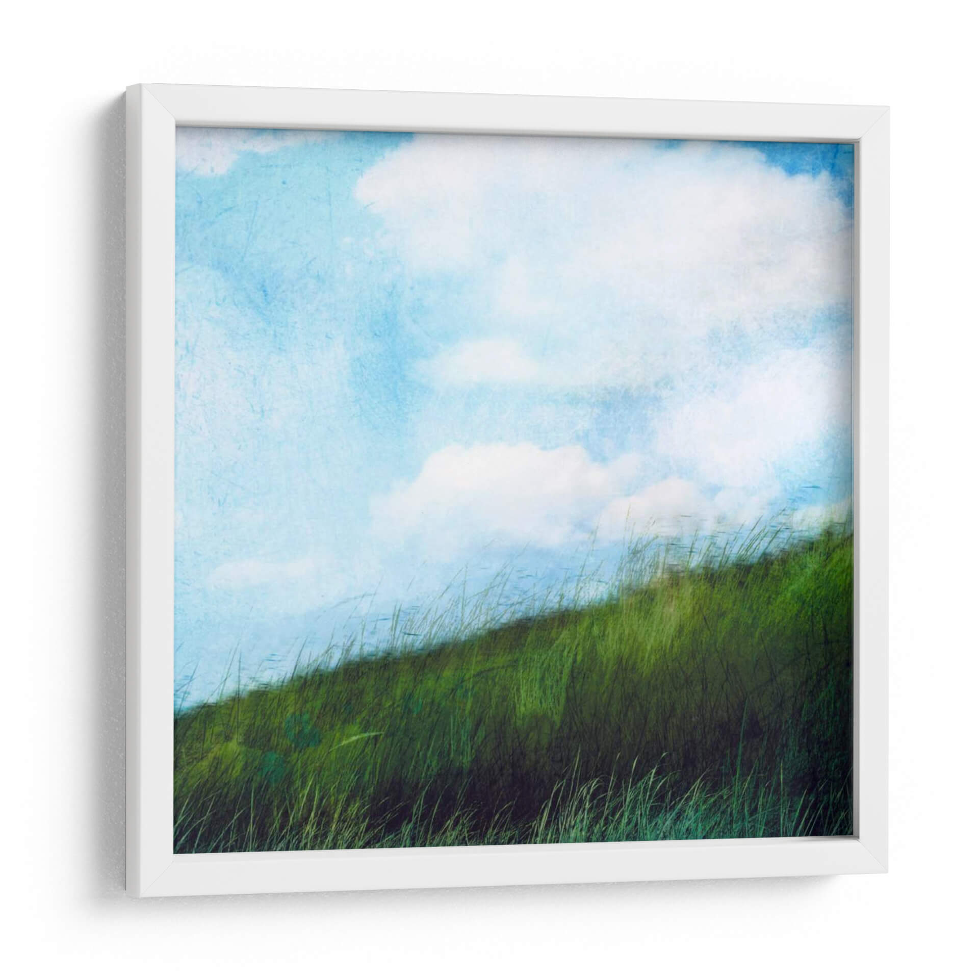 Sumérgete en la serenidad de "Campo Brillante II", una obra de arte de Ingrid Blixt que captura la esencia de un paisaje bañado por el sol. Este cuadro decorativo te transporta a un prado exuberante donde la hierba alta se mece suavemente bajo un cielo azul vibrante adornado con nubes etéreas. La paleta de colores, dominada por intensos verdes y azules celestes con toques de blanco puro, evoca una sensación de frescura, vitalidad y paz. La pincelada, de estilo semi-abstracto con una textura sutil, añade profundidad y un toque artístico contemporáneo, invitando a la contemplación. "Campo Brillante II" es la pieza perfecta para infundir calma y un soplo de naturaleza en cualquier espacio, ya sea una sala de estar, un dormitorio o una oficina. Su composición armónica y sus colores alegres lo convierten en un punto focal que ilumina y eleva la atmósfera de tu hogar, reflejando un gusto por la belleza natural y el arte moderno. Añade este cuadro decorativo a tu colección y deja que su energía positiva renueve tu entorno diario, creando un oasis de tranquilidad y estilo.
