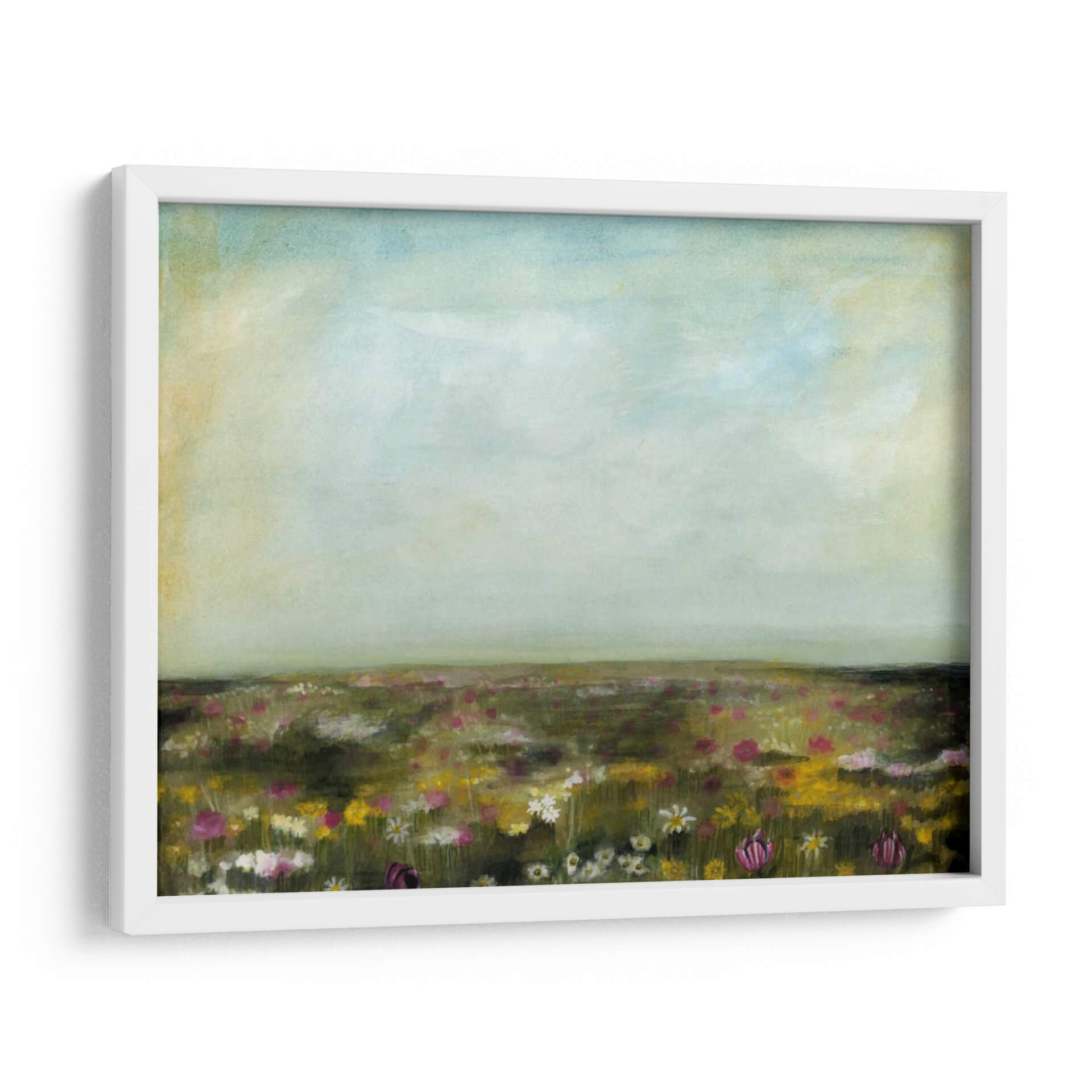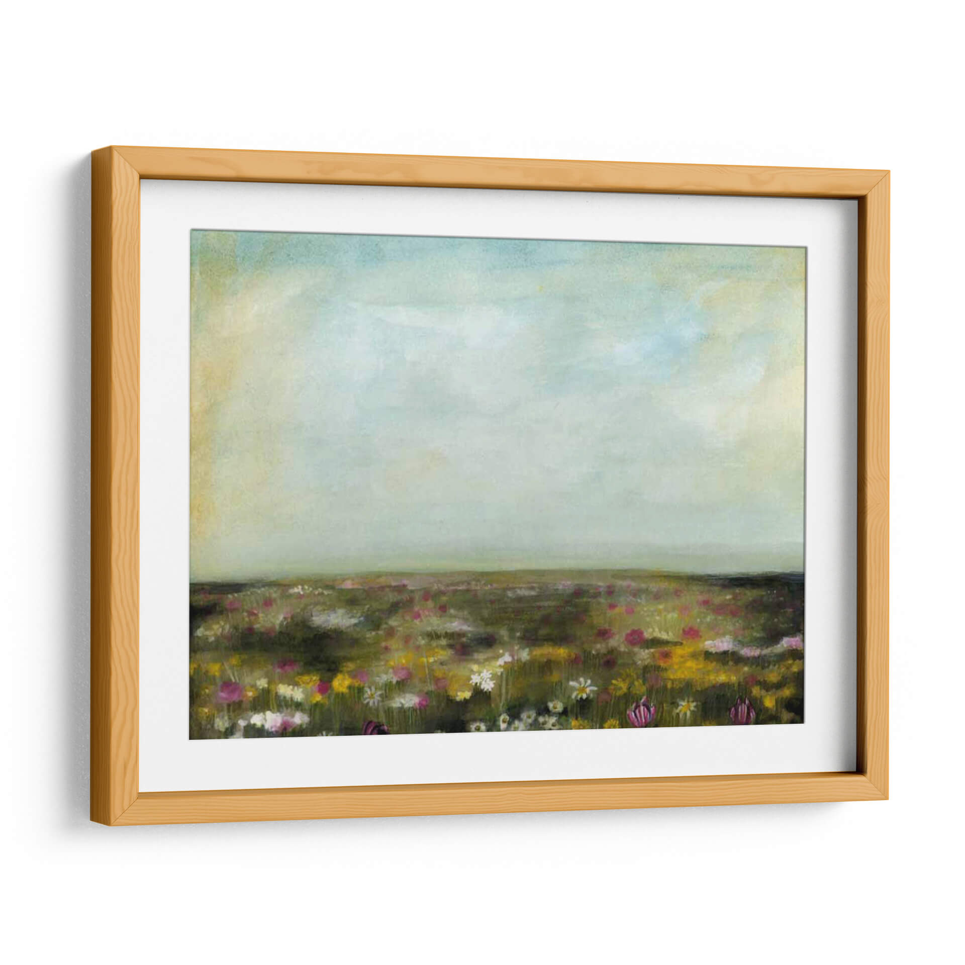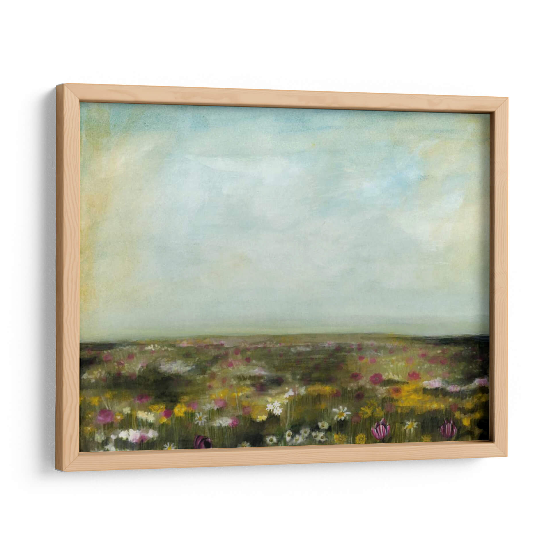 Sumérgete en la serena belleza de "Campos Florales II" de Naomi McCavitt, un cuadro decorativo que captura la esencia de un prado bañado por la luz. Esta obra evoca una profunda sensación de paz y conexión con la naturaleza, transportándote a un lugar de tranquilidad y contemplación. La artista emplea una técnica impresionista con pinceladas sueltas y expresivas que dan vida a un vibrante tapiz de flores silvestres en tonos rosas, amarillos y blancos, contrastando delicadamente con el verde profundo del campo. El cielo, con sus suaves gradaciones de azul y toques de amarillo pálido, amplifica la atmósfera etérea y expansiva de la pieza. La composición horizontal, con la línea del horizonte difuminada, crea una sensación de amplitud y profundidad, invitando a la mirada a perderse en el paisaje. Este cuadro decorativo es ideal para añadir un toque de color sutil y serenidad a cualquier espacio, desde un dormitorio acogedor hasta una sala de estar luminosa o una oficina que busque un ambiente de calma y creatividad. "Campos Florales II" no es solo una pieza de arte, es una invitación a la introspección y a la apreciación de la belleza efímera de la naturaleza.