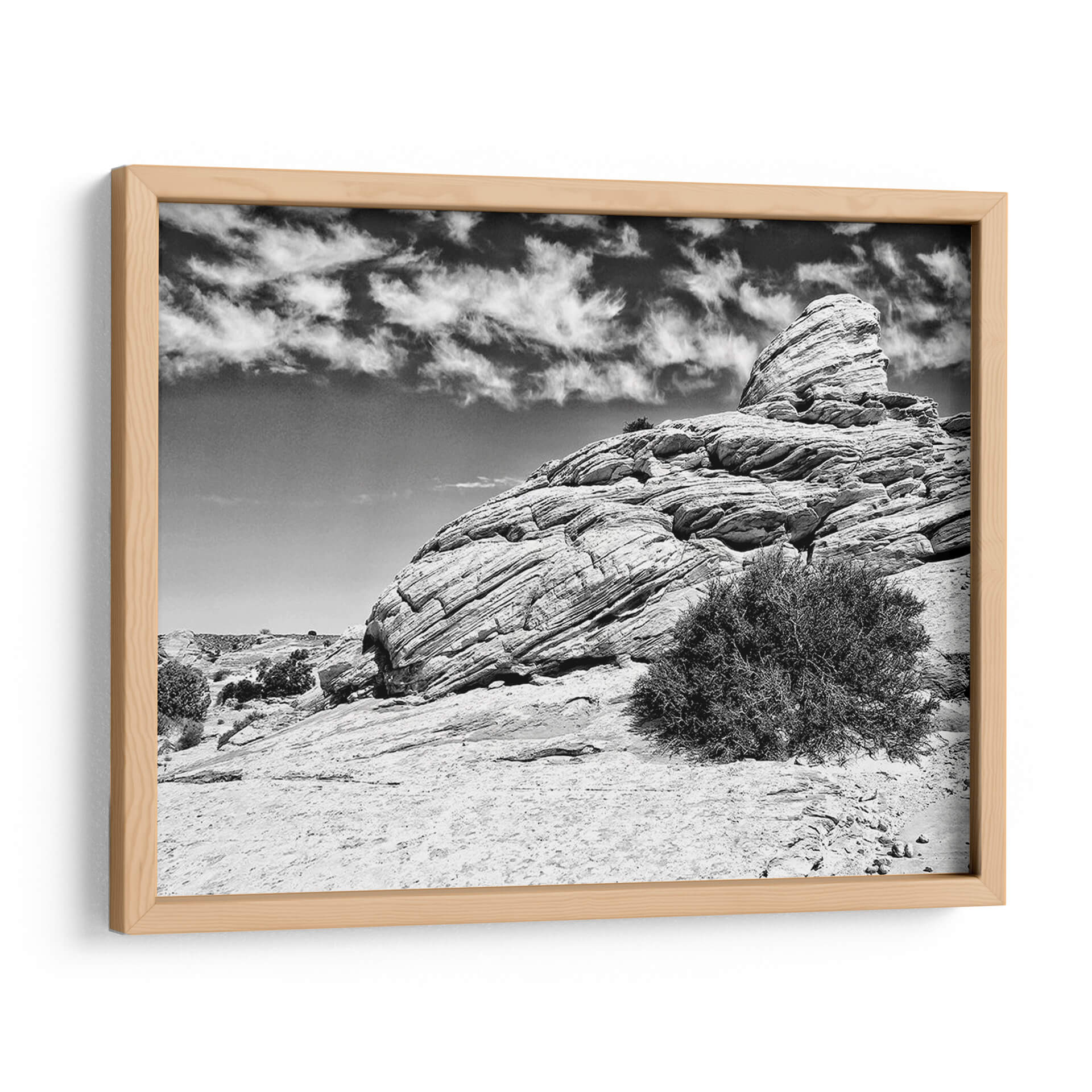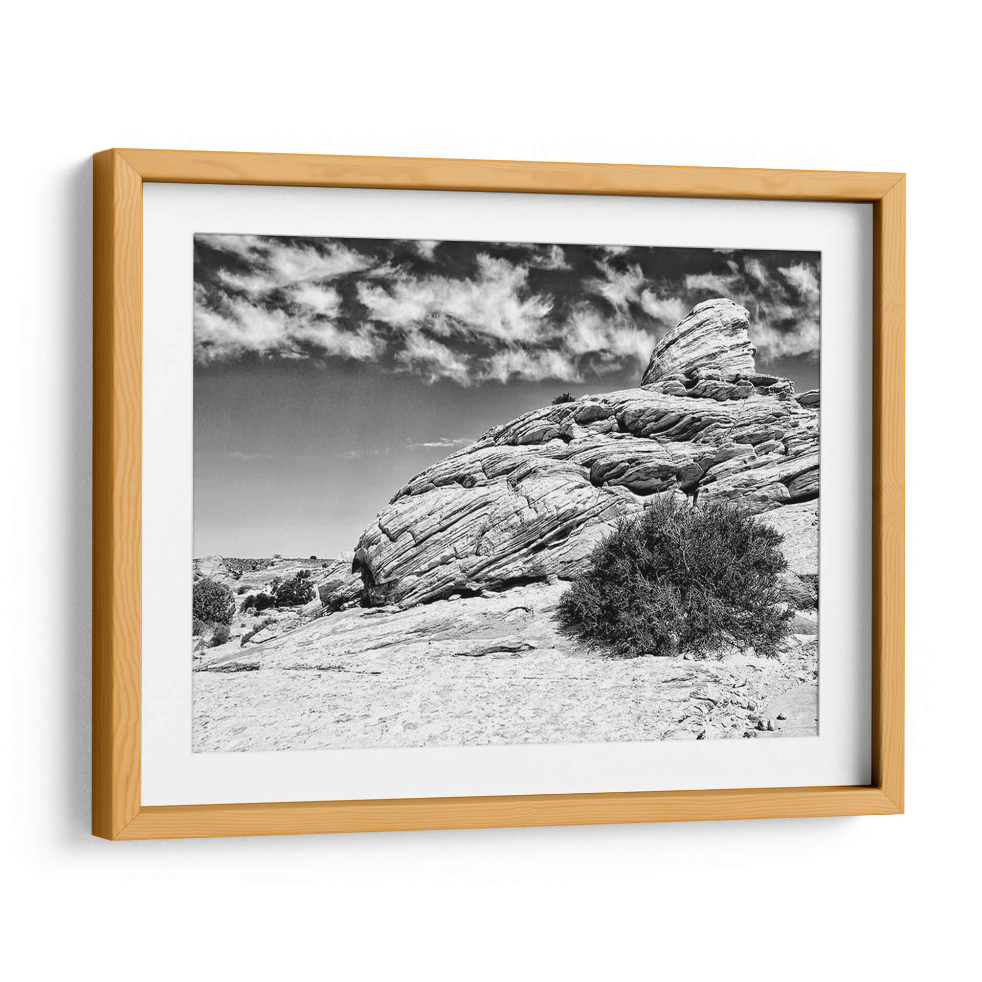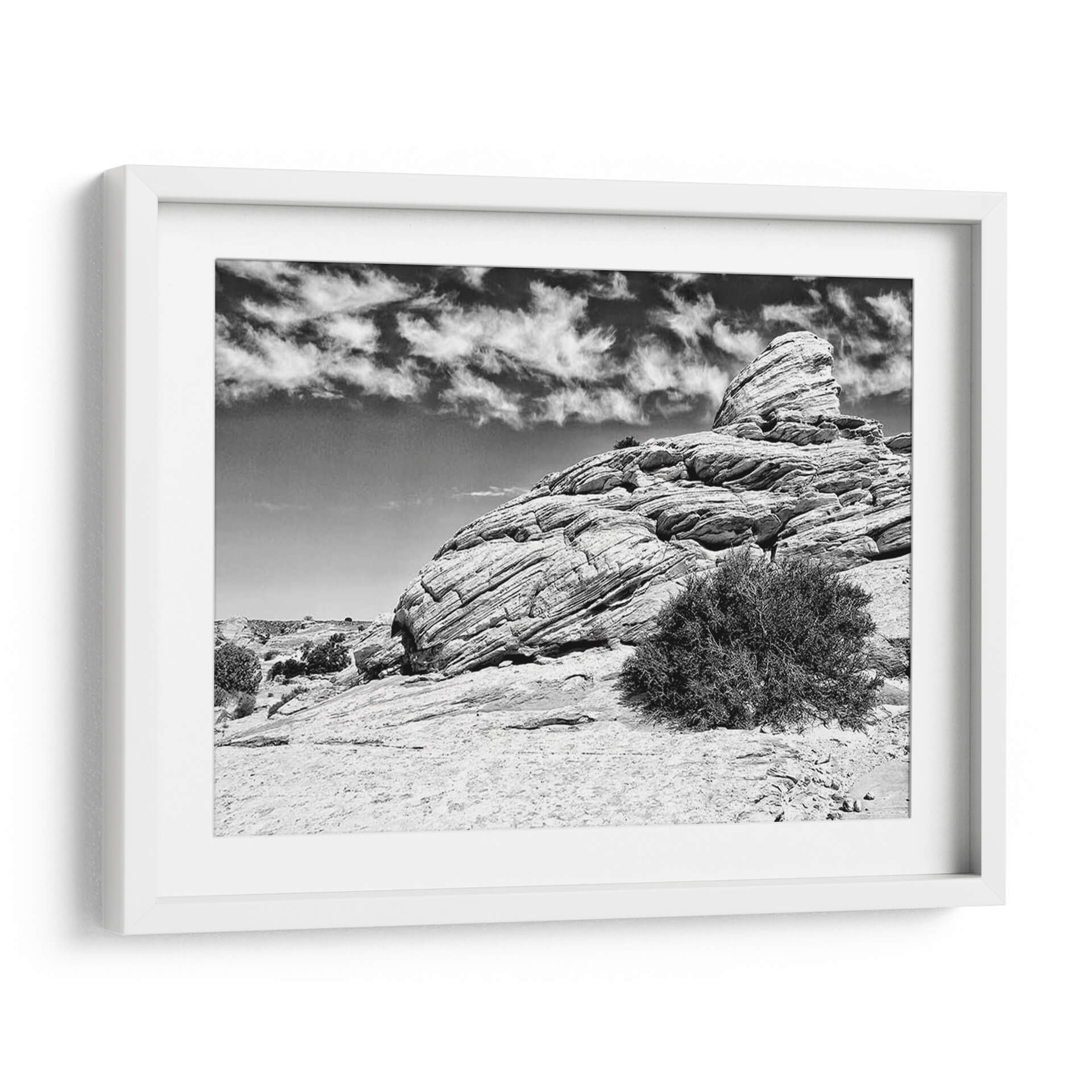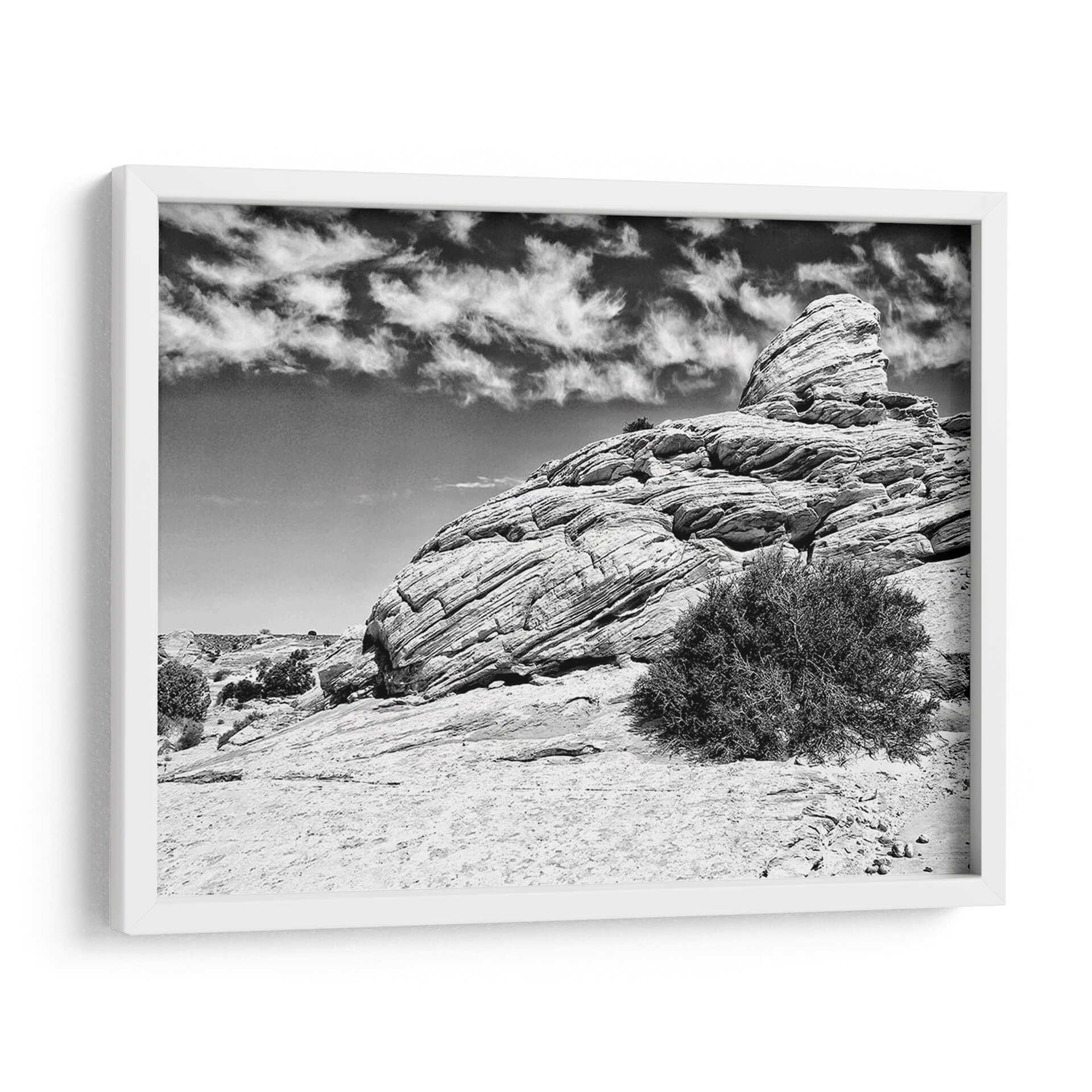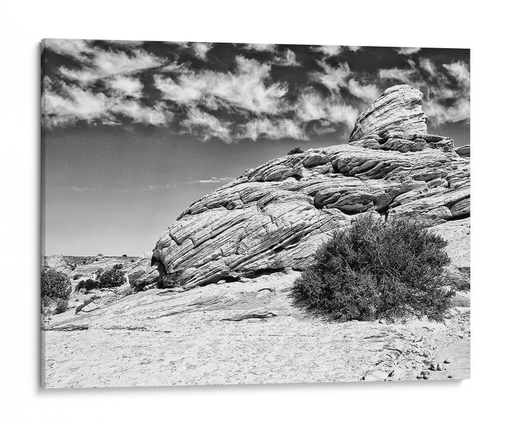 Sumérgete en la majestuosidad desértica con "Canyon Lands II" de Jenna Guthrie, un cuadro decorativo en blanco y negro que captura la esencia cruda y atemporal de paisajes rocosos erosionados por el tiempo. La obra presenta una formación rocosa imponente, marcada por capas sedimentarias que narran una historia geológica milenaria, bajo un cielo dramático adornado con nubes gestuales. El contraste entre las texturas rugosas de la roca y la suavidad etérea de las nubes crea una composición visualmente cautivadora. La paleta monocromática intensifica la sensación de profundidad y realza los detalles intrincados de la piedra y la vegetación escasa, evocando una atmósfera de serenidad, poder y contemplación. Este cuadro es ideal para añadir un toque de drama natural y sofisticación a salones modernos, oficinas ejecutivas o cualquier espacio que busque una conexión con la grandeza de la naturaleza. "Canyon Lands II" no es solo una pieza decorativa, sino una ventana a la belleza indómita y la fuerza silenciosa del paisaje natural, perfecta para inspirar y transformar tu entorno.