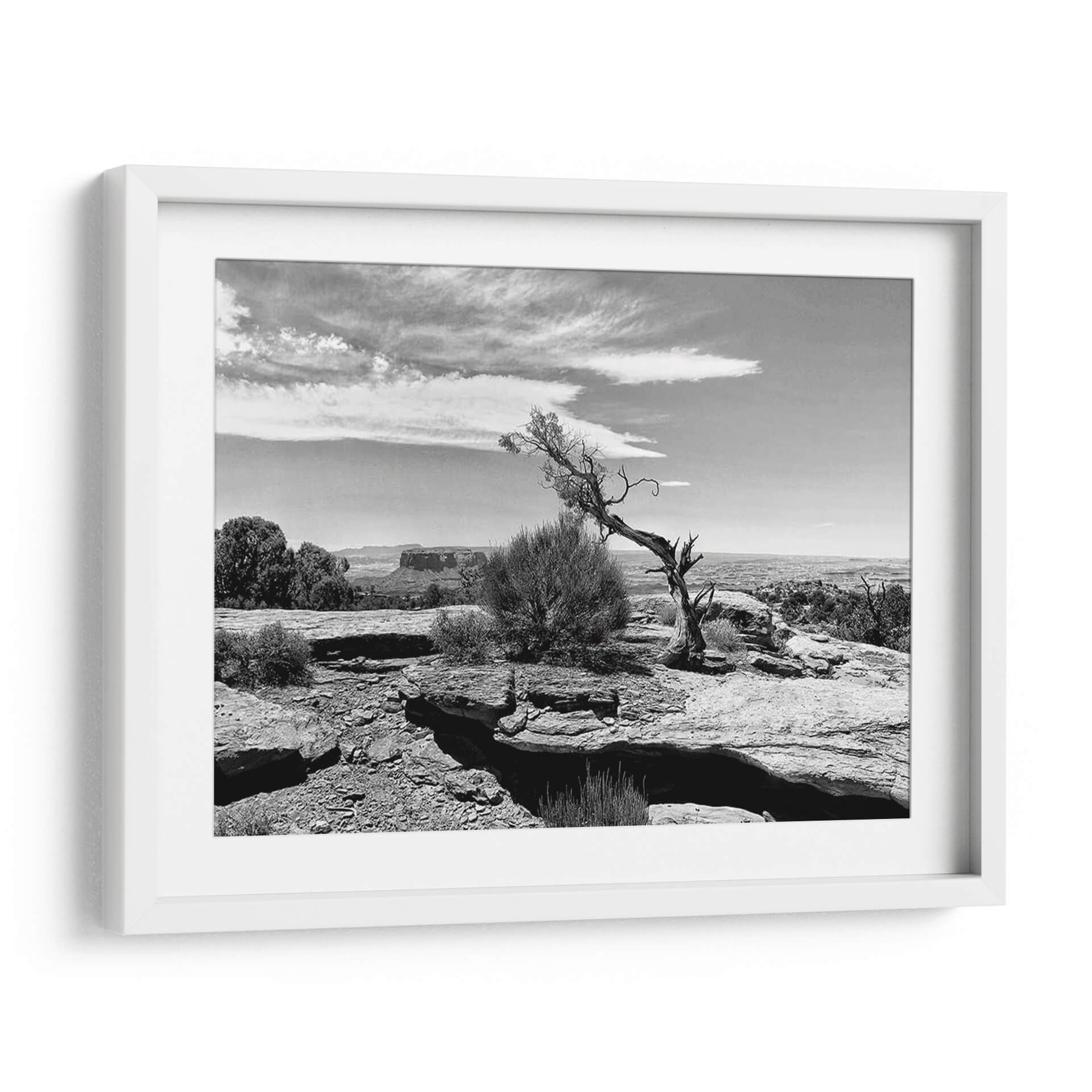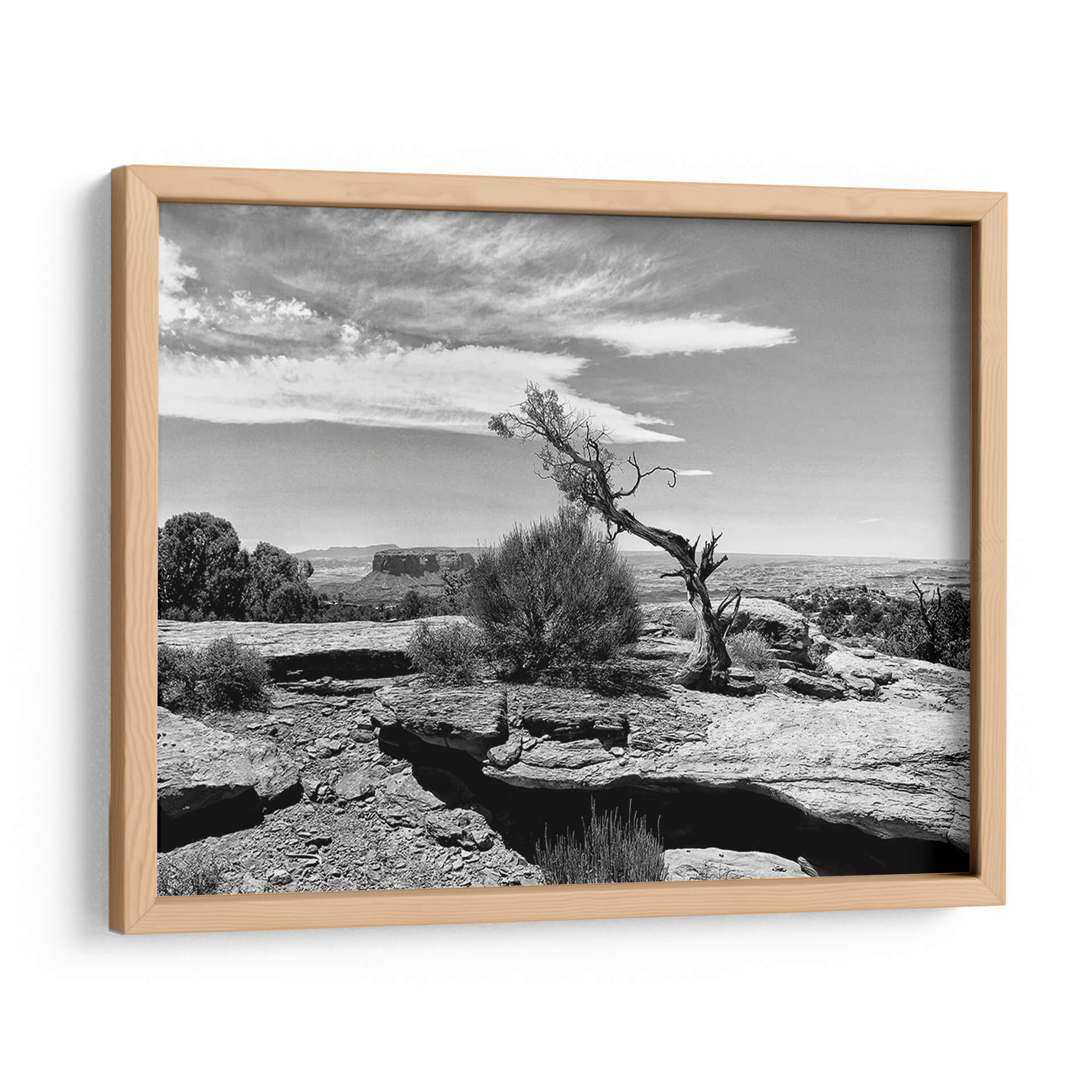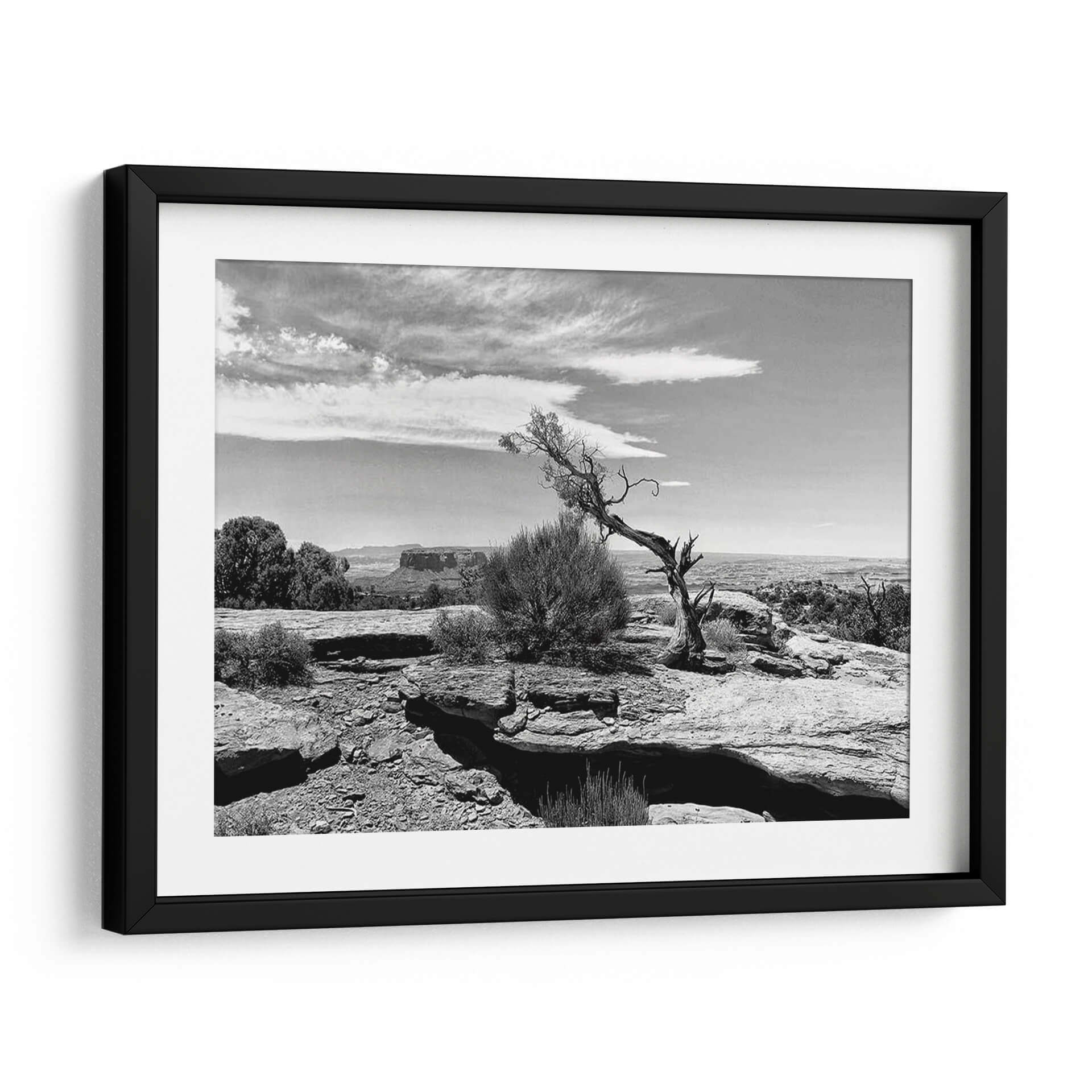 Sumérgete en la serena majestuosidad de 'Canyon Lands Iv', una obra maestra fotográfica de Jenna Guthrie que captura la esencia cruda y desolada de un paisaje árido. Este cuadro decorativo en blanco y negro te transporta a un lugar de tranquilidad y contemplación, destacando la belleza dramática de la naturaleza. La composición se centra en un árbol retorcido y resistente que se alza contra un cielo vasto y nublado, flanqueado por formaciones rocosas erosionadas y vegetación escasa pero tenaz. La paleta monocromática realza las texturas y las formas, creando una atmósfera atemporal y poderosa. Ideal para añadir un toque de sofisticación rústica a tu hogar u oficina, esta pieza evoca una sensación de aventura y conexión con la tierra. 'Canyon Lands Iv' es perfecta para quienes buscan una decoración de pared que hable de resiliencia y la belleza indómita del mundo natural, invitando a la reflexión y aportando un punto focal cautivador a cualquier espacio moderno o rústico.