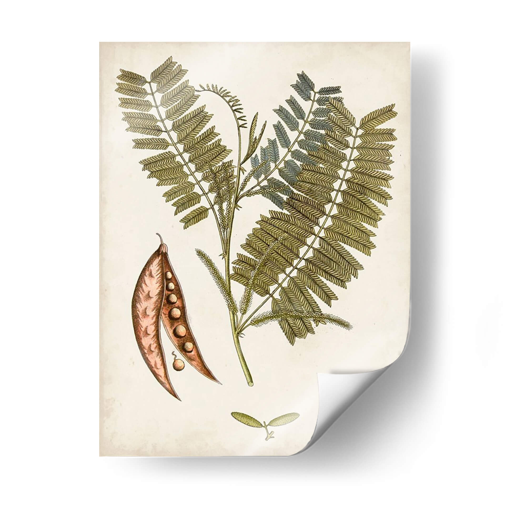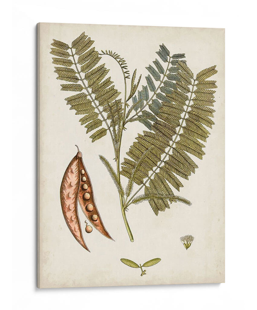Sumérgete en la elegancia botánica con "Charm Vintage Vii", una obra de arte que captura la delicadeza de la naturaleza con un toque de nostalgia. Este cuadro decorativo presenta una detallada ilustración de una planta, con sus frondosas hojas verdes y un racimo de vainas abiertas que revelan sus semillas. Los tonos tierra y los sutiles toques de azul verdoso en las hojas crean una paleta de colores serena y sofisticada, evocando una sensación de calma y conexión con el mundo natural. El estilo, que recuerda a las ilustraciones científicas vintage, aporta un aire de autenticidad y refinamiento, ideal para quienes aprecian la belleza atemporal. "Charm Vintage Vii" es perfecto para añadir un punto de interés orgánico a cualquier espacio, ya sea en un estudio, una sala de estar con decoración clásica o un dormitorio que busque un oasis de tranquilidad. Transforma tu hogar u oficina con esta pieza única que celebra la intrincada belleza de la botánica.