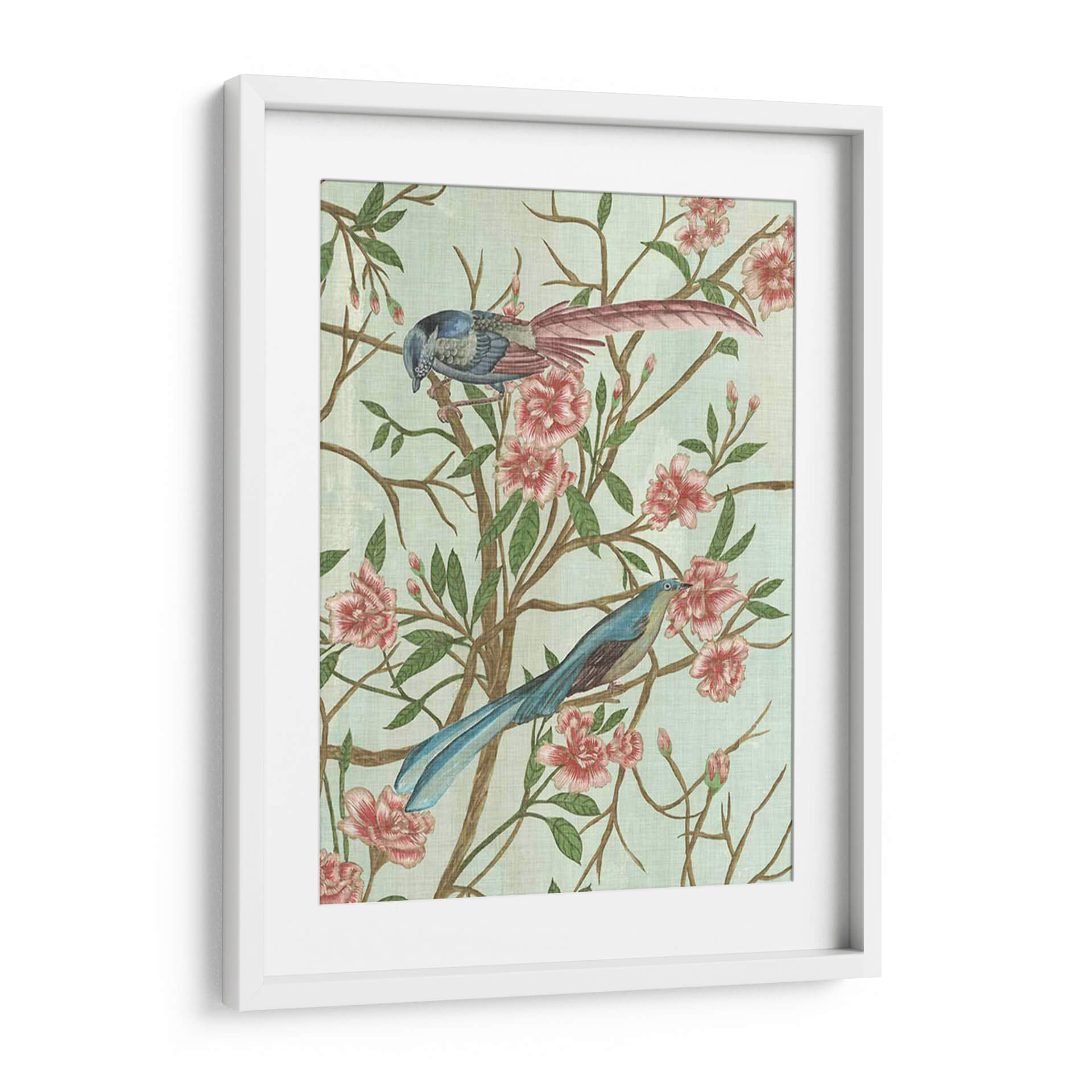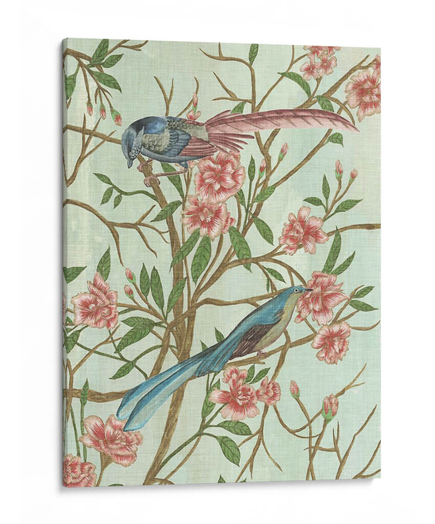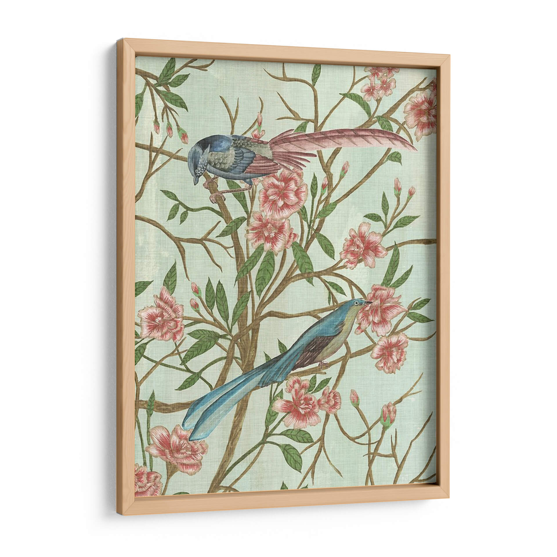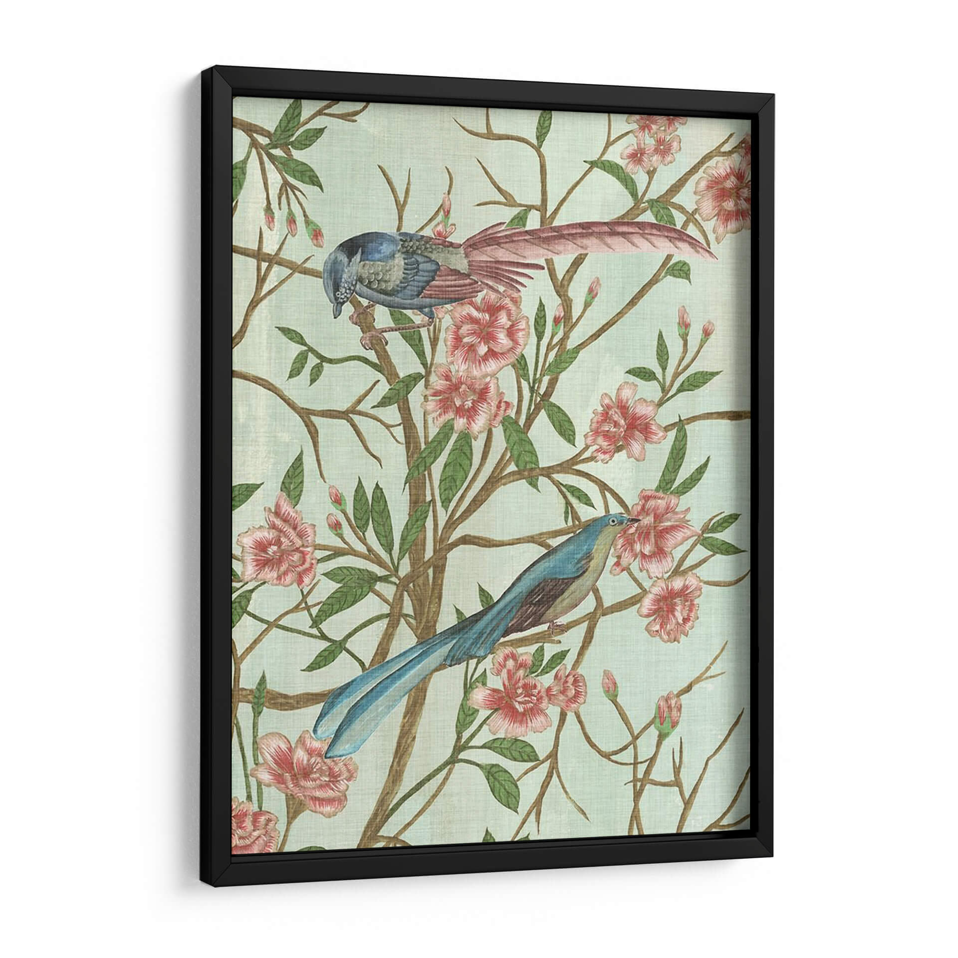 Embellece tu hogar con la delicadeza y el encanto de 'Chinoiserie Delicada IV', una obra maestra de Melissa Wang. Este cuadro decorativo captura la esencia de la naturaleza con un estilo que evoca la serenidad y la elegancia oriental. La composición presenta dos aves exóticas posadas en ramas floridas, rodeadas de un fondo en tonos azul verdoso que aporta una atmósfera de calma y sofisticación. Los detalles intrincados de las plumas de las aves y los pétalos de las flores se combinan a la perfección, creando una pieza visualmente cautivadora. La paleta de colores, dominada por suaves rosas, azules celestes y verdes tenues, infunde una sensación de tranquilidad y armonía, ideal para crear un oasis de paz en tu dormitorio o un punto de interés sereno en tu sala de estar. Este cuadro decorativo es perfecto para aquellos que buscan añadir un toque de refinamiento y conexión con la naturaleza a su espacio, inspirando contemplación y admiración. Una adición exquisita para cualquier amante del arte que valore la belleza atemporal y los diseños inspirados en la naturaleza.