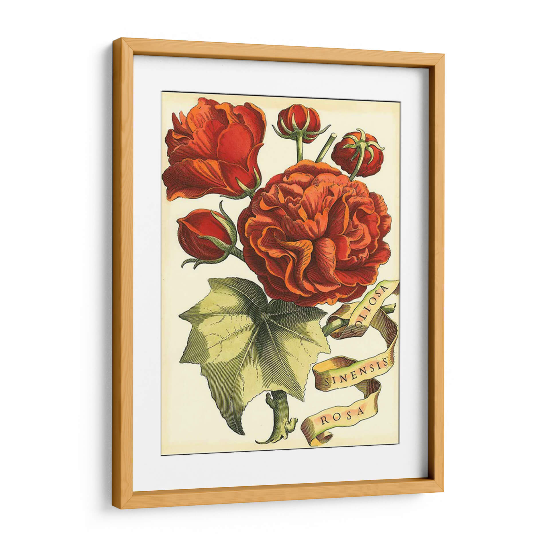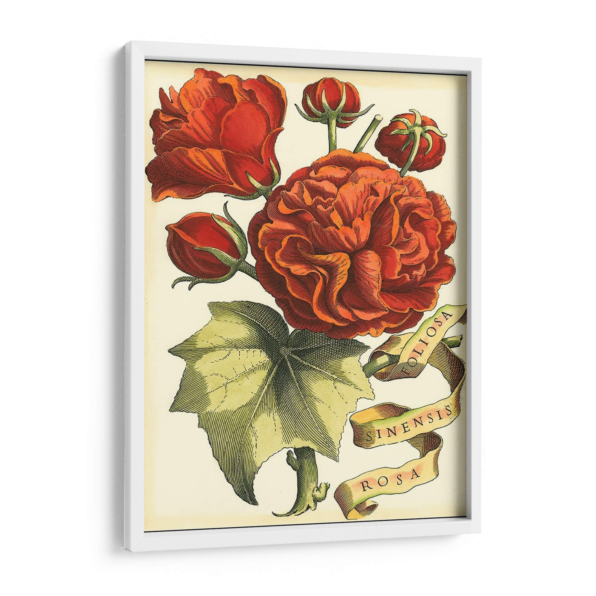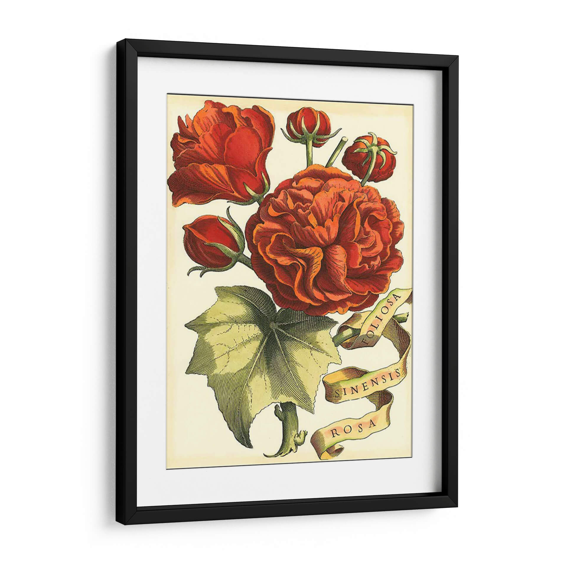 Embellece tu hogar con el cuadro decorativo "Cinta Florales Iii", una obra maestra del Vision Studio que captura la delicadeza y la opulencia de la naturaleza. Este exquisito diseño presenta un vibrante ramo de rosas en tonos rojos y anaranjados, con capullos que prometen florecer y una hoja verde detallada que aporta equilibrio a la composición. La técnica utilizada evoca el estilo botánico clásico, con líneas precisas y un sombreado que dota de profundidad y realismo a cada pétalo y hoja. La paleta de colores cálidos y terrosos crea una atmósfera acogedora y elegante, perfecta para añadir un toque de sofisticación a cualquier estancia. Las cintas con inscripciones latinas, "Foliosa", "Sinensis" y "Rosa", añaden un aire de autenticidad y conocimiento científico, reminiscentes de antiguas ilustraciones botánicas. Ideal para quienes buscan una decoración que combine la belleza atemporal de las flores con un diseño artístico refinado, este cuadro decorativo es un punto focal que inspirará calma y admiración en tu sala de estar, comedor u oficina.