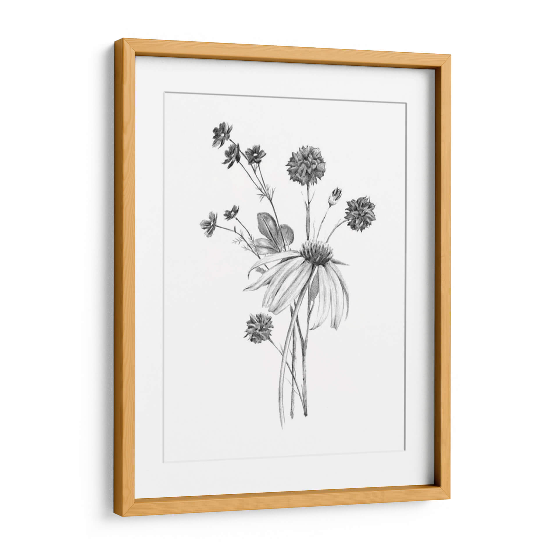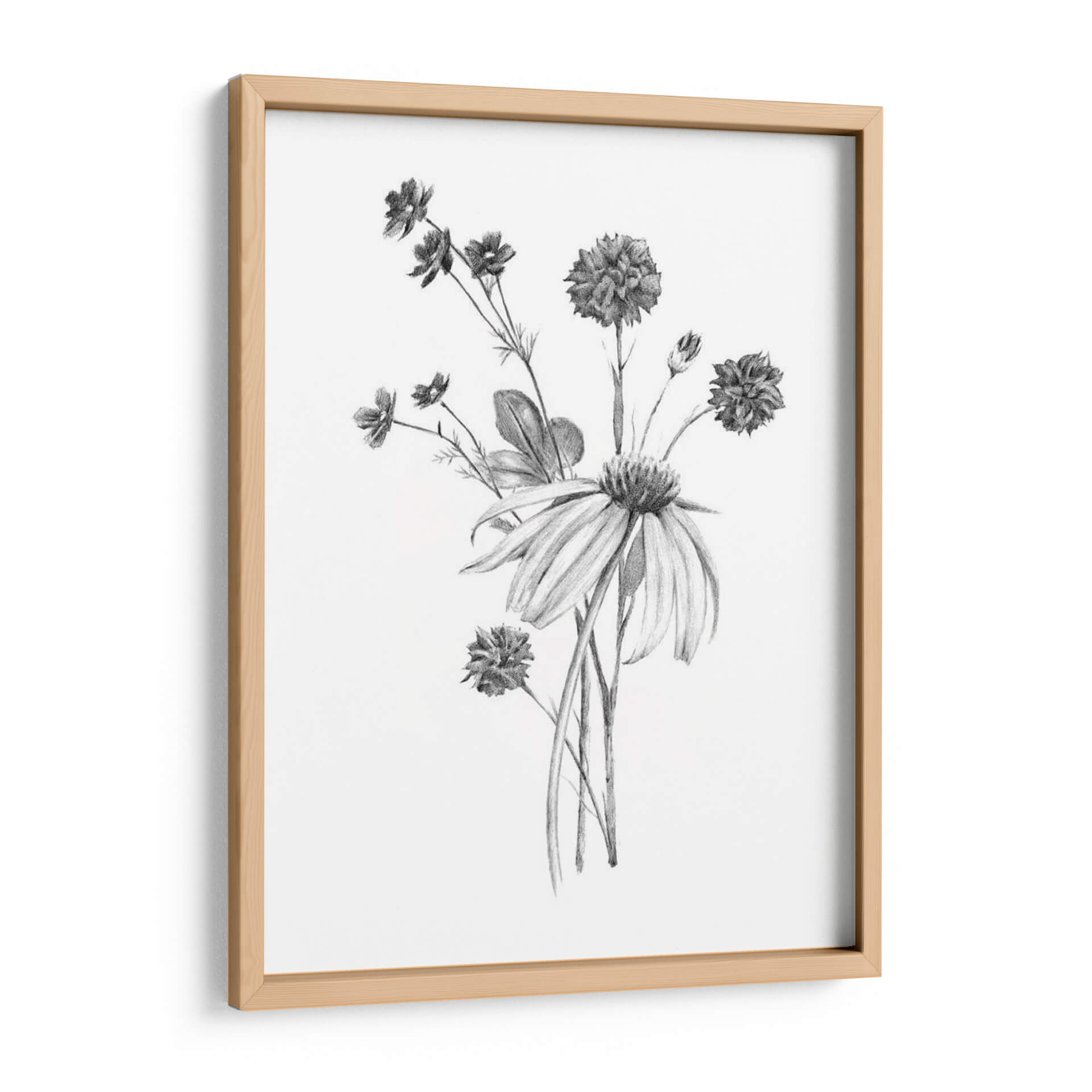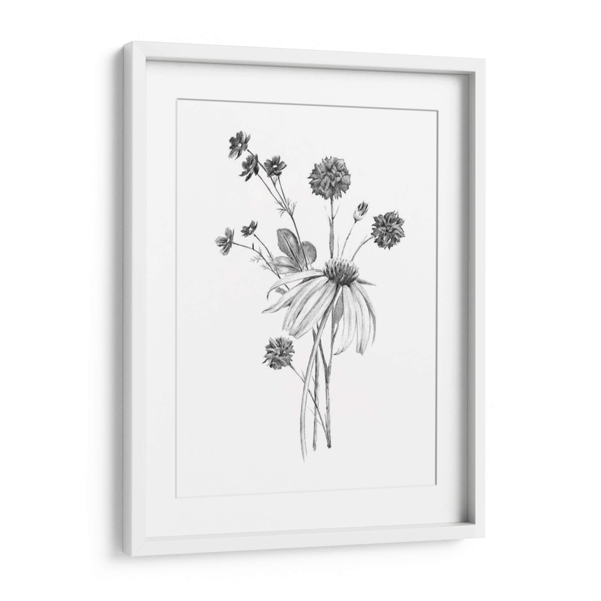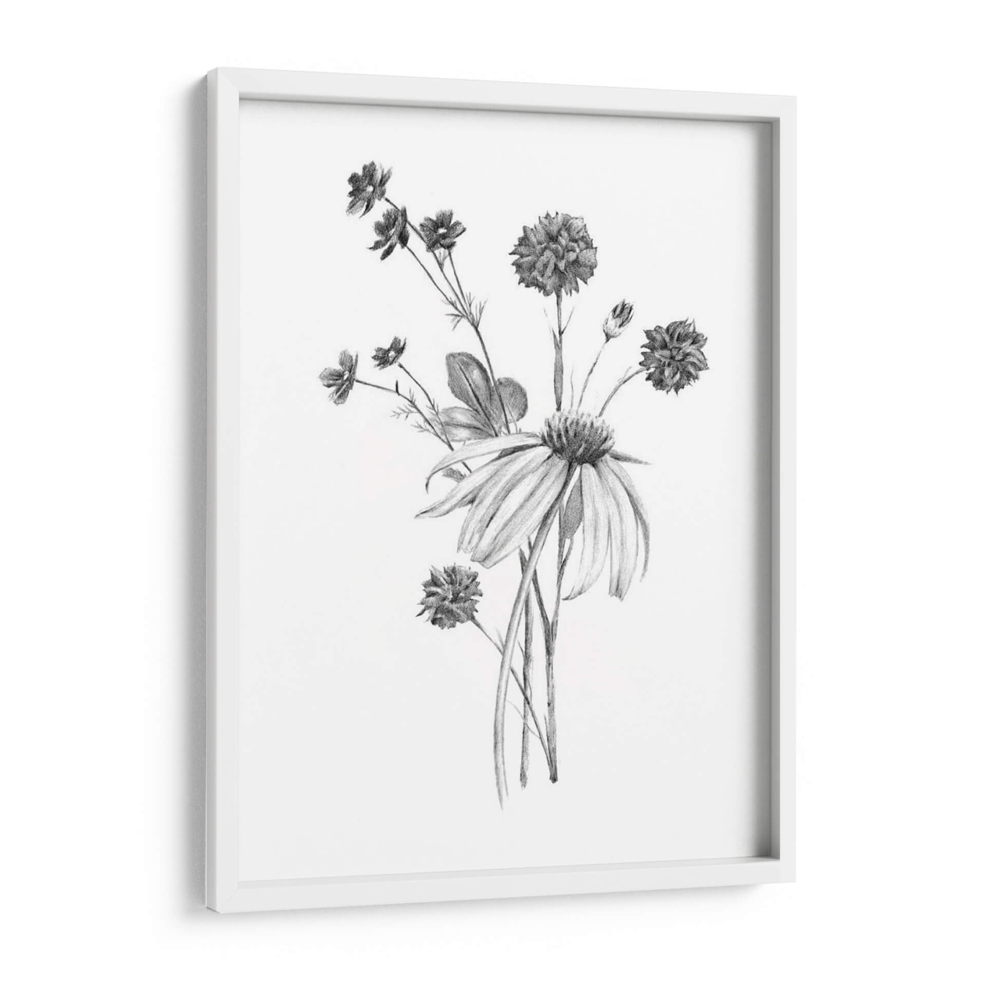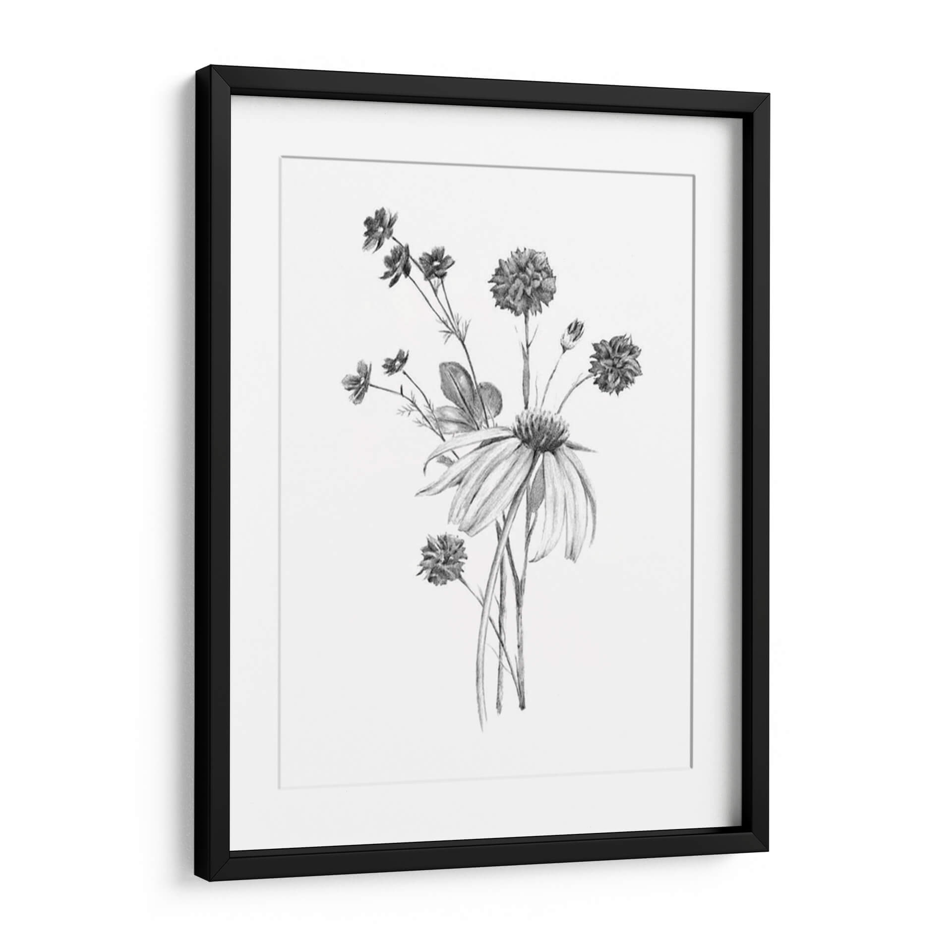 Embellece tu espacio con "Clúster De Jardín Ii", una obra de arte en grafito del artista Jacob Green que captura la delicadeza de la naturaleza. Este cuadro decorativo presenta un exquisito ramillete de flores en tonos grises y blancos, con un detallado trabajo de sombreado que aporta profundidad y realismo. Las diferentes texturas de pétalos y hojas, representadas con trazos precisos, crean un juego visual sutil y elegante. La composición se centra en un conjunto de flores de distintos tamaños y formas, evocando la belleza efímera de un jardín. La atmósfera que transmite es de serenidad, calma y conexión con lo orgánico. Ideal para quienes buscan añadir un toque de sofisticación natural a salones, dormitorios u oficinas, este cuadro es una pieza versátil que complementa tanto decoraciones modernas como clásicas. Su estilo gráfico y detallado lo convierte en un punto focal sutil pero impactante, invitando a la contemplación y aportando una sensación de paz al ambiente.