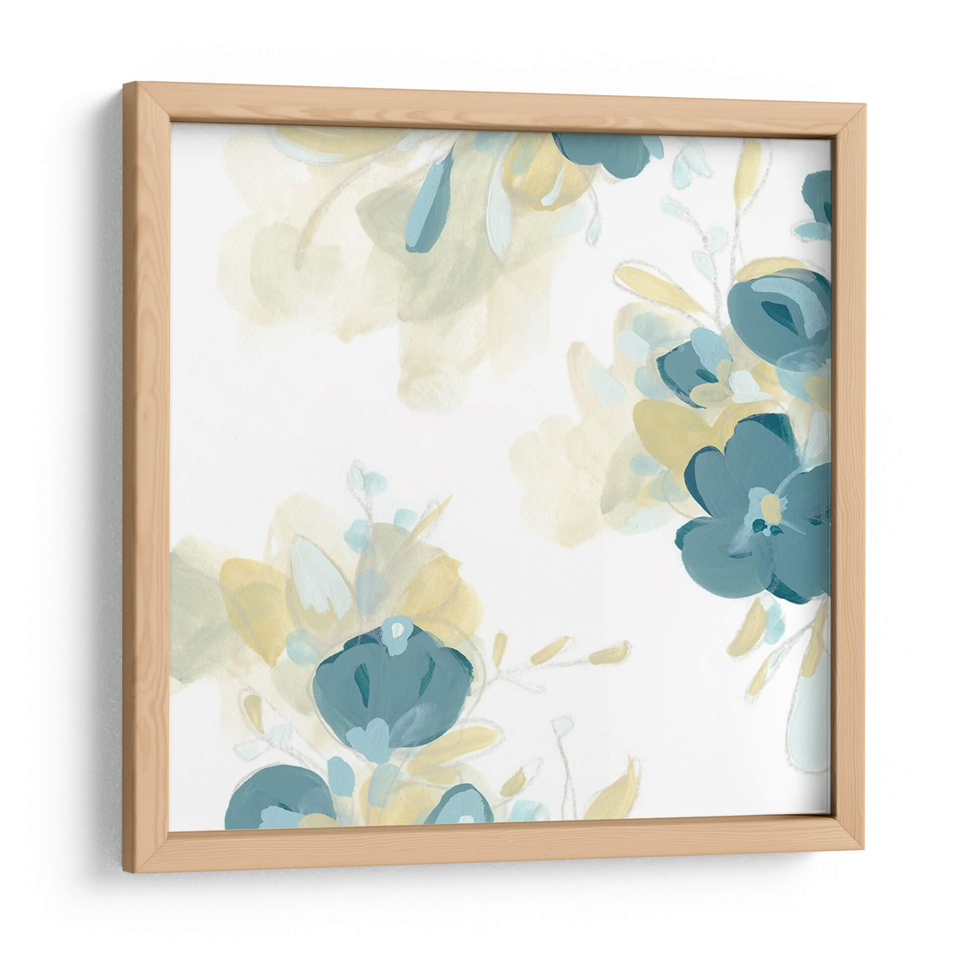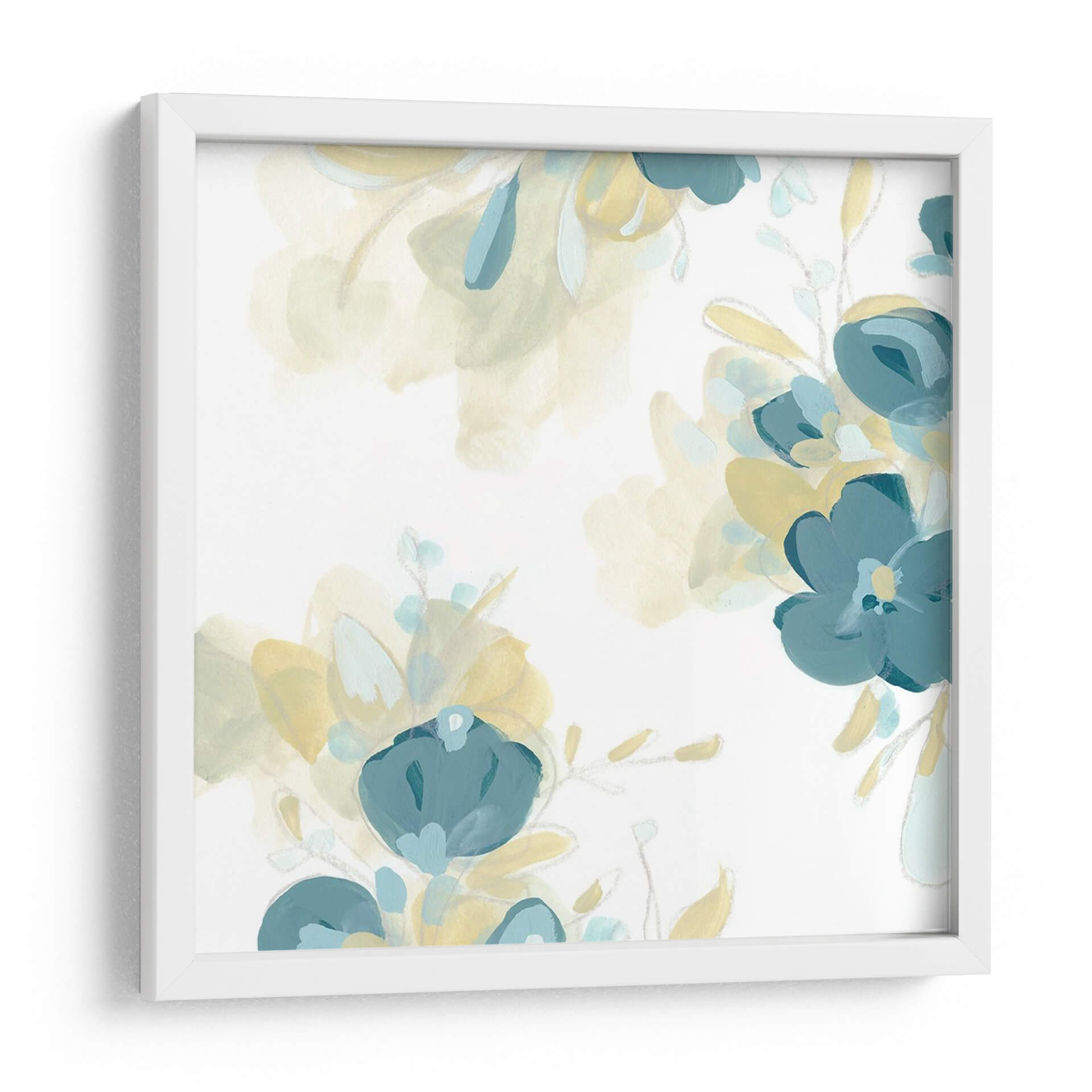 Inyecta una dosis de serenidad y elegancia botánica a tu hogar con este cautivador cuadro decorativo "Coergulus II" de June Erica Vess. La obra presenta un delicado arreglo floral abstracto, donde las pinceladas suaves y etéreas dan vida a capullos y hojas en tonos azul verdoso y amarillo pálido, contrastando sutilmente sobre un fondo blanco inmaculado. El estilo artístico, que evoca la ligereza del acuarela y la expresividad del arte moderno, crea una atmósfera de calma y refinamiento. Cada elemento floral parece flotar, invitando a la contemplación y aportando una sensación de frescura y vitalidad a cualquier espacio. Ideal para quienes buscan añadir un toque de naturaleza estilizada y contemporánea a su decoración, este cuadro es perfecto para salones, dormitorios o estudios, transformando el ambiente con su presencia sutil pero impactante. Su paleta de colores suaves lo convierte en una pieza versátil, capaz de complementar una amplia gama de estilos decorativos, desde el minimalista hasta el bohemio chic, aportando un punto focal de belleza serena y artística.