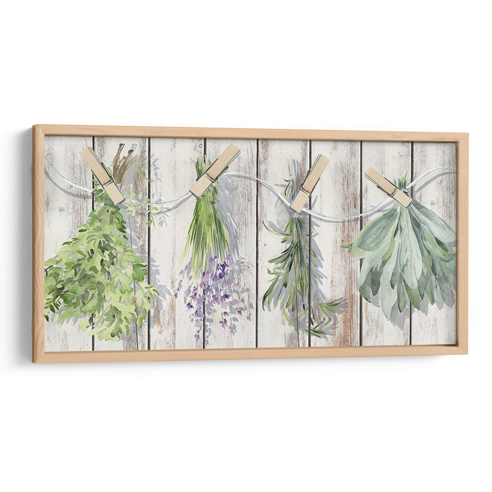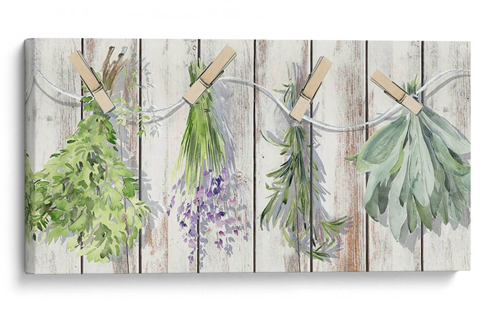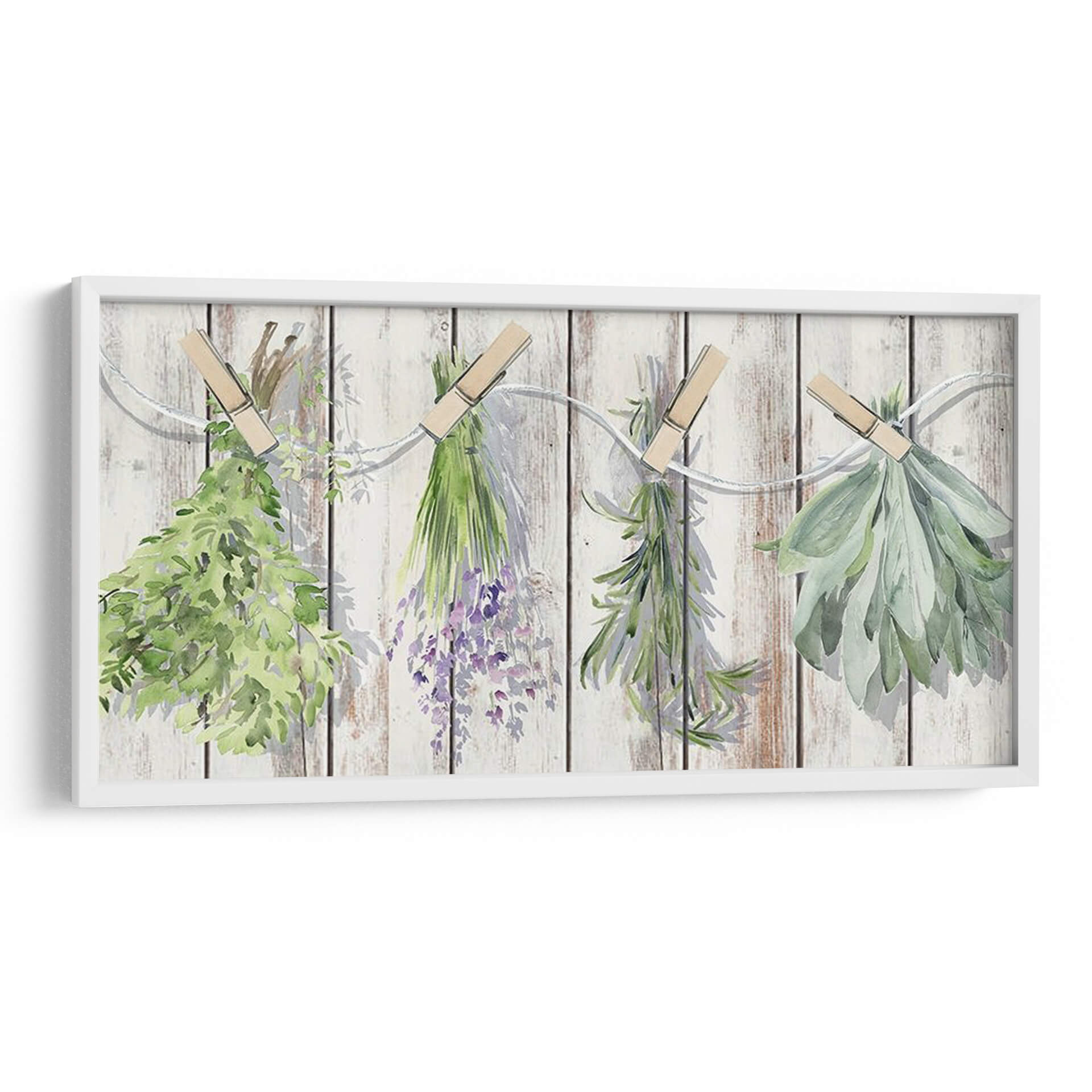 Embellece tu hogar con este encantador cuadro decorativo que captura la esencia de la naturaleza y la sencillez. La obra presenta un delicado arreglo de hierbas aromáticas, como lavanda y romero, suspendidas con pinzas de madera sobre un rústico fondo de tablones blancos desgastados. Los tonos verdes vibrantes y los sutiles toques de lavanda crean una atmósfera de frescura y tranquilidad, evocando la sensación de un jardín soleado o una cocina campestre. La técnica de acuarela utilizada aporta una suavidad y fluidez a las formas, añadiendo un toque artístico y etéreo a la composición. Este cuadro es perfecto para añadir un elemento natural y relajante a cualquier espacio, ya sea en la cocina, el comedor, un dormitorio o incluso un baño, aportando un toque de serenidad y estilo rústico-chic. Su diseño atemporal y su temática relacionada con la naturaleza lo convierten en una pieza versátil que complementa diversos estilos de decoración, desde el moderno hasta el farmhouse. Inspira calma y bienestar con esta pieza única.