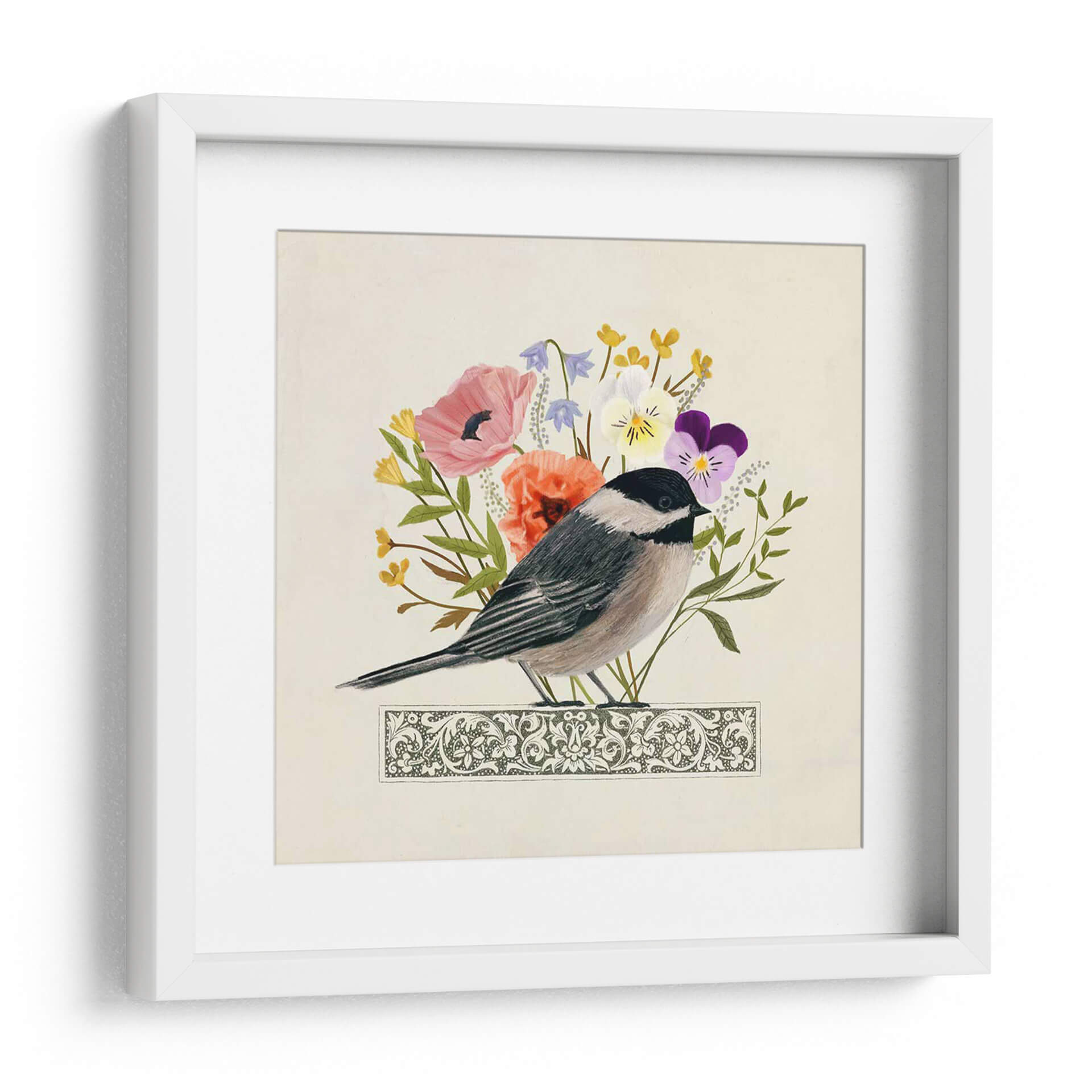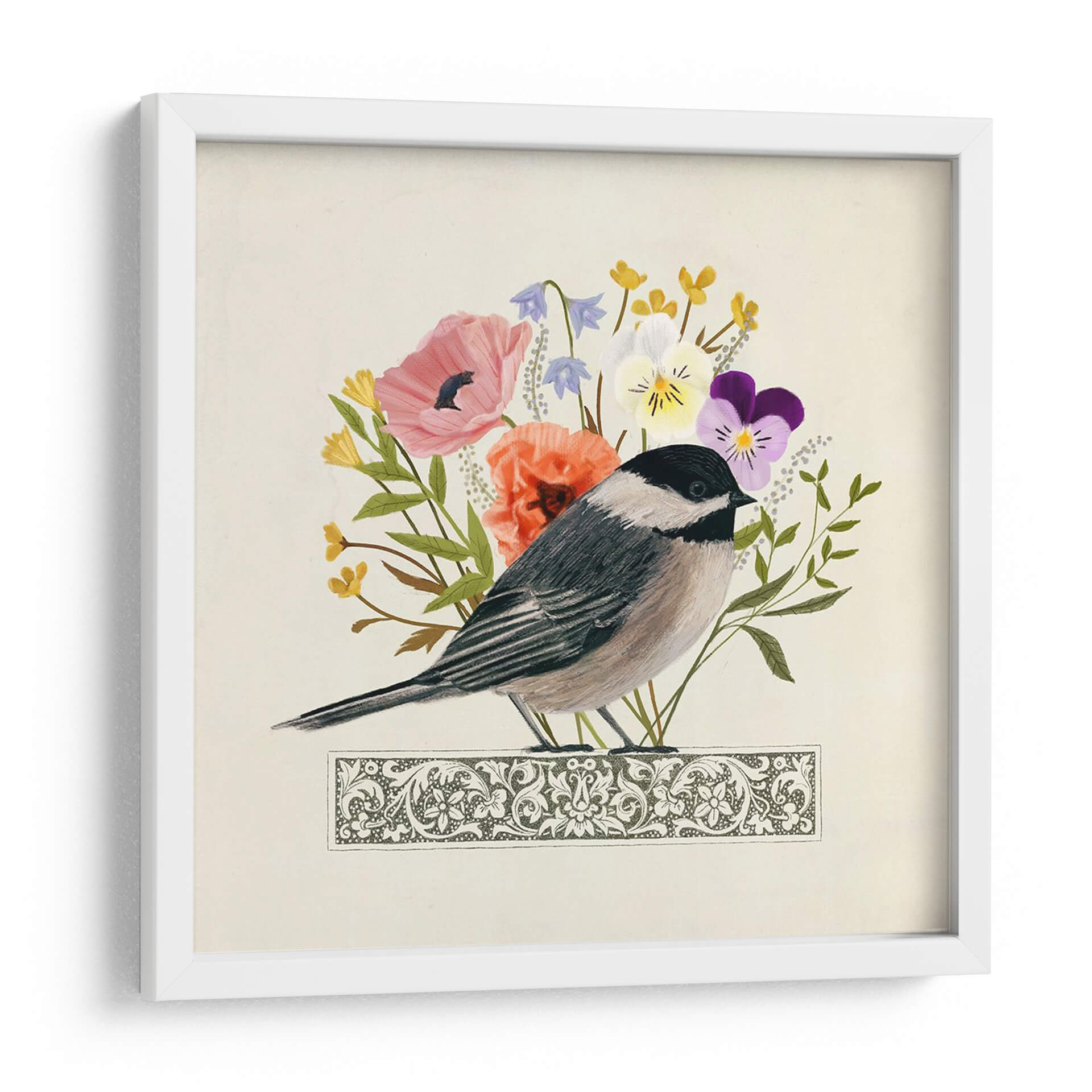 Embellece tu hogar con "Collage Aviar Ii", una obra de arte cautivadora de Victoria Borges que captura la delicadeza de la naturaleza. Esta pieza presenta un hermoso pájaro posado sobre un intrincado diseño ornamental, rodeado de un vibrante ramillete de flores silvestres. Los tonos suaves y la composición equilibrada crean una atmósfera de serenidad y encanto, perfecta para añadir un toque de elegancia a cualquier habitación. Los colores pastel de las flores, incluyendo rosas, naranjas, blancos y púrpuras, contrastan armoniosamente con las tonalidades grises y negras del ave, mientras que el fondo neutro resalta la belleza de cada elemento. Este cuadro decorativo es ideal para espacios que buscan transmitir calma y una conexión con el mundo natural, como dormitorios, salones o estudios. Su estilo, que evoca el arte clásico con un toque contemporáneo, lo convierte en una adición versátil para diversos estilos decorativos, desde el rústico hasta el moderno.