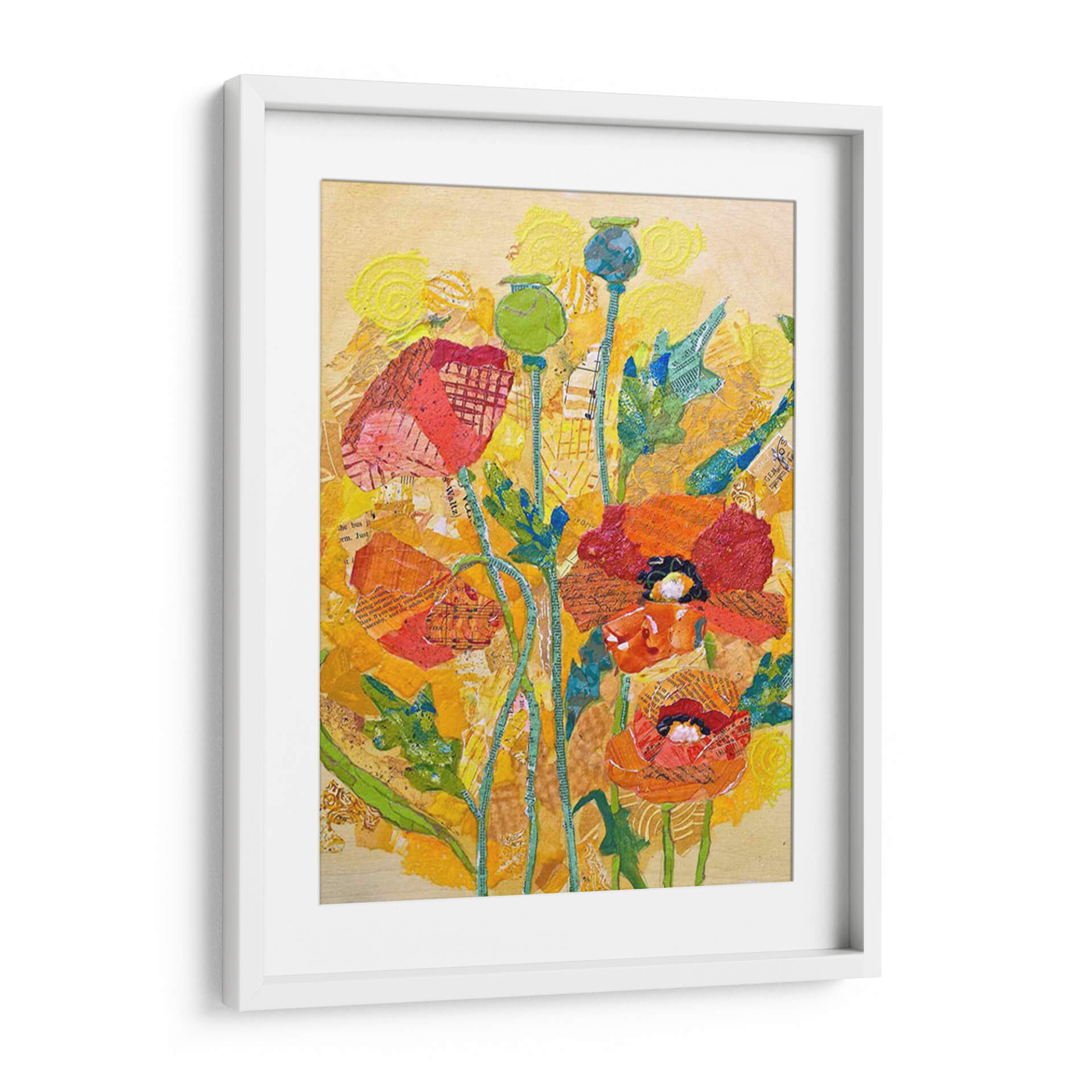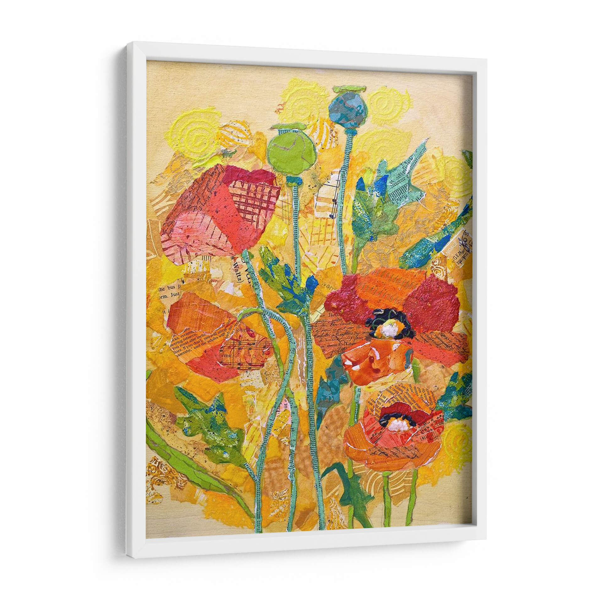 Inunda tu espacio con la vitalidad y el encanto del 'Collage De Amapola I', una obra de arte contemporáneo que celebra la belleza de la naturaleza a través de una cautivadora técnica de collage. La artista Elizabeth St. Hilaire da vida a estas amapolas con una explosión de texturas y colores, combinando recortes de papel, partituras y otros elementos para crear un efecto visual dinámico y único. Los cálidos tonos amarillos y naranjas dominan la paleta, evocando una sensación de alegría y energía solar, mientras que los vibrantes rojos de las amapolas y los toques de azul en las hojas aportan profundidad y contraste. Cada pétalo parece contar una historia, invitando al espectador a apreciar la complejidad y la delicadeza de estas flores icónicas. Este cuadro decorativo es una pieza ideal para añadir un punto focal lleno de vida a cualquier habitación, desde una sala de estar moderna hasta un rincón acogedor en tu estudio u oficina. Su estilo ecléctico y su composición vibrante lo convierten en una elección perfecta para quienes buscan arte que inspire optimismo y un toque de sofisticación bohemia. Transforma tus paredes con esta pieza que fusiona la delicadeza floral con una audaz expresión artística, creando un ambiente inspirador y lleno de carácter.