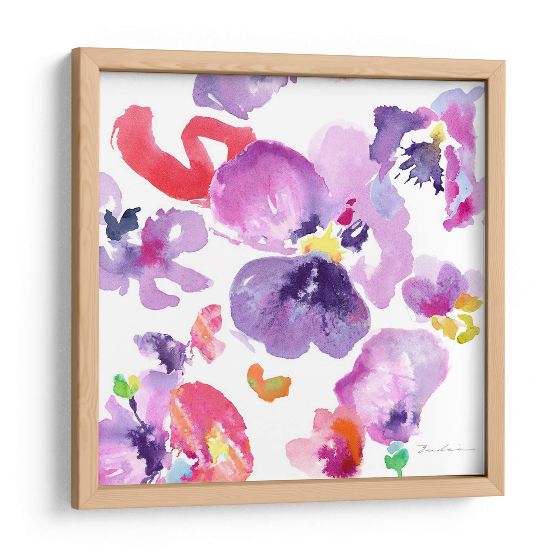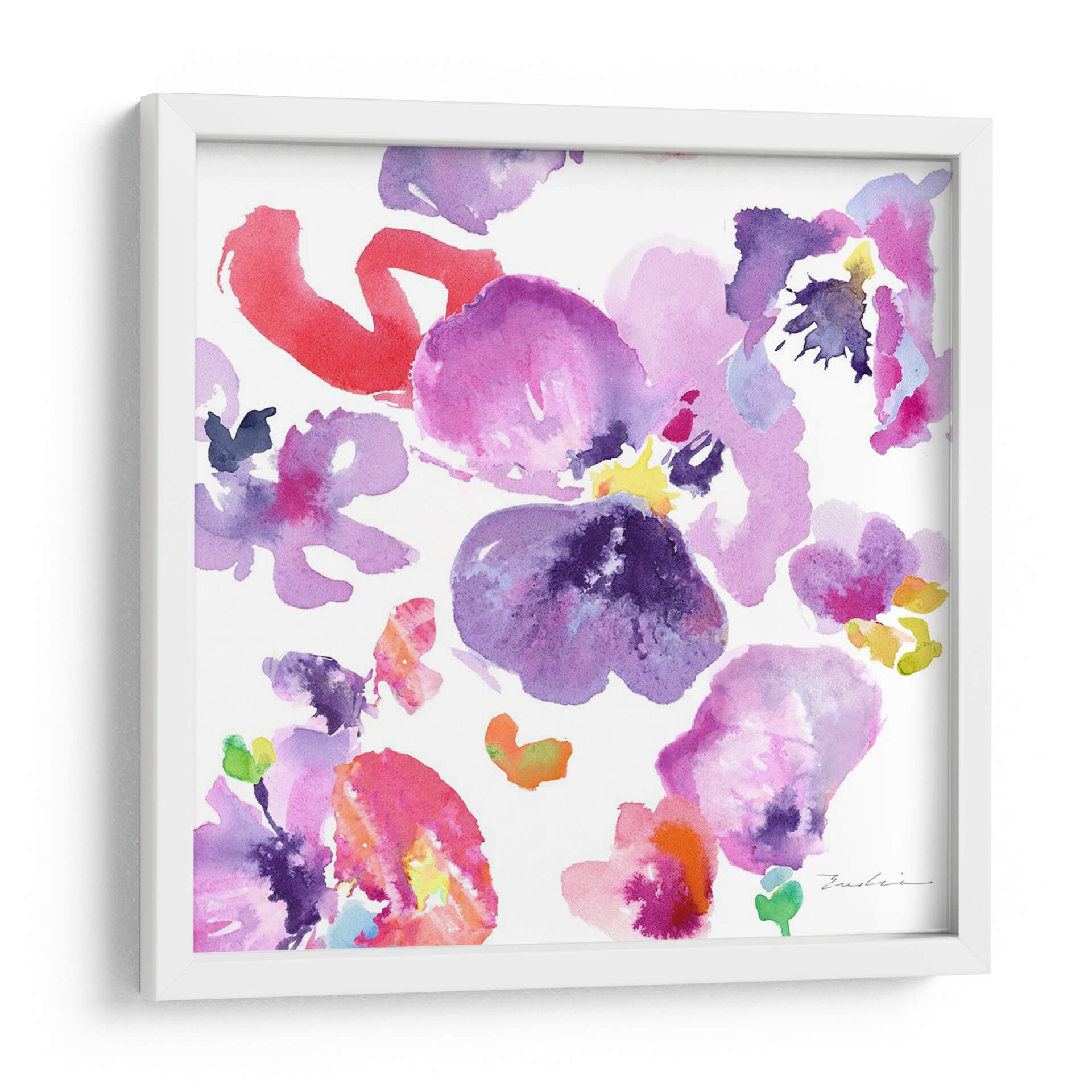 Embellece tu espacio con la delicadeza etérea de "Composición De Flores De Acuarela Iii" de Evelia Designs. Este cautivador cuadro decorativo captura la esencia vibrante y la fragilidad de la naturaleza a través de pinceladas fluidas y una paleta de colores que evoca alegría y serenidad. La obra presenta un arreglo suelto de flores, pintadas con la técnica de acuarela, donde los tonos púrpura, violeta, rosa intenso y toques de rojo y amarillo se entrelazan sobre un fondo blanco luminoso. La composición abstracta y espontánea de las flores permite que cada espectador encuentre su propia interpretación, haciendo de esta pieza un elemento dinámico y personal para la decoración de interiores. Su estilo contemporáneo y romántico la convierte en la elección perfecta para añadir un toque de color y sofisticación a cualquier habitación, desde un dormitorio tranquilo hasta una sala de estar moderna o un estudio creativo. Transforma tu hogar u oficina en una galería personal con esta obra de arte única que irradia frescura y vitalidad, invitando a la contemplación y al disfrute de la belleza floral.