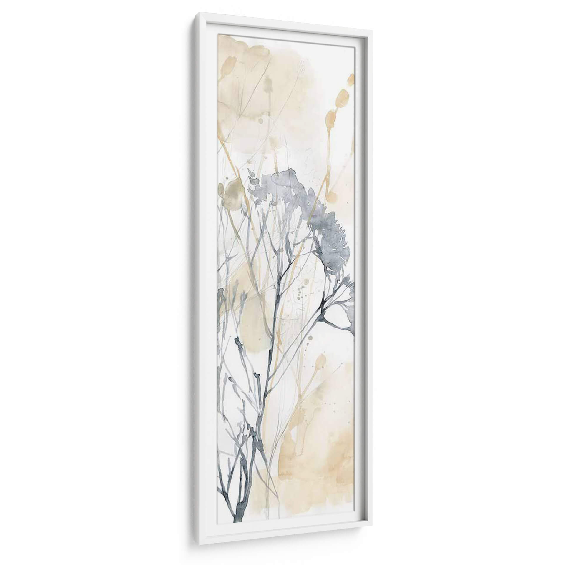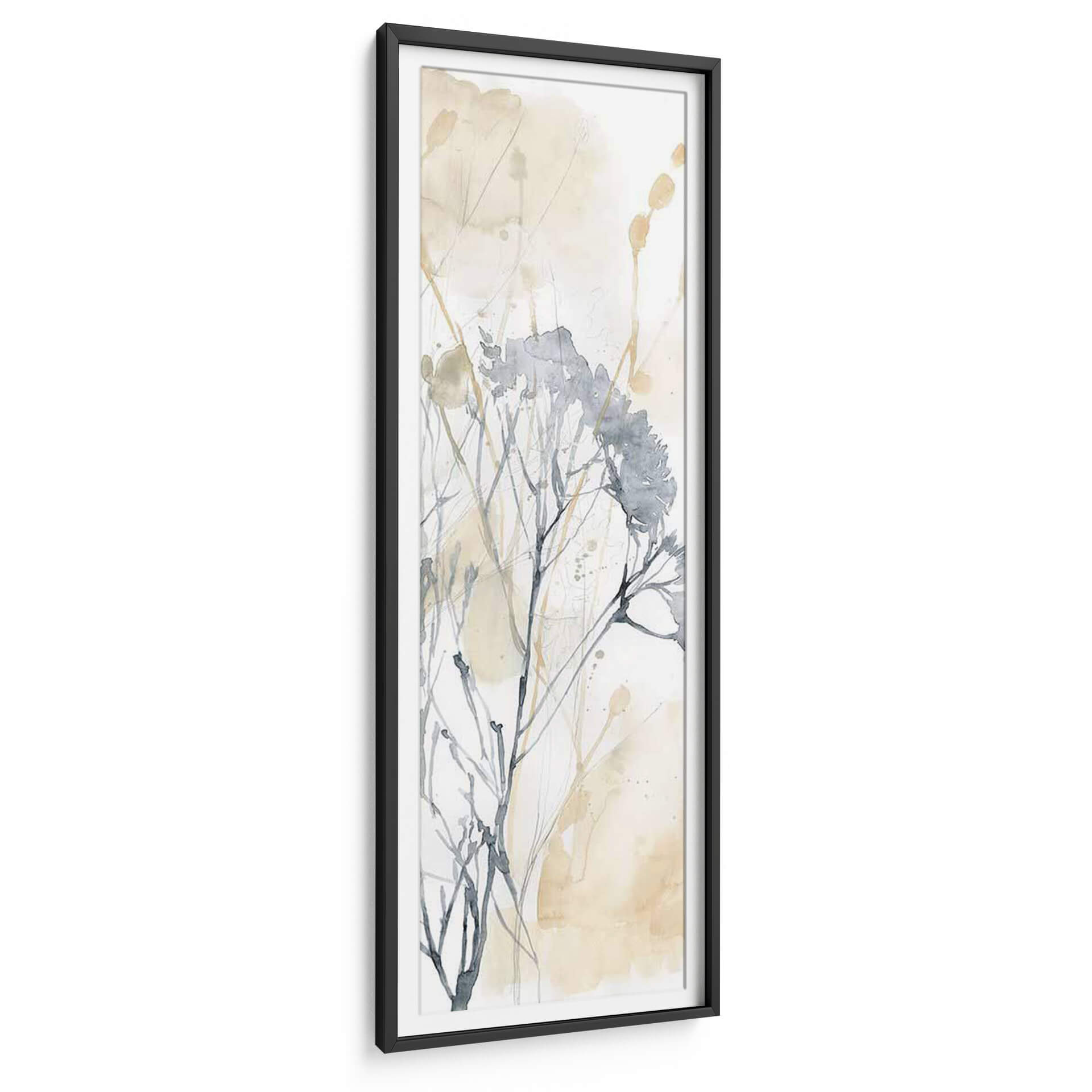 Sumérgete en la delicadeza etérea de "Contorno De Línea De Flores Silvestre Ii", una obra de arte que captura la esencia sutil de la naturaleza con un trazo exquisito. Este cuadro decorativo, creado por Jennifer Goldberger, presenta una composición vertical que evoca la serenidad de un jardín botánico al amanecer. Las líneas finas y fluidas de las flores silvestres se entrelazan con manchas de acuarela en tonos tierra y grises suaves, creando una atmósfera de calma y contemplación. La paleta de colores, dominada por beiges cremosos, toques de ocre y azules cenizos, aporta una sensación de ligereza y sofisticación, perfecta para añadir un toque de elegancia natural a cualquier espacio. Su estilo abstracto y minimalista permite una integración versátil en decoraciones contemporáneas, escandinavas o bohemias. Ideal para un dormitorio que busca tranquilidad, un salón que anhela serenidad o un pasillo que necesita un toque de distinción artística. Este cuadro decorativo no es solo una pieza de arte, sino una invitación a la paz interior y a la apreciación de la belleza efímera. Añade esta pieza única a tu colección y transforma tu hogar en un santuario de estilo y armonía.