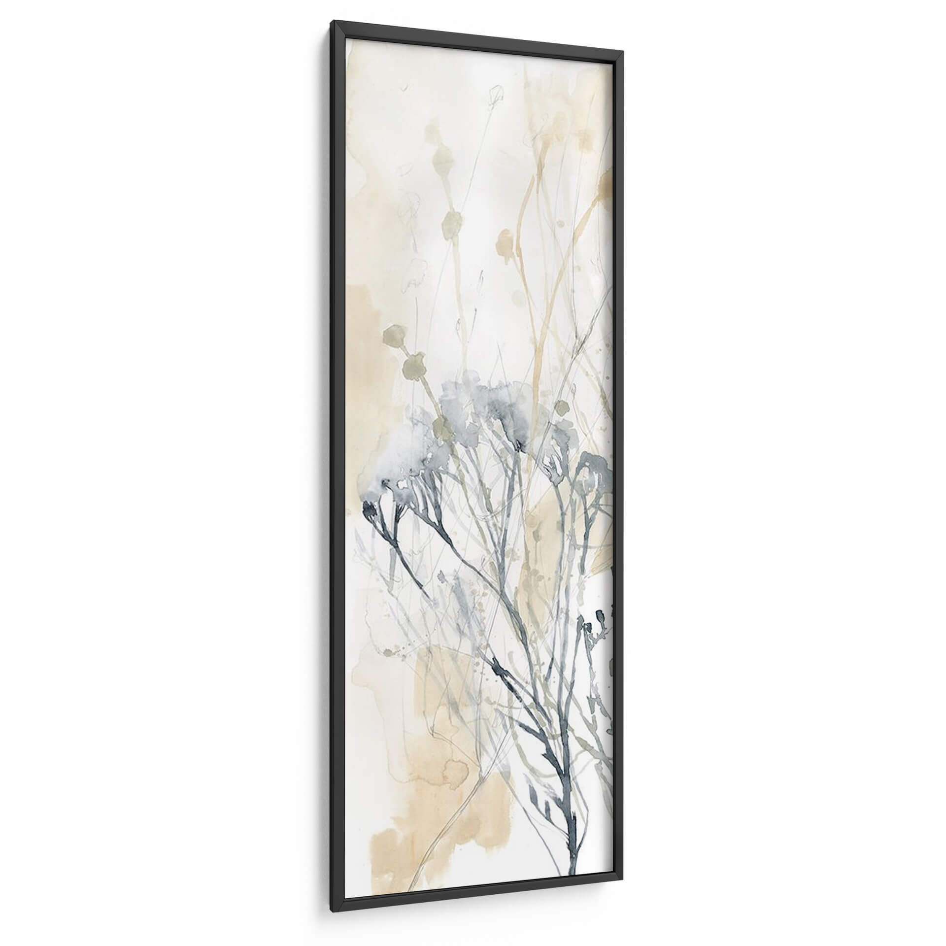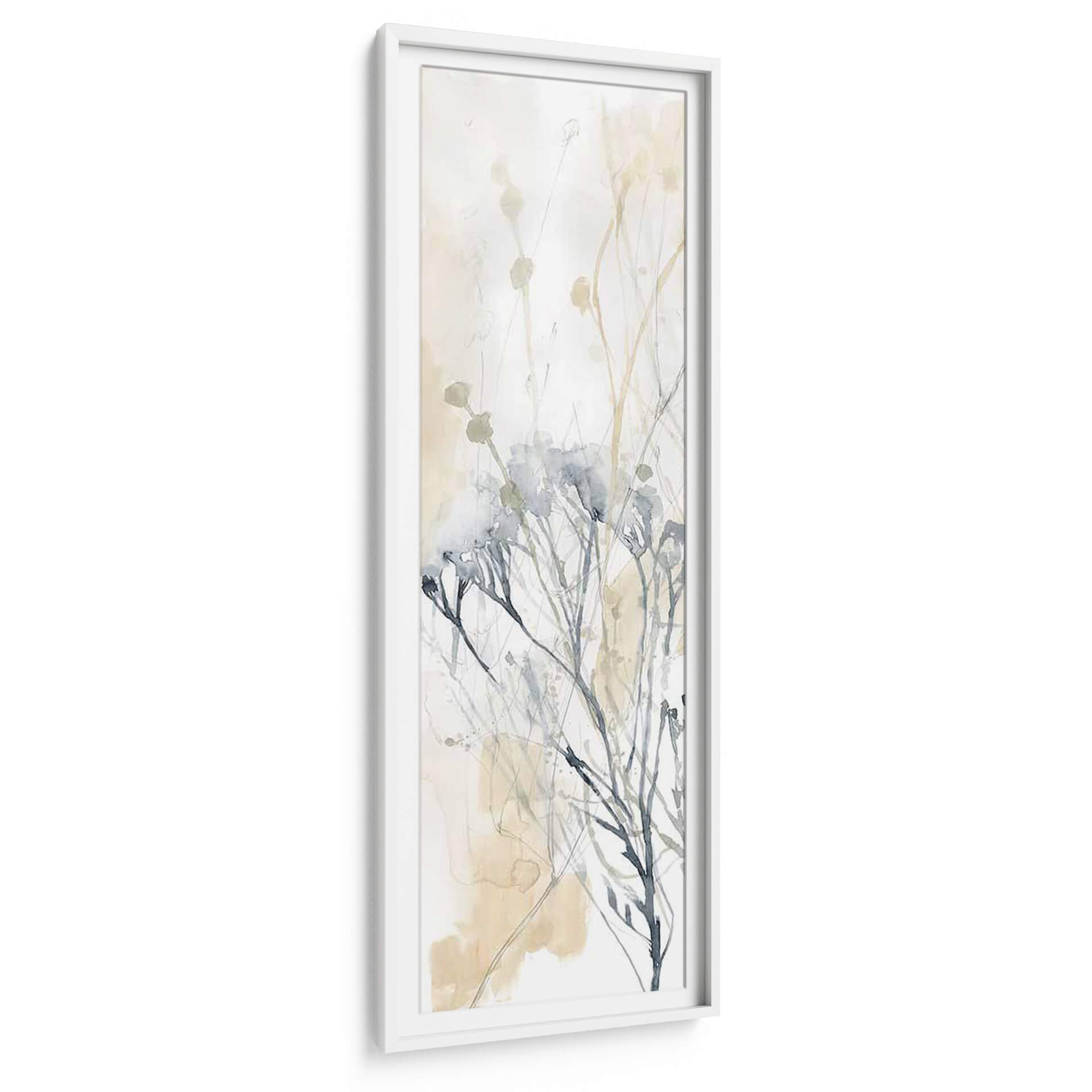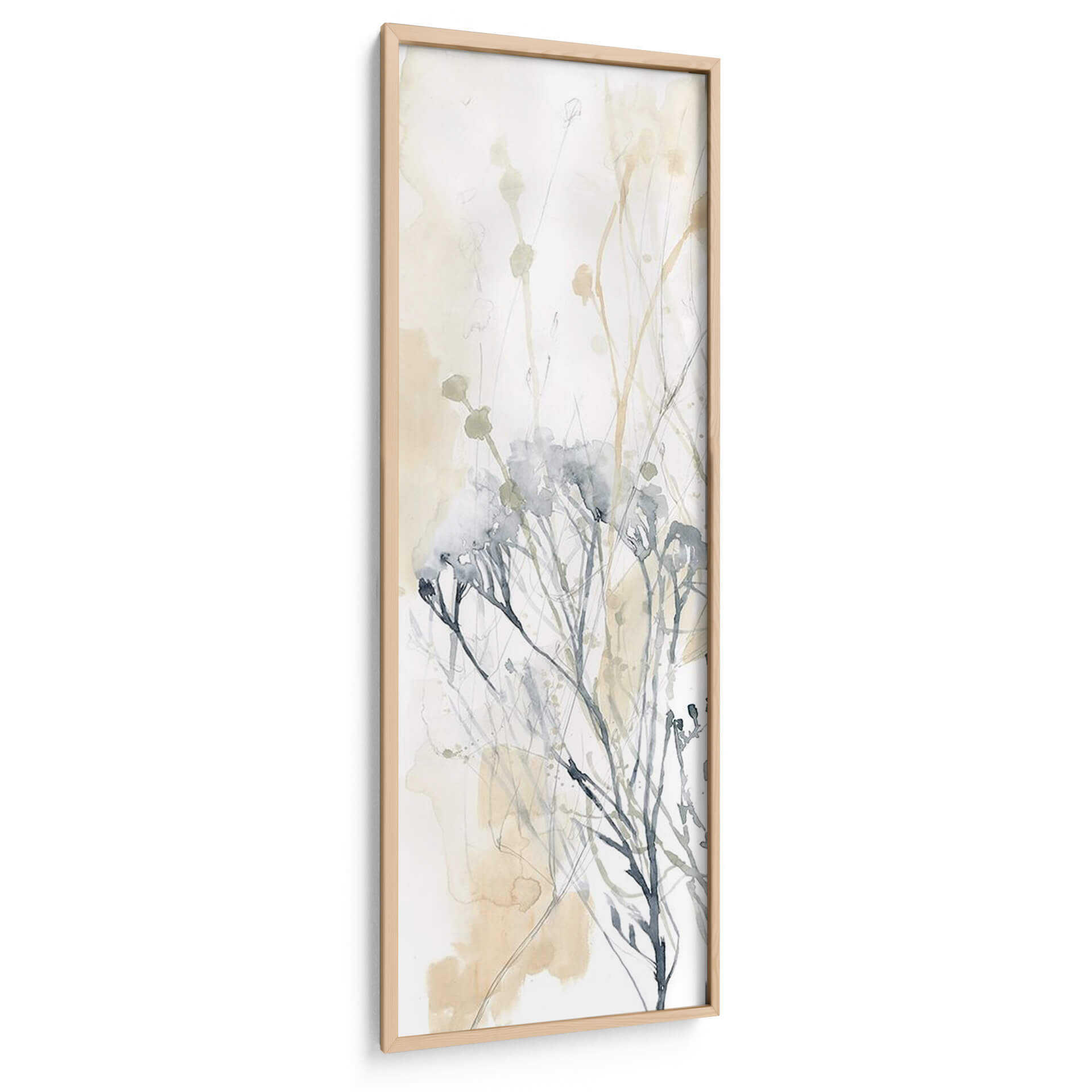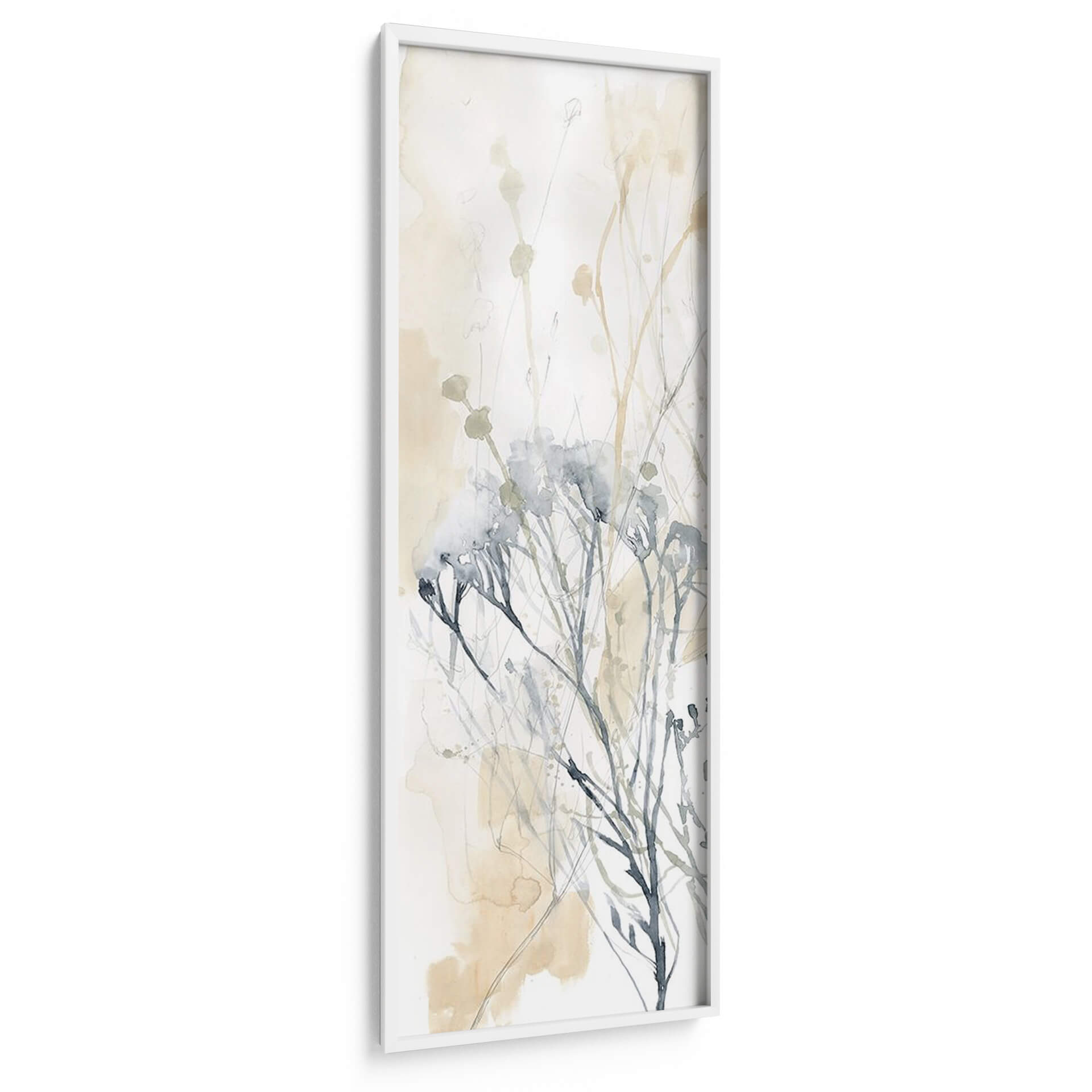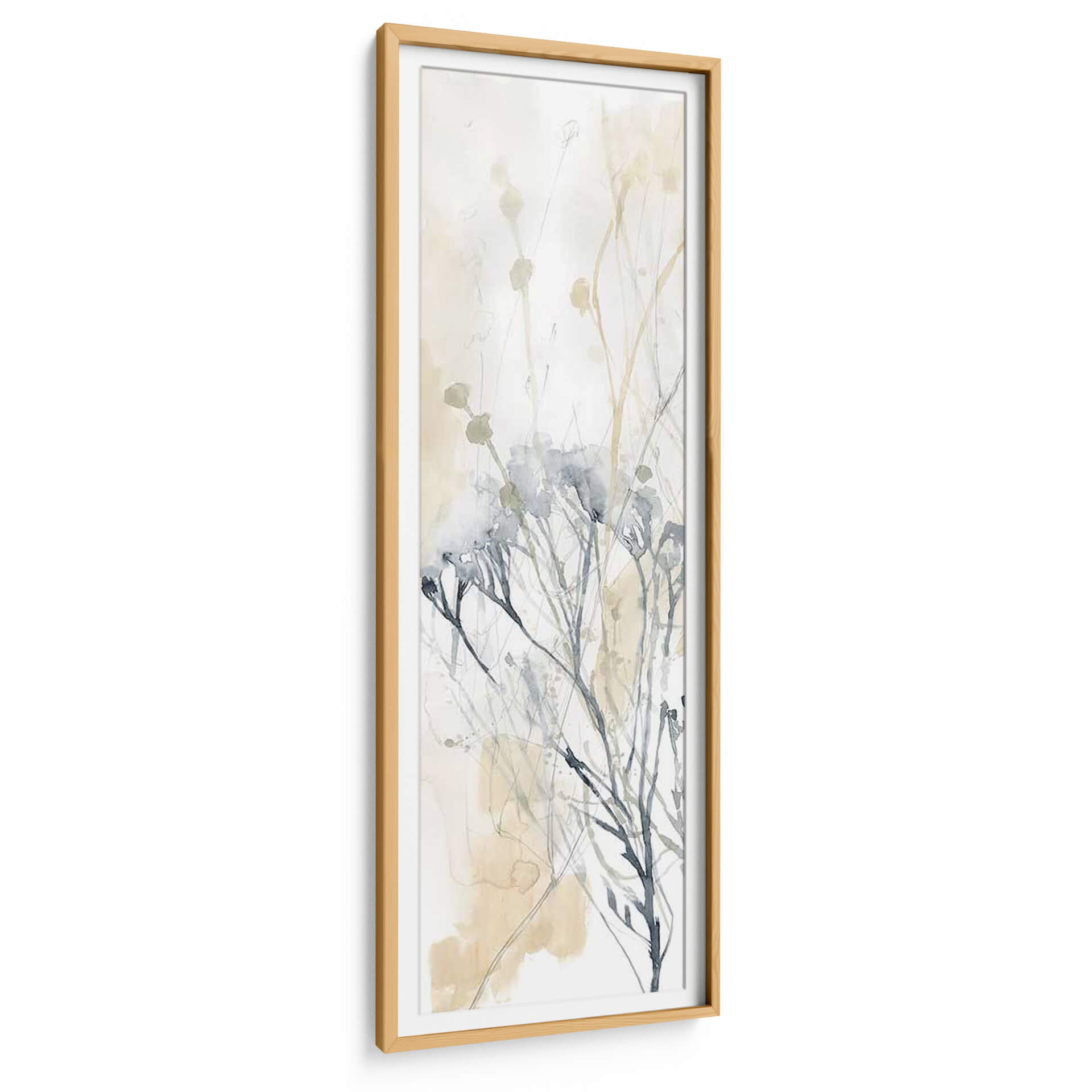 Sumérgete en la delicadeza y el encanto sutil de "Contorno Lineal Wildflower I", una obra de arte que captura la esencia etérea de la naturaleza con un toque contemporáneo. Jennifer Goldberger nos presenta una composición que evoca la fragilidad de las flores silvestres a través de trazos lineales finos y una paleta de colores suaves y terrosos, dominada por tonos arena, blanco roto y toques de azul grisáceo. La técnica de acuarela, o su imitación, crea manchas y veladuras que añaden profundidad y movimiento a la pieza, simulando la atmósfera de un día brumoso o el amanecer en un campo. Cada línea parece bailar sobre el fondo, sugiriendo el crecimiento orgánico y la belleza intrínseca de la flora. Este cuadro decorativo es perfecto para quienes buscan infundir serenidad y un aire de sofisticación natural en sus espacios. Su estilo minimalista y orgánico lo hace ideal para salones modernos, dormitorios o incluso oficinas, aportando un punto focal de calma y elegancia sin abrumar. Imagina cómo este cuadro podría transformar tu hogar, aportando esa conexión con la naturaleza que tanto anhelamos en nuestros refugios urbanos. "Contorno Lineal Wildflower I" no es solo una pieza decorativa, es una invitación a la contemplación y a la apreciación de la belleza en su forma más pura y delicada.