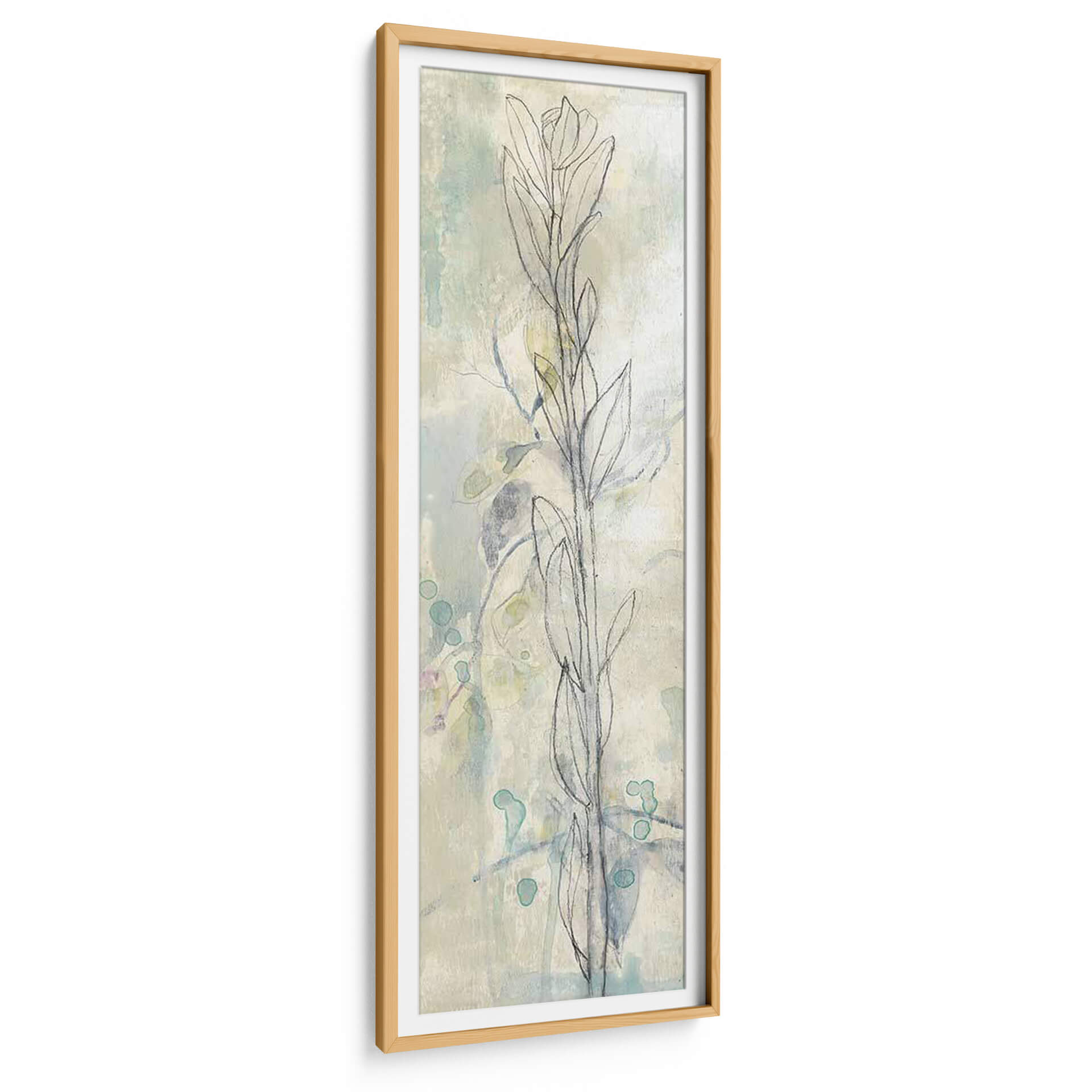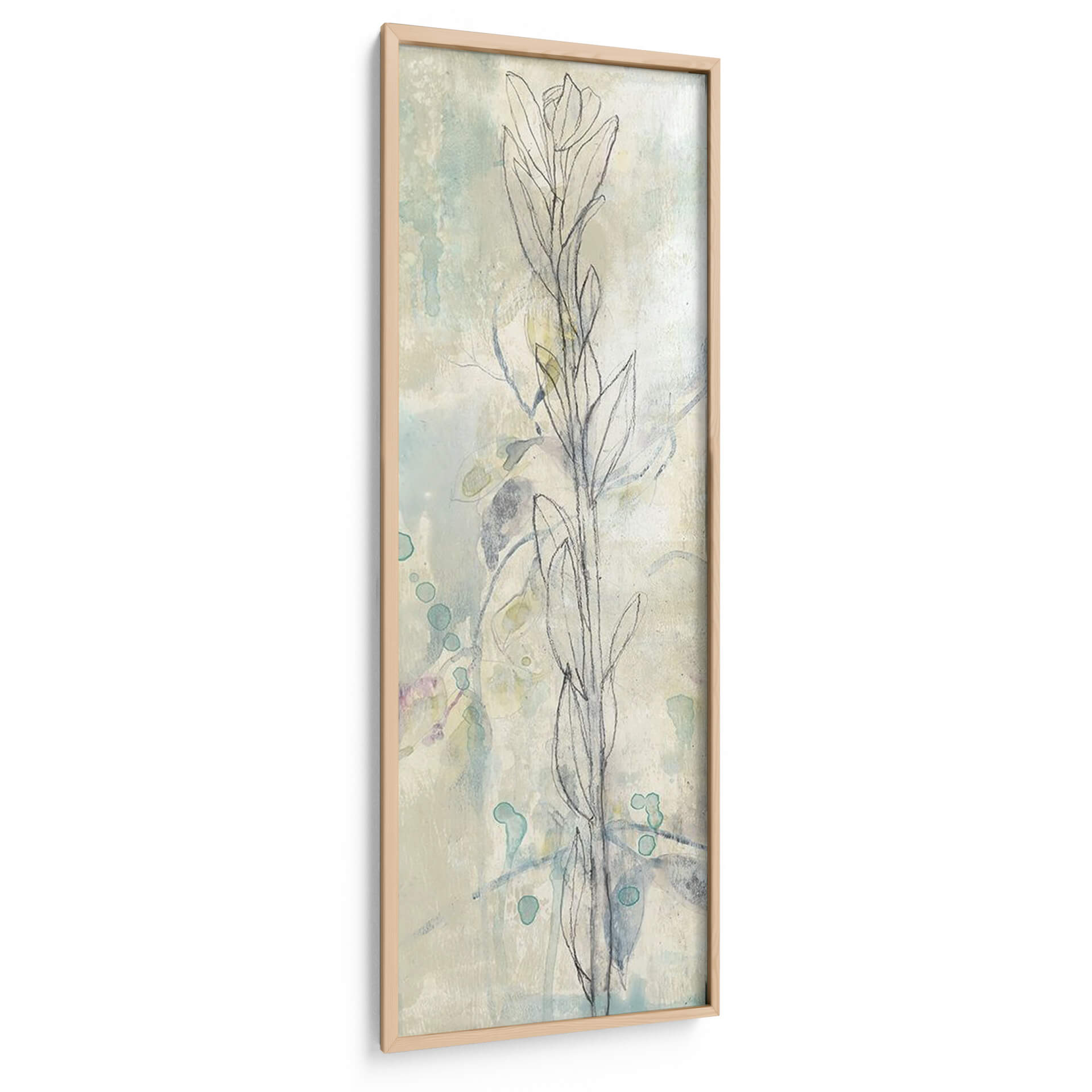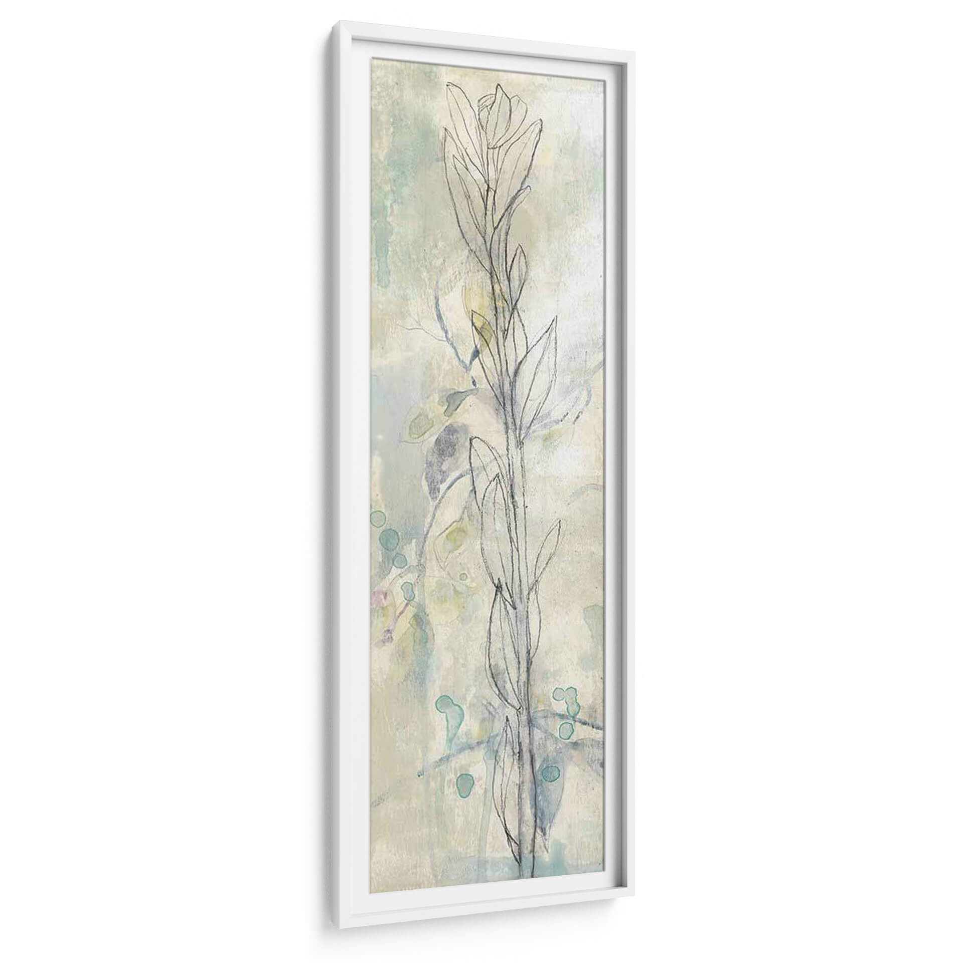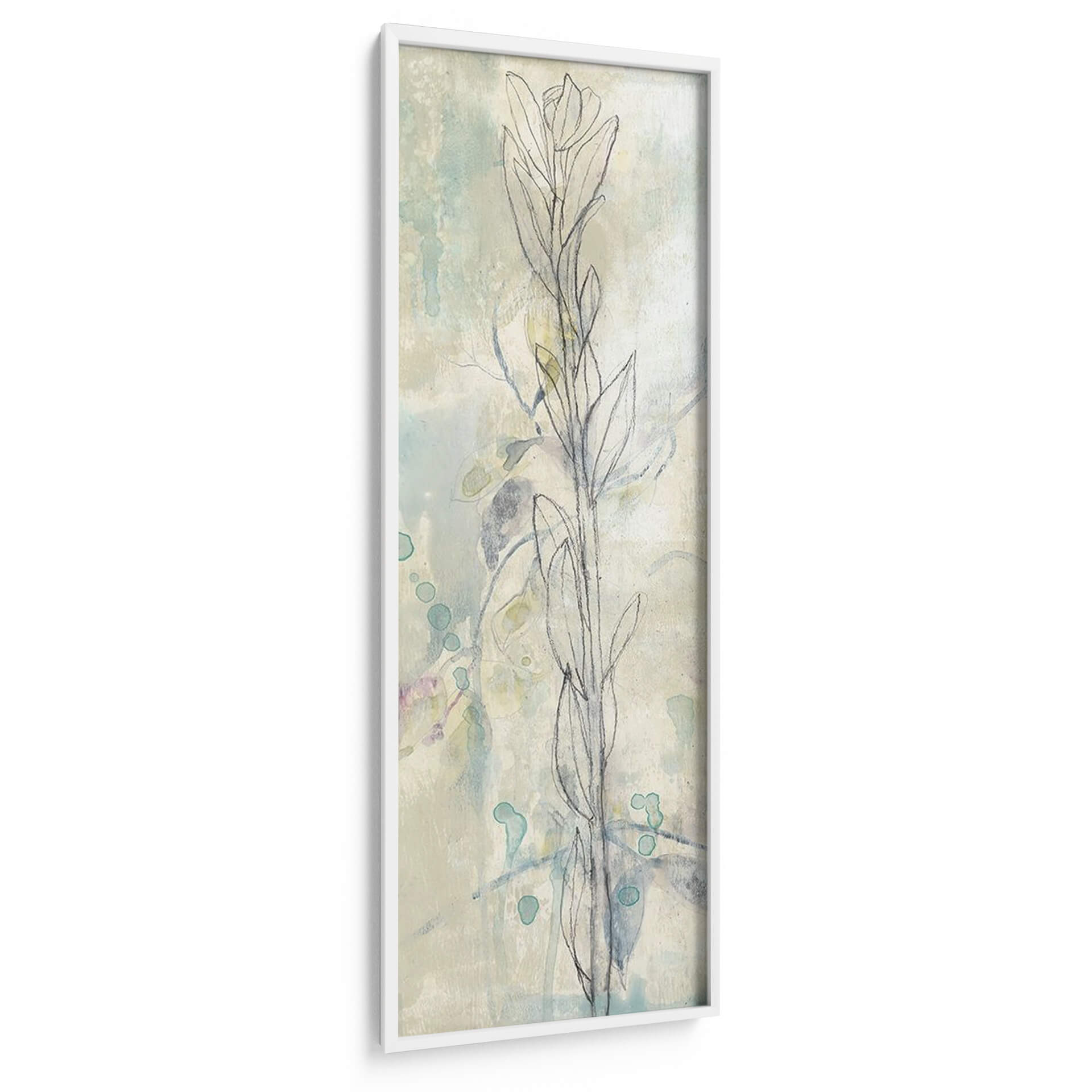 Sumérgete en la delicadeza y el encanto sereno de "Contorno Stem I", una cautivadora obra de arte de Jennifer Goldberger. Este cuadro decorativo presenta un delicado contorno de tallo floral sobre un fondo texturizado que evoca la sutileza de las acuarelas y las capas de pintura. La paleta de colores, dominada por tonos suaves de aguamarina, crema y toques sutiles de lavanda y verde pálido, crea una atmósfera de tranquilidad y ligereza, ideal para cualquier espacio que busque un toque de naturaleza etérea. Las formas orgánicas y las pinceladas fluidas invitan a la contemplación, haciendo de esta pieza una adición perfecta para salas de estar, dormitorios o estudios que anhelan una conexión con la calma y la belleza natural. Su estilo abstracto-botánico moderno lo convierte en un punto focal versátil, capaz de complementar una variedad de decoraciones interiores, desde las más minimalistas hasta las bohemias. "Contorno Stem I" no es solo una imagen, es una invitación a la paz y la elegancia, transformando cualquier pared en una ventana a un jardín de serenidad y arte contemporáneo.