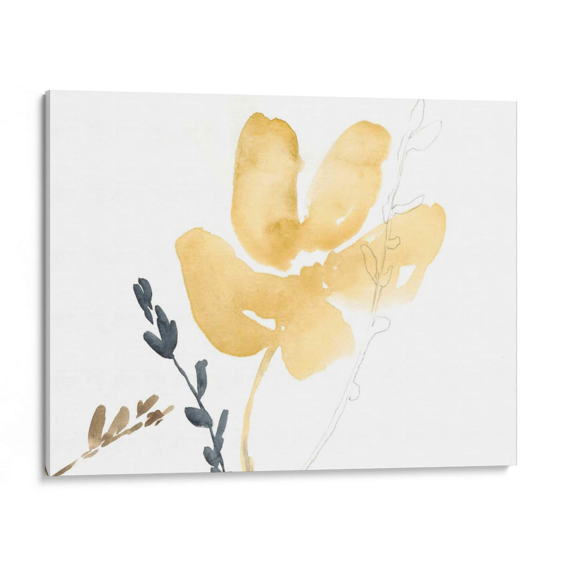 Sumérgete en la serenidad y elegancia de "Contornos De Rama Iii", una obra de arte contemporáneo que captura la delicadeza de la naturaleza. Con trazos fluidos y una paleta de colores suaves, esta pieza evoca calma y sofisticación. La técnica de acuarela, con sus translúcidos tonos ocres y detalles en gris y carbón, crea una atmósfera etérea que invita a la contemplación. Los contornos sutiles de las ramas y la flor principal, junto con las pinceladas sueltas, le otorgan un aire de espontaneidad y modernidad. "Contornos De Rama Iii" es ideal para espacios que buscan un toque de naturaleza refinada, como dormitorios, salas de estar o estudios. Su composición minimalista y su armonía cromática lo convierten en un punto focal sutil pero impactante, capaz de transformar cualquier ambiente en un oasis de paz y estilo. Esta obra es perfecta para quienes aprecian el arte abstracto con inspiración botánica y desean añadir una pieza única que transmita tranquilidad y buen gusto.