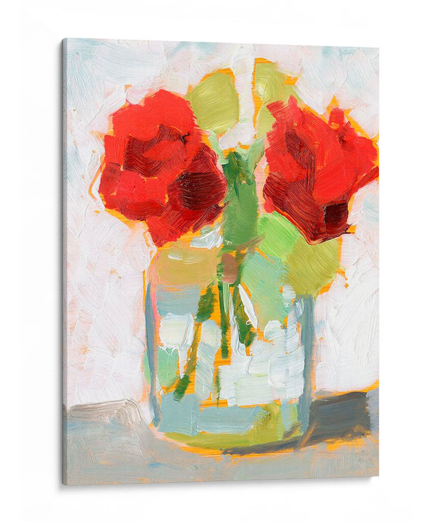 Sumérgete en la vibrante expresión de "Cortar Roses II" de Ethan Harper, una obra de arte contemporáneo que captura la esencia de la belleza floral con un toque moderno y audaz. Esta pieza se caracteriza por su uso magistral del color y la pincelada impasto, creando una textura rica y una profundidad visual cautivadora. Los intensos tonos rojos de las rosas contrastan armoniosamente con los verdes frescos de los tallos y las hojas, todo ello enmarcado por un jarrón estilizado que juega con tonos azules y grises, añadiendo un matiz contemporáneo. El fondo blanco y texturizado proporciona el escenario perfecto para que la composición floral resalte, invitando a la contemplación y añadiendo un punto de interés visual a cualquier espacio. Ideal para salones modernos, comedores o estudios, este cuadro decorativo aporta una dosis de energía y sofisticación. Su estilo impresionista contemporáneo permite que se integre a la perfección en diversas decoraciones, desde las más minimalistas hasta las más eclécticas, ofreciendo una experiencia estética única y refrescante que evoca la alegría y la vitalidad de la naturaleza en su máxima expresión.
