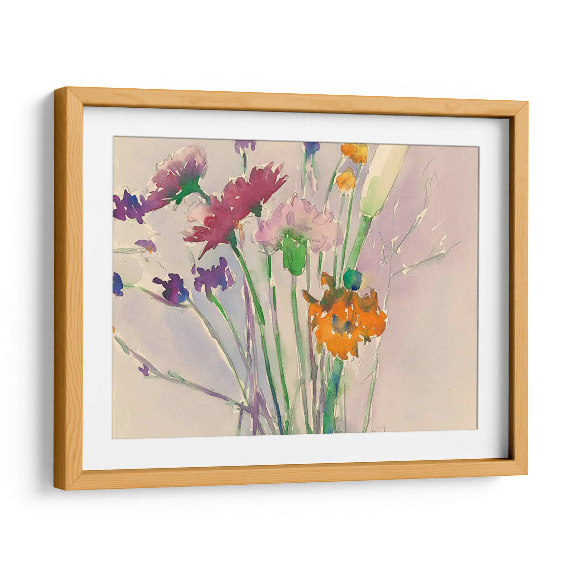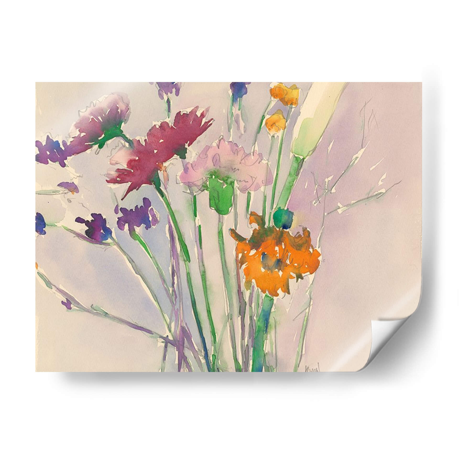 Embellece tu hogar con el encantador cuadro decorativo "Cortes De Flores Silvestres", una obra maestra del reconocido artista Samuel Dixon. Esta pieza captura la delicadeza y la belleza efímera de la naturaleza a través de una composición acuarela vibrante y etérea. Las pinceladas sueltas y fluidas dan vida a un ramo de flores silvestres en tonos púrpuras, rosas, naranjas y verdes, evocando una sensación de frescura y vitalidad. El fondo suavemente difuminado en tonos lavanda y crema realza la luminosidad de las flores, creando un ambiente de serenidad y calma. Perfecta para añadir un toque de color y sofisticación a cualquier habitación, este cuadro decorativo es ideal para salones, dormitorios, comedores o incluso oficinas, aportando una atmósfera de tranquilidad y belleza natural. Su estilo artístico, que fusiona la delicadeza de la acuarela con un toque contemporáneo, lo convierte en una adición versátil a diversas decoraciones, desde la clásica hasta la moderna. Descubre la magia de las flores silvestres capturada en un lienzo que invita a la contemplación y al disfrute de la belleza artística. Una elección exquisita para quienes buscan arte que inspire paz y alegría.