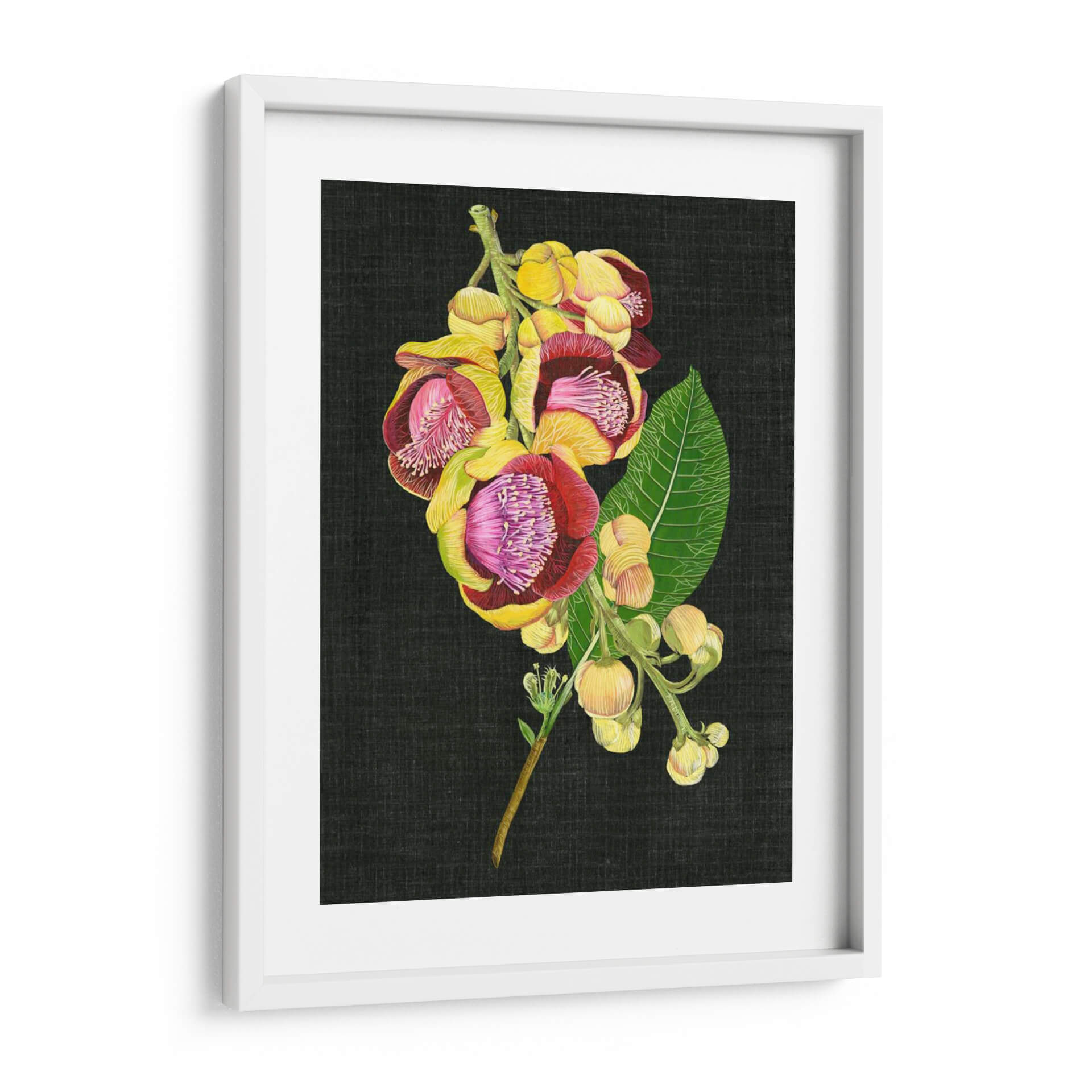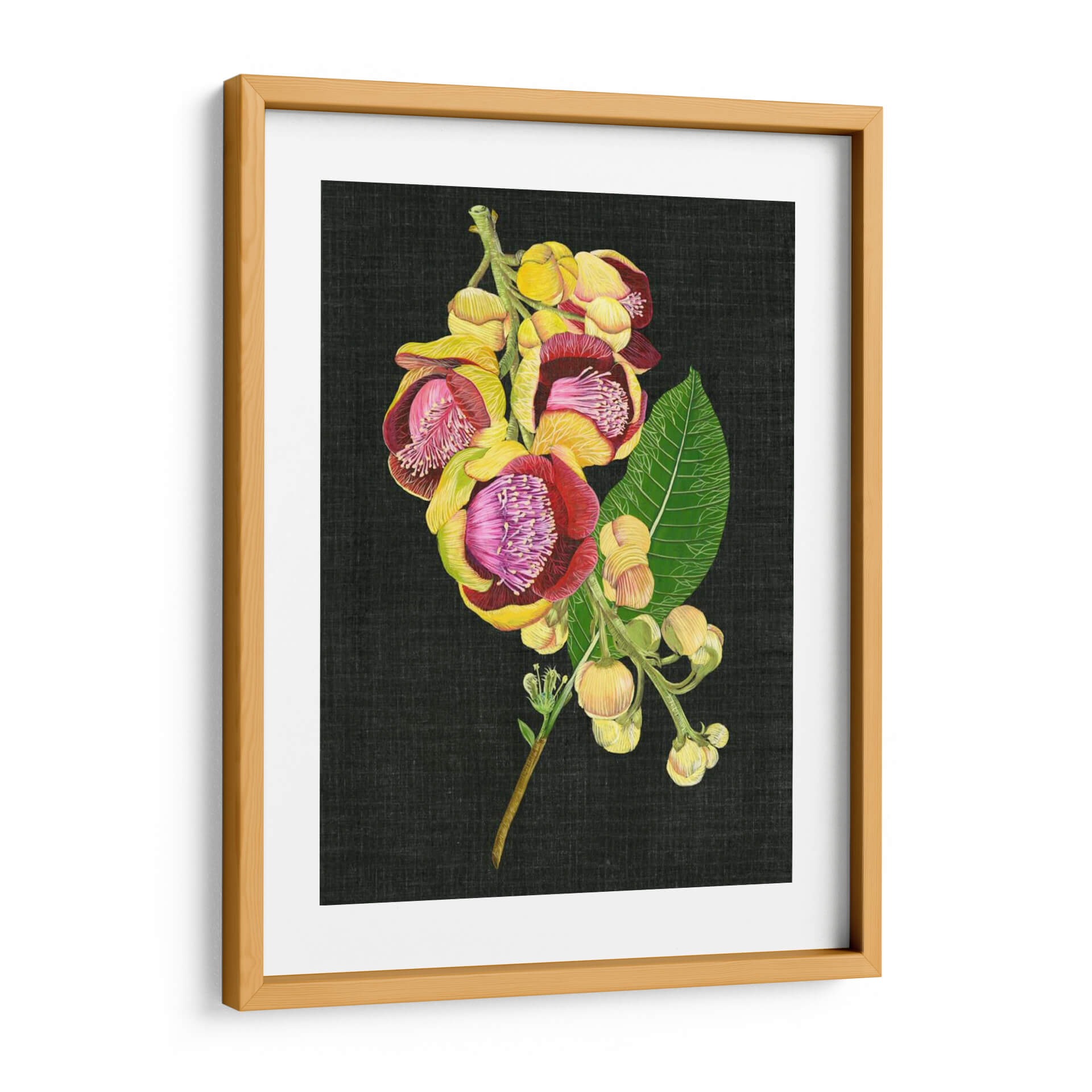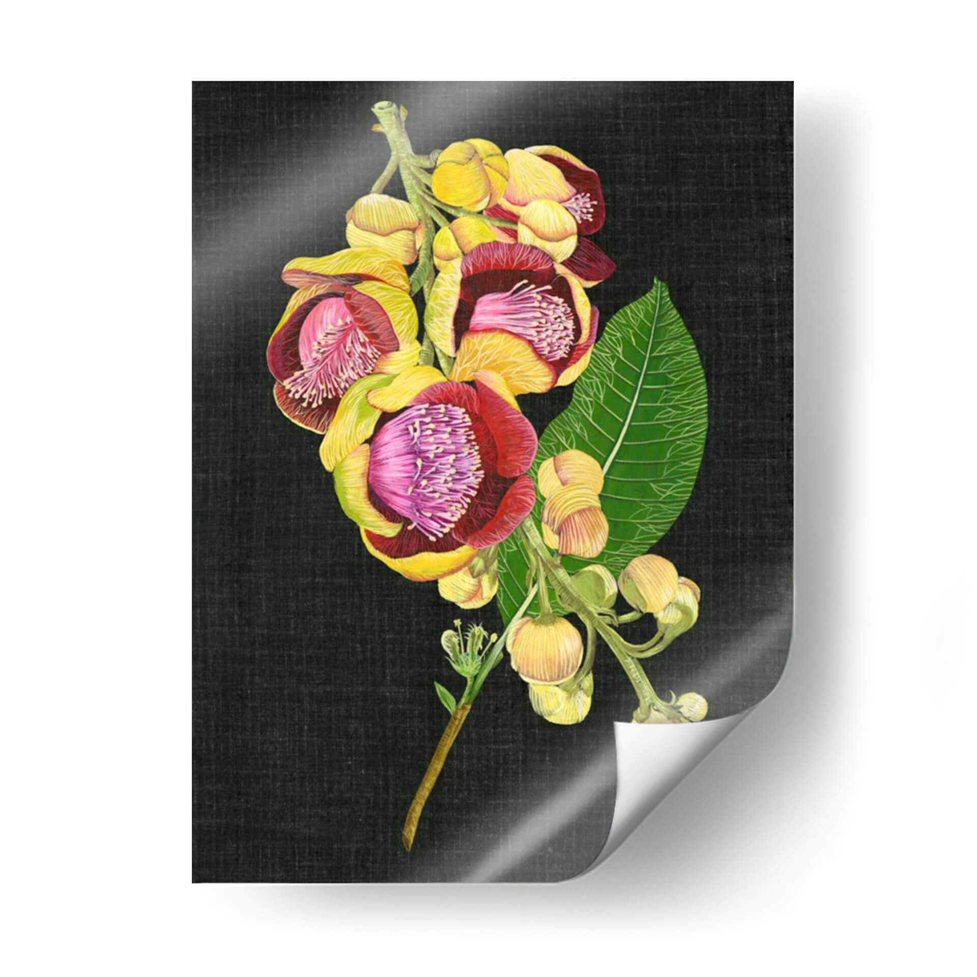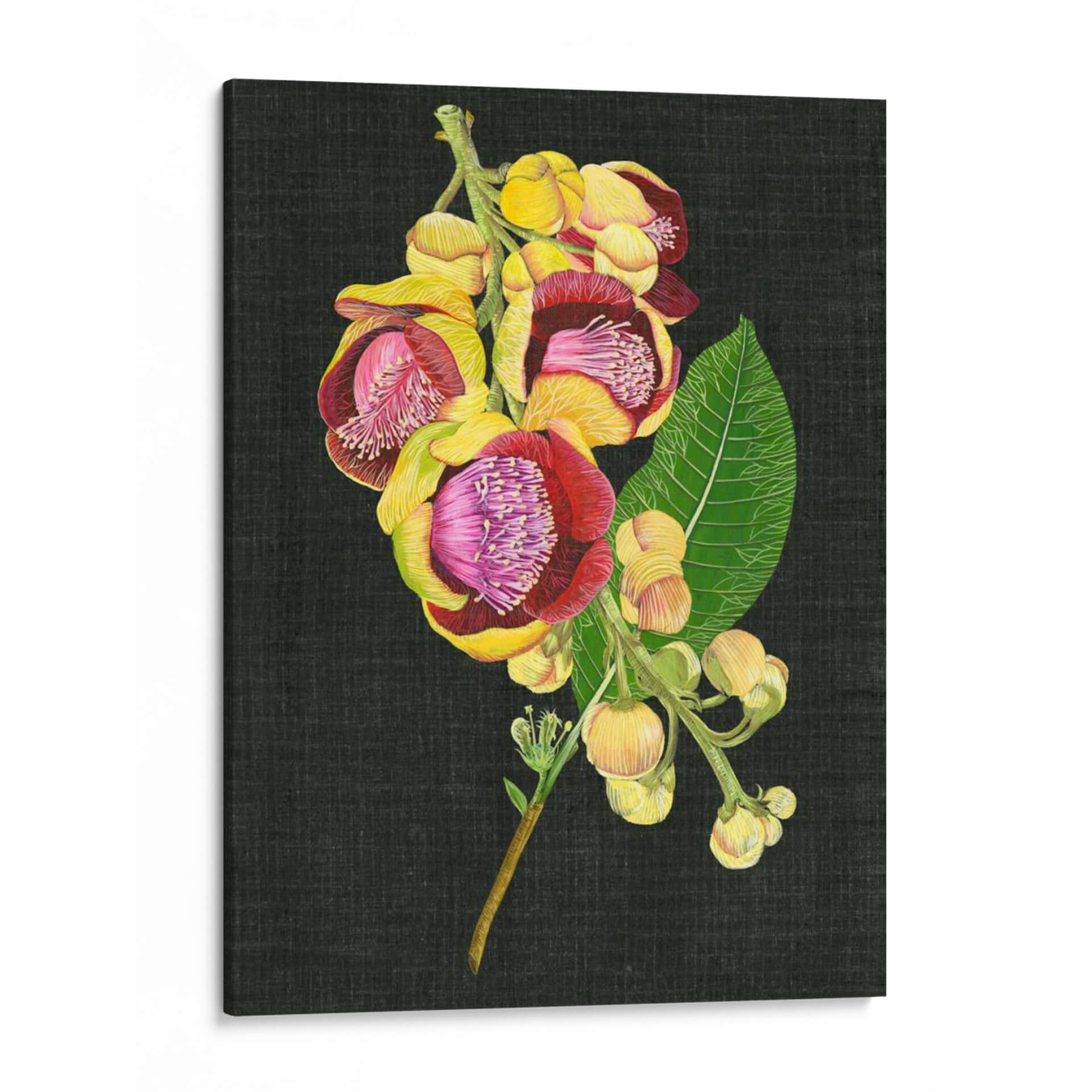 Sumérgete en la exuberante belleza botánica con "Coutaupita Guianensis I", una obra de arte de Melissa Wang que captura la delicadeza y el vibrante color de una flor exótica. Esta pieza presenta un detallado estudio de la flor Cannonball, desplegando sus pétalos en tonos cálidos de amarillo y rojo intenso, contrastando con el vibrante rosa púrpura de sus estambres. Un toque de verde, aportado por una hoja de contornos definidos, añade profundidad y realismo a la composición. El fondo oscuro y texturizado enmarca la floración, permitiendo que cada matiz y detalle resalten con una claridad asombrosa. El estilo, que combina precisión botánica con una sensibilidad artística contemporánea, evoca una sensación de asombro y aprecio por las maravillas naturales. "Coutaupita Guianensis I" es una elección exquisita para aquellos que buscan infundir vida y un toque de naturaleza elegante en sus espacios. Ideal para salones, estudios o rincones de lectura donde se desee añadir un elemento de sofisticación natural y color. Este cuadro decorativo es perfecto para realzar la decoración de interiores, aportando un punto focal orgánico y lleno de vida que invita a la contemplación. Una adición de arte botánico que trae la esencia de la selva tropical a tu hogar.