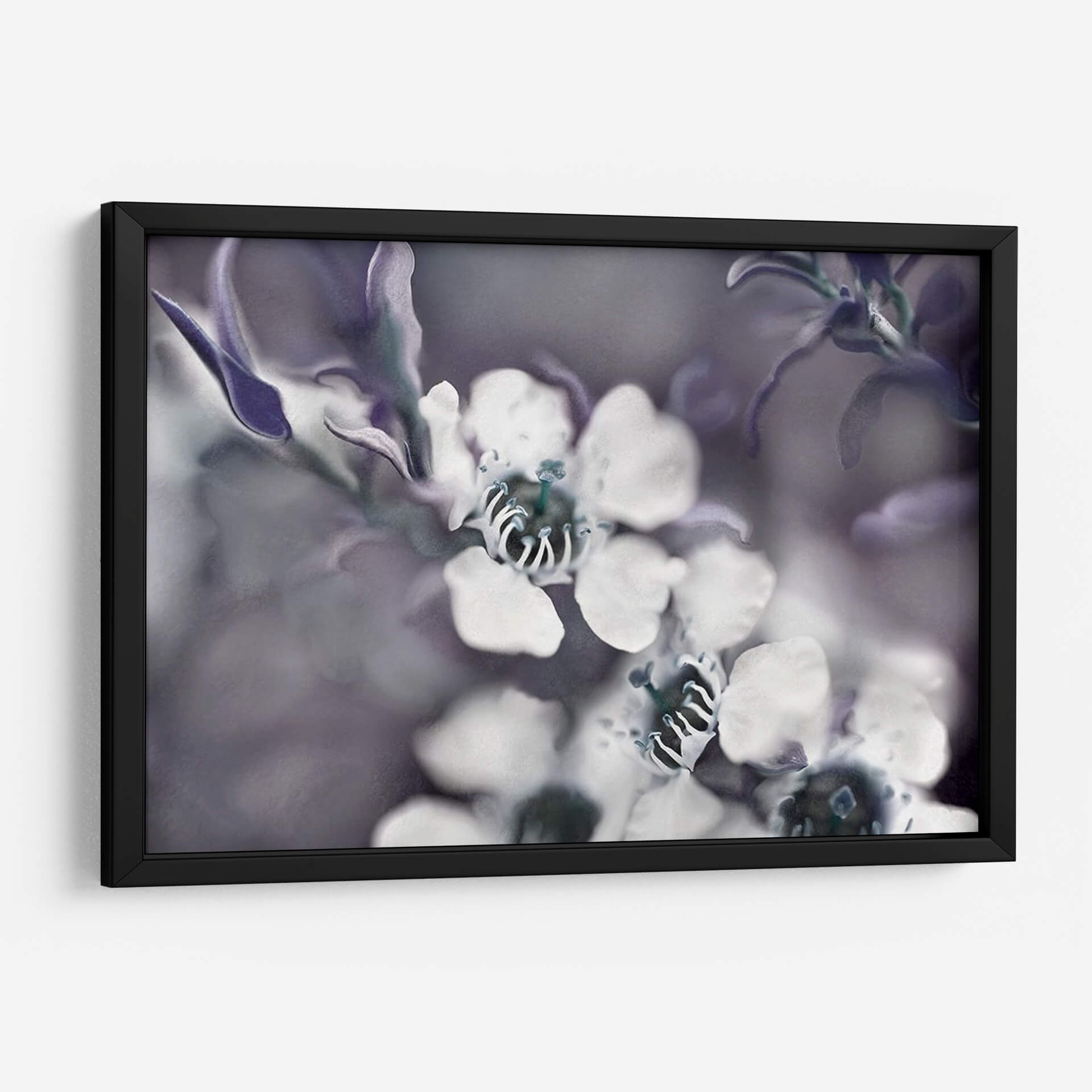 Sumérgete en la delicadeza etérea de "Cuentos de un Encantado Glen III", una obra de arte que captura la belleza efímera de las flores con un enfoque artístico cautivador. La pieza presenta un primer plano de delicadas flores blancas, con pétalos suaves y estambres intrincados que invitan a la contemplación. Los colores predominantes son tonos grises y púrpuras suaves, creando una atmósfera de ensueño y serenidad, casi como si la escena estuviera bañada por la luz de la luna o envuelta en una neblina mística. La técnica utilizada difumina suavemente los bordes, otorgando a la composición un aire impresionista y abstracto, lo que permite que la imaginación del espectador complete los detalles. Este cuadro decorativo es perfecto para añadir un toque de calma y sofisticación a cualquier espacio. Imagina cómo este lienzo aportaría una sensación de paz a tu dormitorio, un rincón de lectura acogedor, o incluso como un elemento de contraste sutil en un estudio u oficina moderna. "Cuentos de un Encantado Glen III" no es solo una imagen, es una invitación a la reflexión y a la apreciación de la belleza sutil de la naturaleza, transformando tu pared en una ventana a un paisaje onírico. Ideal para quienes buscan arte que inspire tranquilidad y eleve la estética de su hogar con piezas únicas y evocadoras.