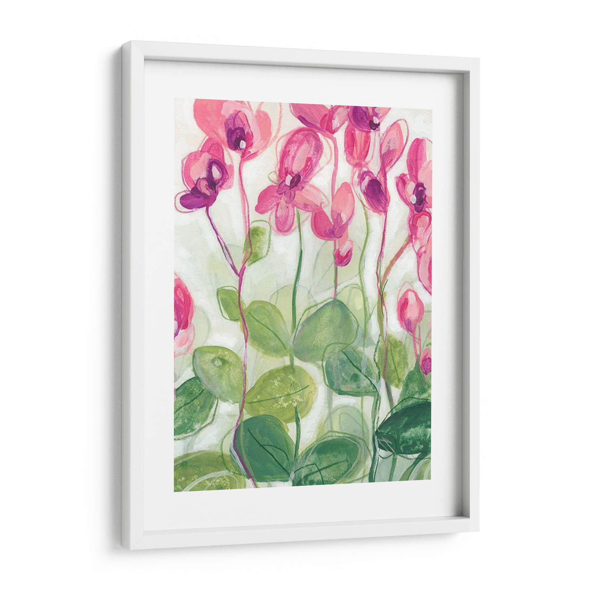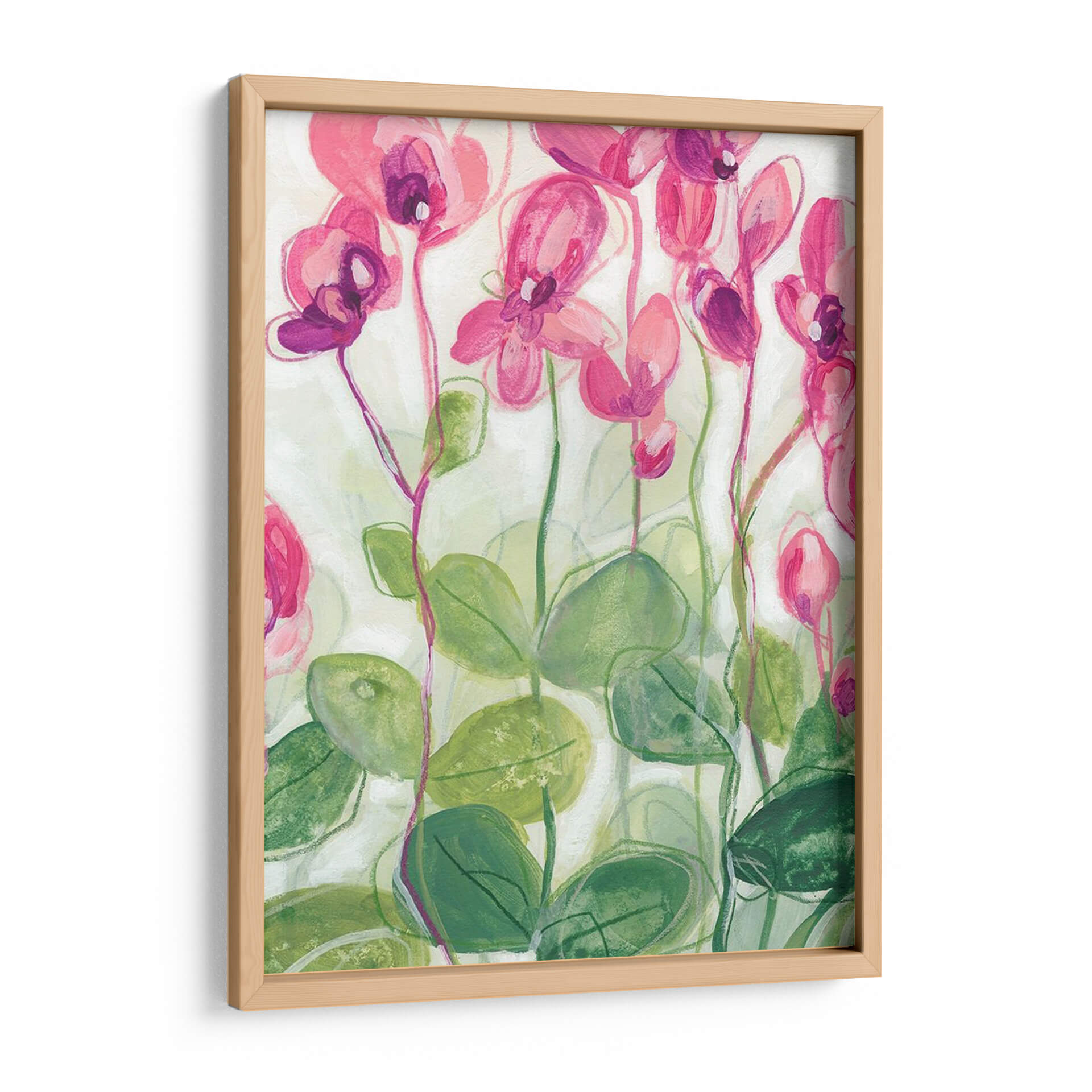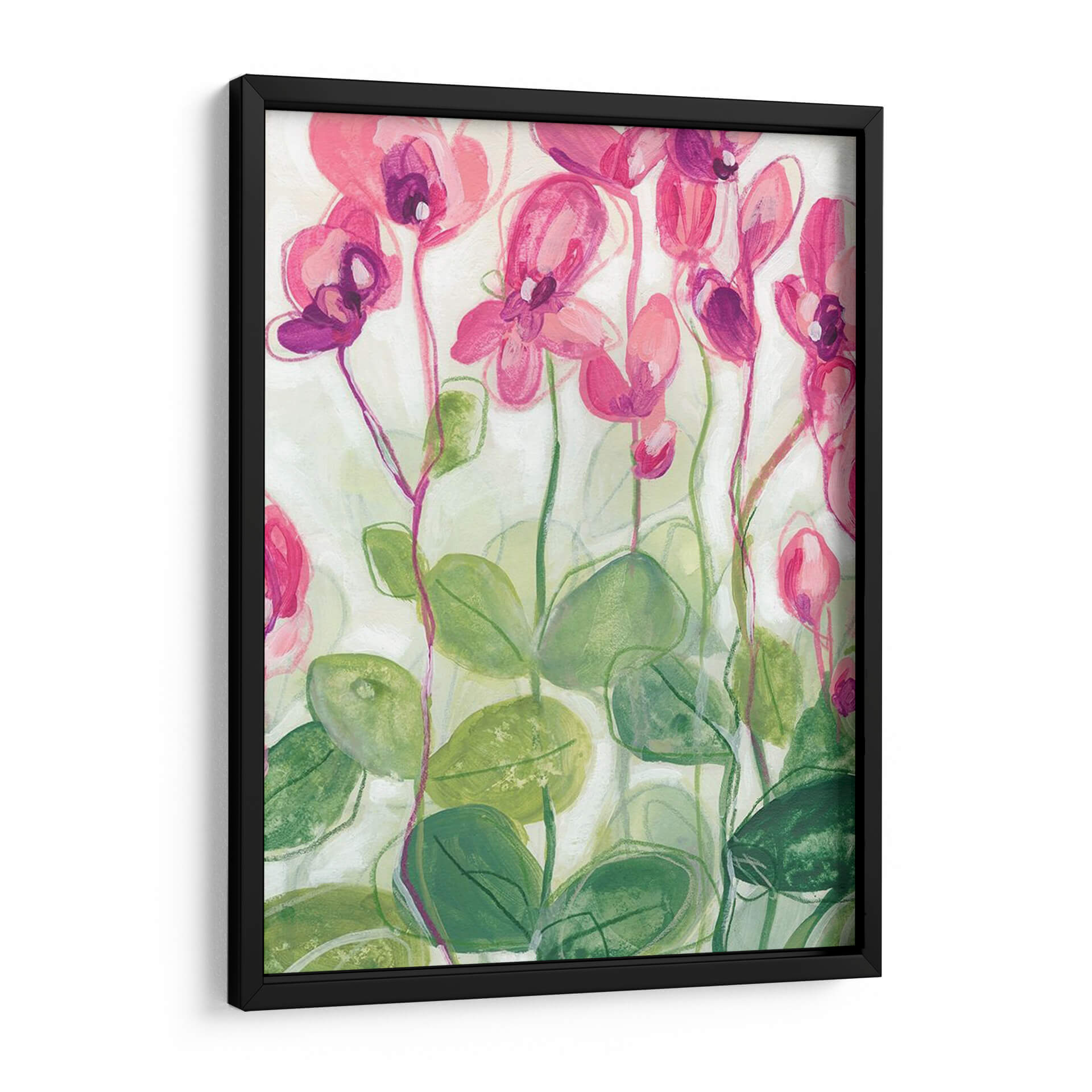 Sumérgete en la delicadeza floral de 'Cyclamen Fantasia II', una obra de arte contemporáneo de June Erica Vess. Este cuadro decorativo captura la efervescencia de los ciclámidos en plena floración con pinceladas vibrantes y un estilo que evoca la frescura de la acuarela. La paleta de colores, dominada por intensos rosas y púrpuras que contrastan con los verdes botánicos y un fondo etéreo en tonos crudos, crea una atmósfera alegre y a la vez serena. La composición vertical, con sus tallos esbeltos y flores que parecen bailar en el lienzo, aporta un dinamismo sutil pero cautivador. Ideal para infundir vida y color en cualquier espacio, desde un salón moderno hasta un rincón de lectura acogedor o una oficina que necesite un toque de inspiración natural. 'Cyclamen Fantasia II' no es solo una pieza decorativa, sino una ventana a la belleza efímera de la naturaleza, capturada con una sensibilidad artística única. Añade un toque de fantasía y elegancia a tu hogar con este exquisito cuadro de flores.