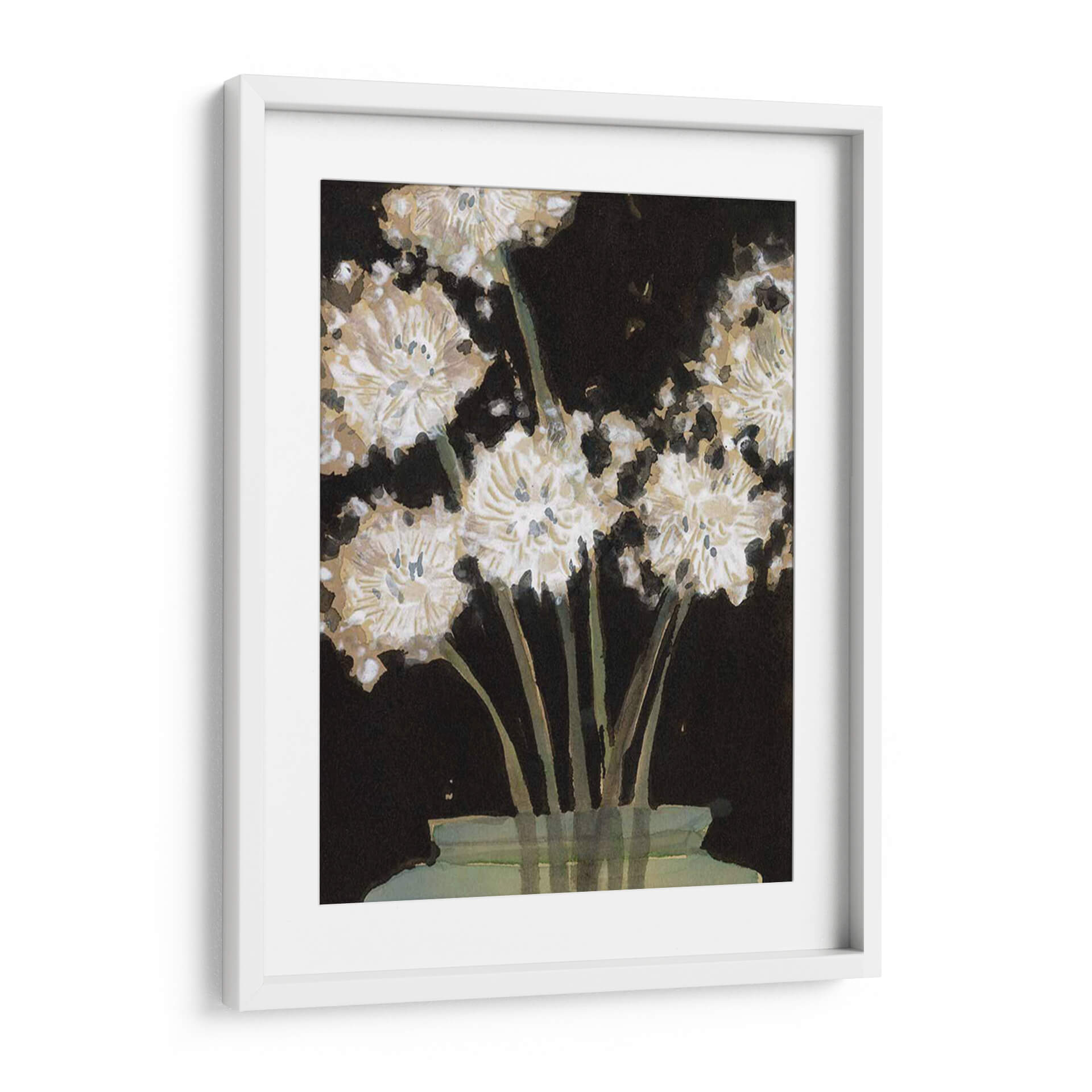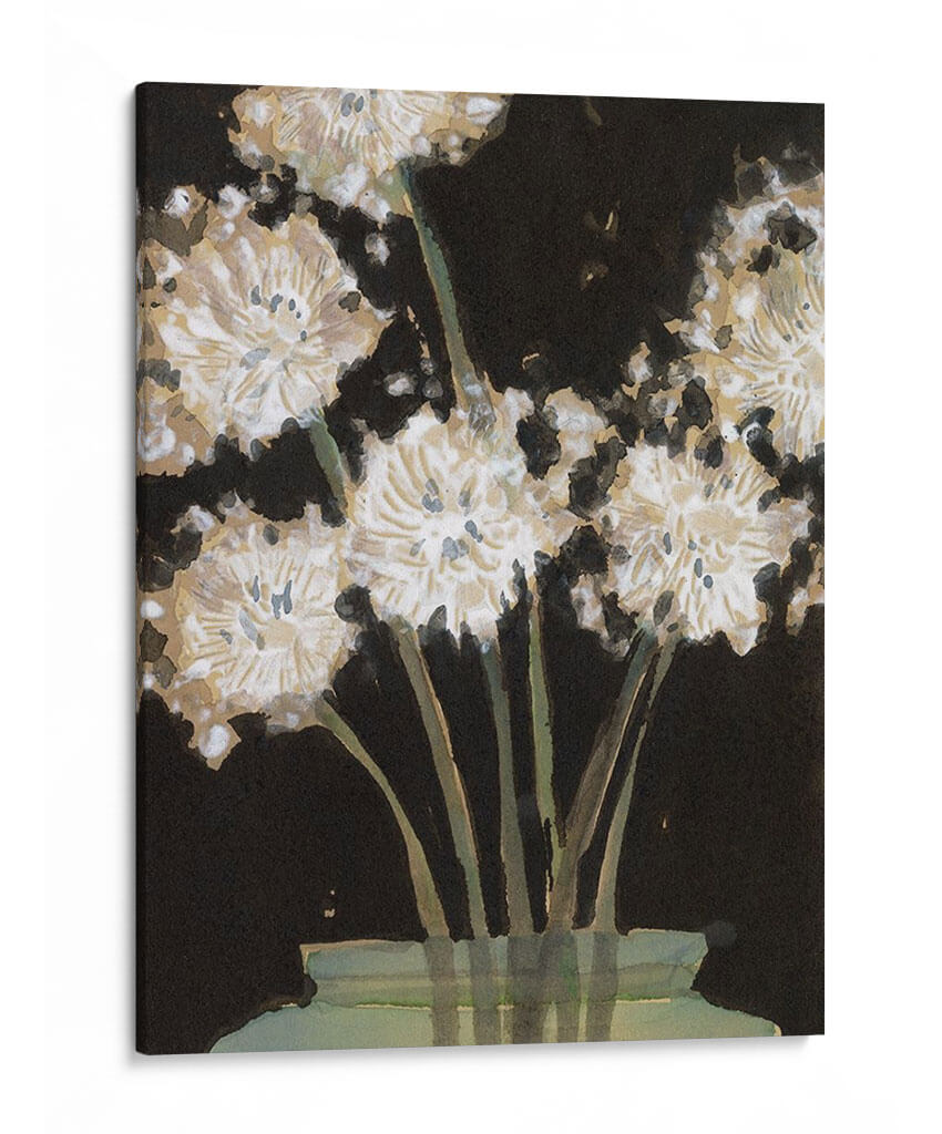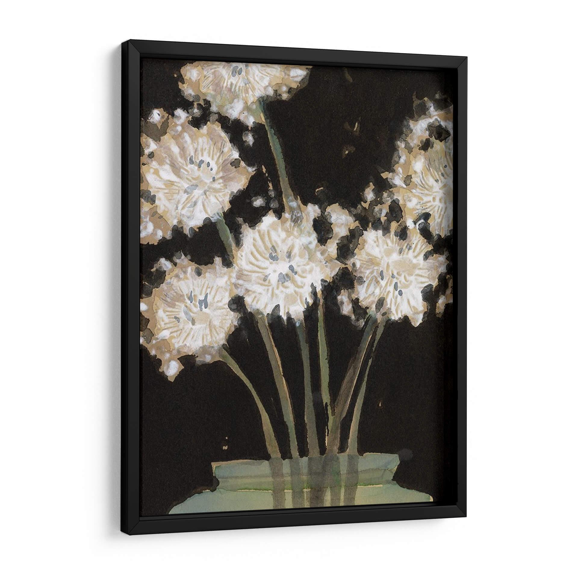 Sumérgete en la delicadeza botánica de "Dandy Leones I", una obra de Samuel Dixon que captura la esencia efímera de las flores con una técnica magistral. Este cuadro decorativo presenta un ramillete de flores blancas y doradas, cuyos pétalos detallados contrastan elegantemente con un fondo oscuro y profundo. Los trazos sueltos y la paleta de colores que oscila entre los ocres, blancos y toques de verde y azul pálido, evocan una sensación de serenidad y sofisticación. La composición, centrada en el vibrante arreglo floral, invita a la contemplación, sugiriendo la belleza intrínseca de la naturaleza en su máxima expresión. Ideal para añadir un toque de elegancia atemporal a salones, dormitorios o estudios, este arte de pared es una pieza que inspira calma y aprecio por los detalles sutiles. Su estilo, que mezcla lo figurativo con una pincelada casi abstracta, lo convierte en un punto focal versátil para una amplia gama de decoraciones interiores, desde las más clásicas hasta las contemporáneas. "Dandy Leones I" no es solo una imagen, es una experiencia visual que transforma cualquier espacio en un santuario de belleza y tranquilidad.