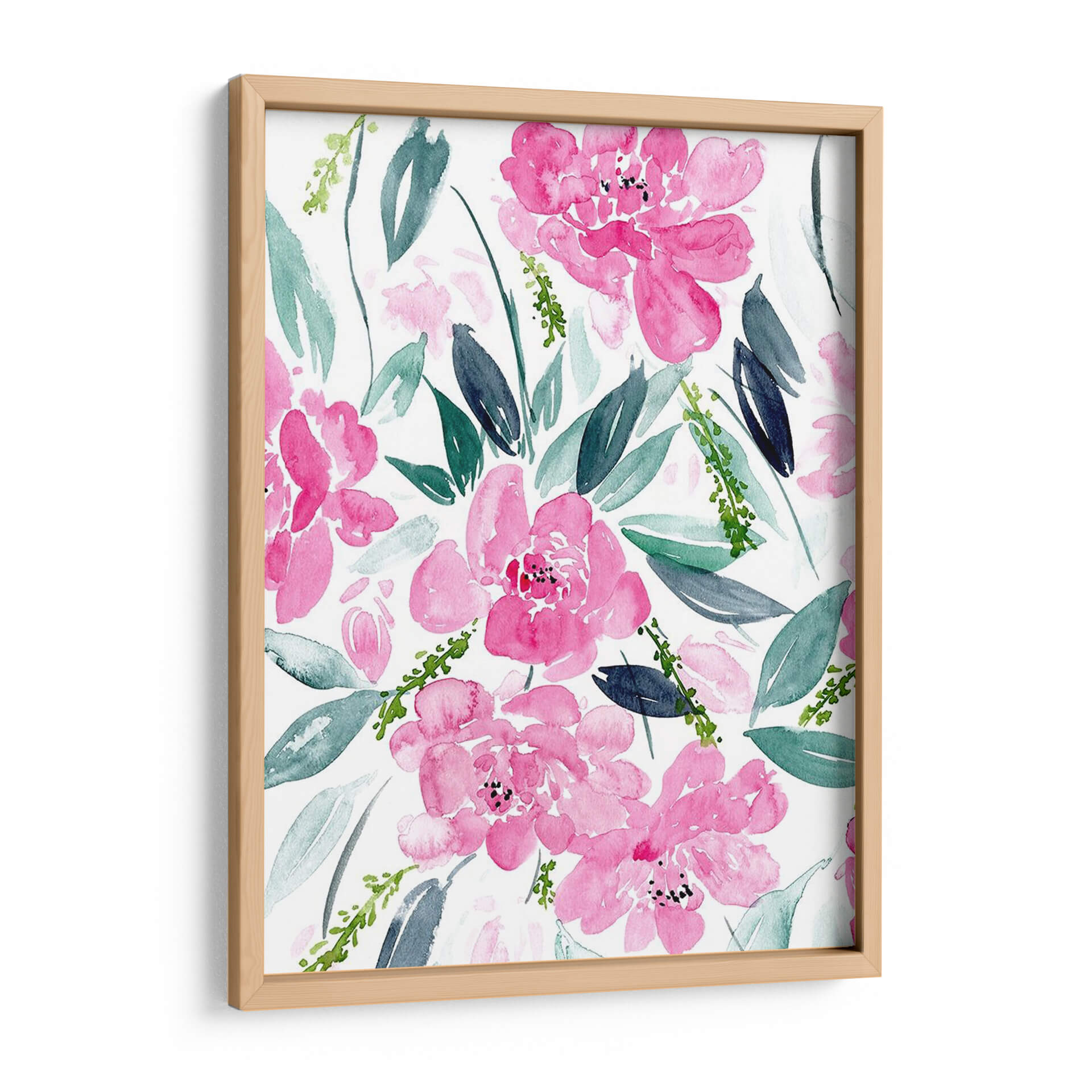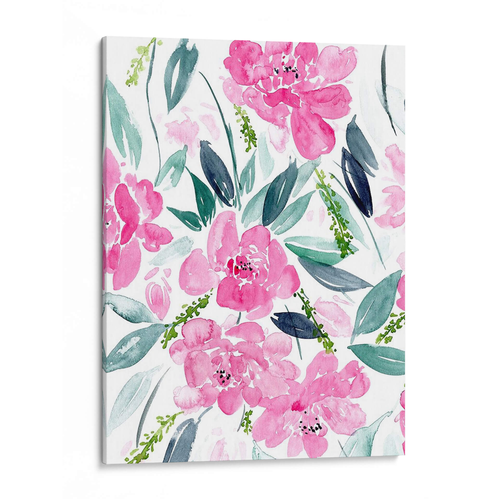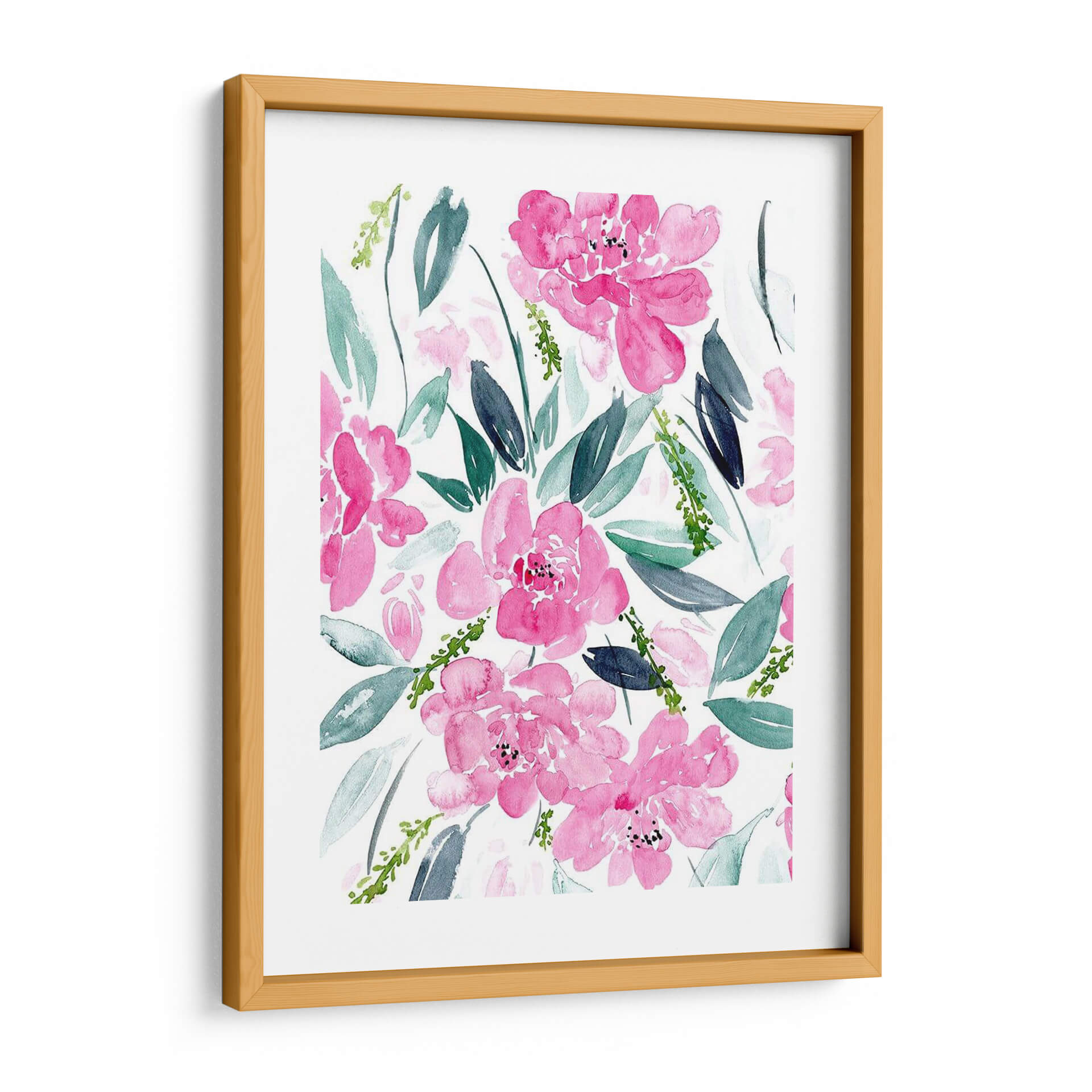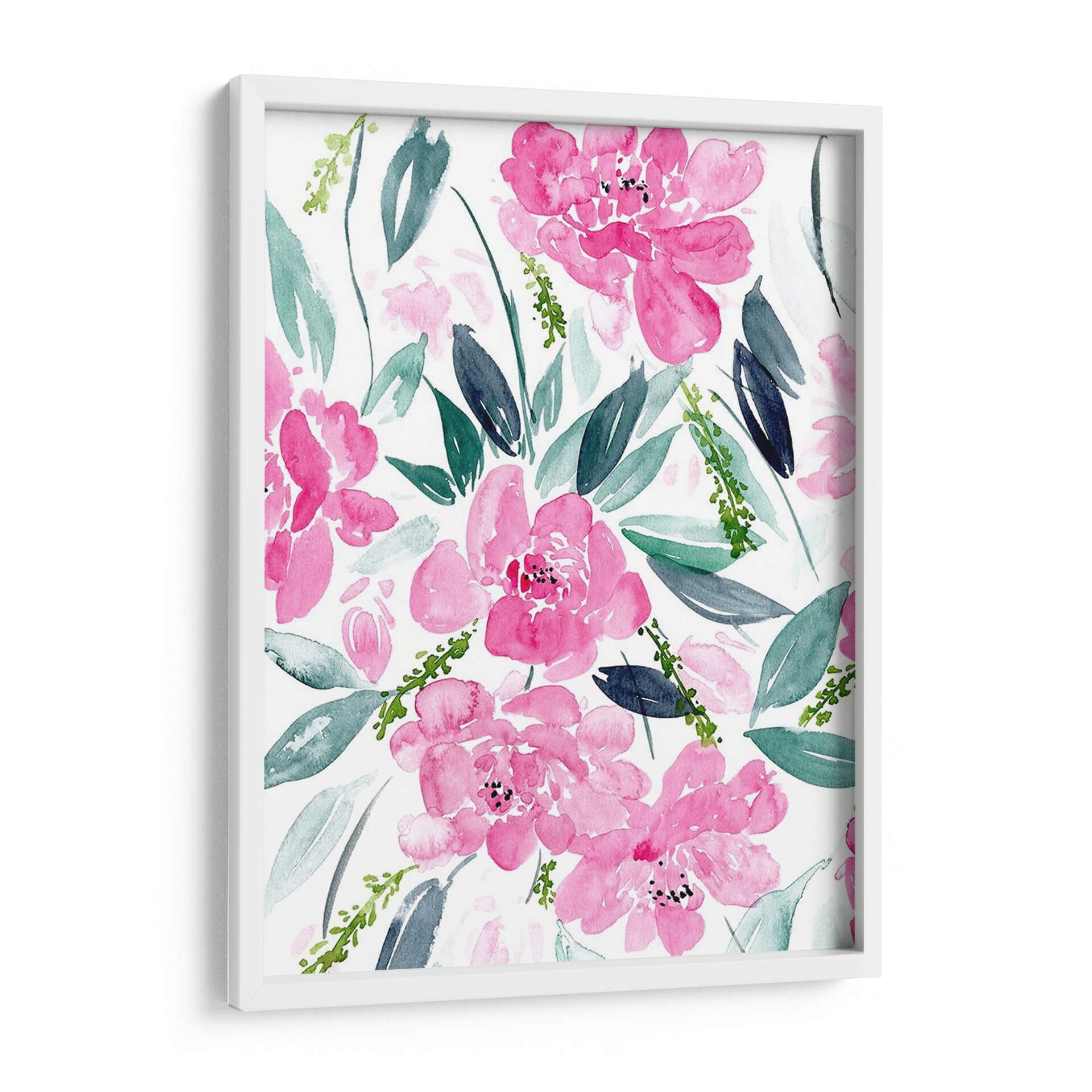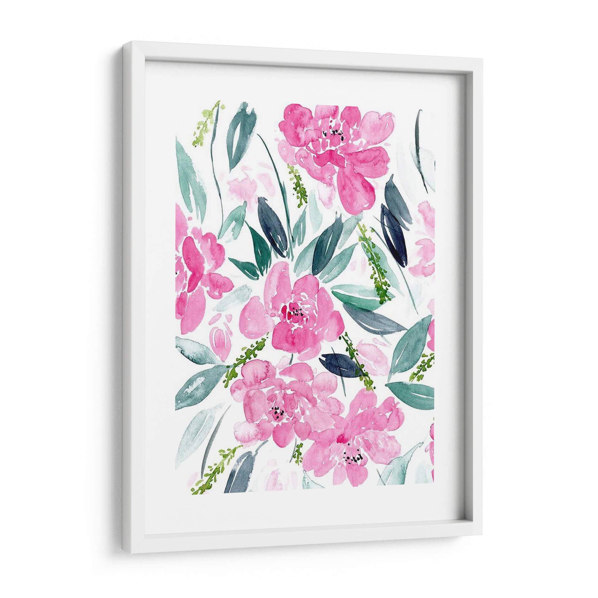 Sumérgete en la delicada belleza de "Danza De Las Flores I", una obra de arte de Melissa Wang que captura la esencia vibrante de la naturaleza con un toque contemporáneo. Este cuadro decorativo presenta una explosión de flores en tonos fucsia y rosas intensos, rodeadas de hojas en una paleta de verdes y azules grises que contrastan sutilmente. La técnica de acuarela, con sus pinceladas sueltas y etéreas, confiere a la pieza una sensación de movimiento y ligereza, como si las flores bailaran sobre el lienzo. La composición, un patrón floral denso pero armonioso, evoca una atmósfera de alegría primaveral y vitalidad, perfecta para infundir energía positiva en cualquier espacio. Ideal para quienes buscan añadir un acento de color y sofisticación a su sala de estar, dormitorio o incluso un espacio de trabajo, este cuadro decorativo es una invitación a la contemplación y al disfrute de la belleza efímera de las flores. Su estilo moderno y su ejecución magistral lo convierten en una pieza versátil que puede complementar desde decoraciones minimalistas hasta ambientes más bohemios, aportando un toque de frescura y elegancia que perdura.