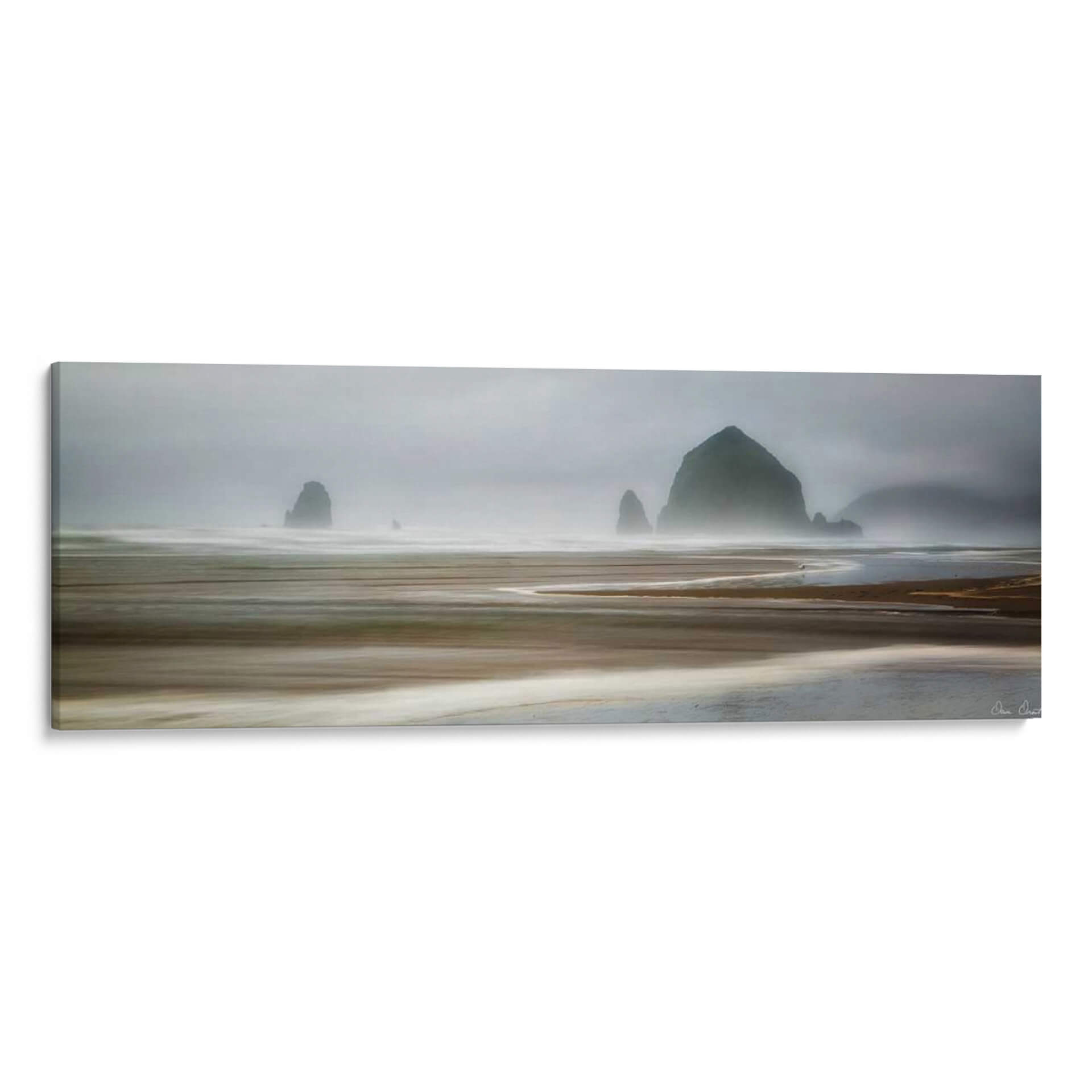 Sumérgete en la serena belleza de 'De Cañon Beach I', una obra de arte que captura la majestuosidad de la costa con una perspectiva etérea. Este cuadro decorativo transporta al espectador a un paisaje brumoso donde las formaciones rocosas se elevan imponentes sobre un mar ondulante. La paleta de colores, dominada por tonos grises, marrones y blancos suaves, evoca una atmósfera de calma y contemplación, ideal para crear un oasis de tranquilidad en tu hogar u oficina. Las pinceladas o el efecto fotográfico sugieren movimiento en el agua y el aire, añadiendo una cualidad dinámica a la composición paisajística. La perspectiva panorámica y la profundidad lograda invitan a la inmersión visual, haciendo de esta pieza un punto focal cautivador. 'De Cañon Beach I' es más que una simple decoración; es una ventana a la naturaleza, una invitación a la paz y un toque de elegancia atemporal para cualquier espacio moderno o contemporáneo. Perfecta para salas de estar, dormitorios o estudios, esta obra de David Drost infunde serenidad y sofisticación, transformando tu entorno en un refugio personal.