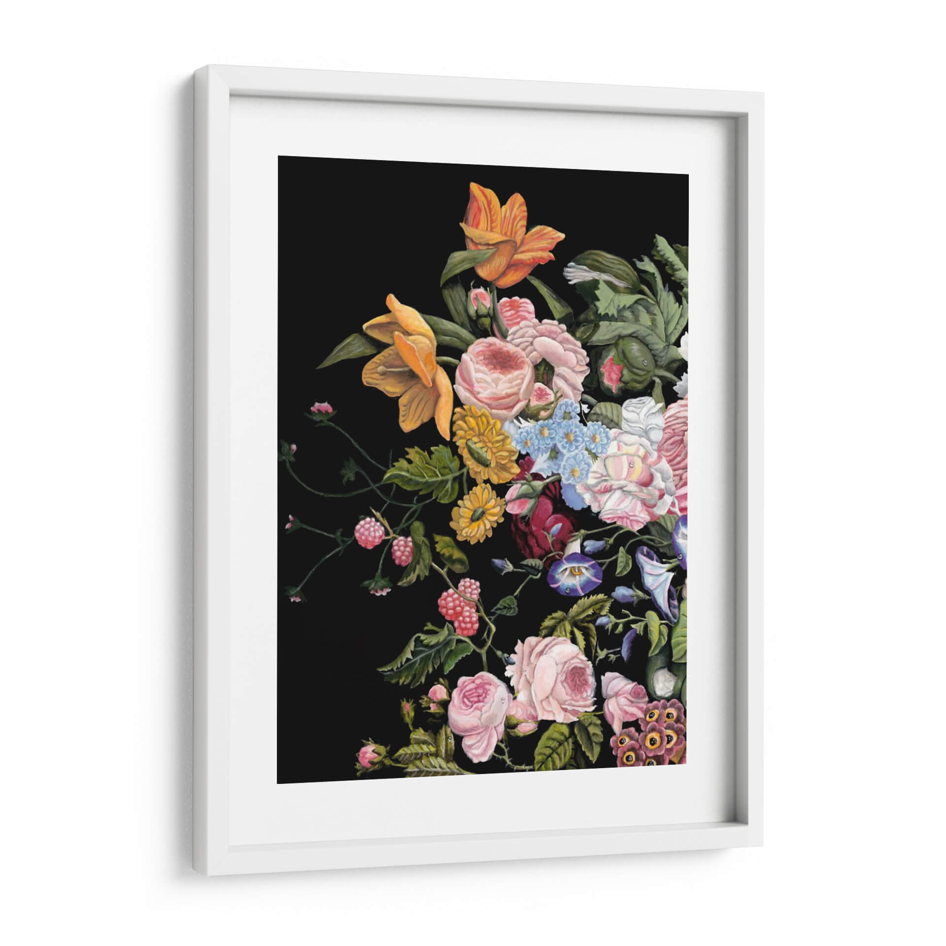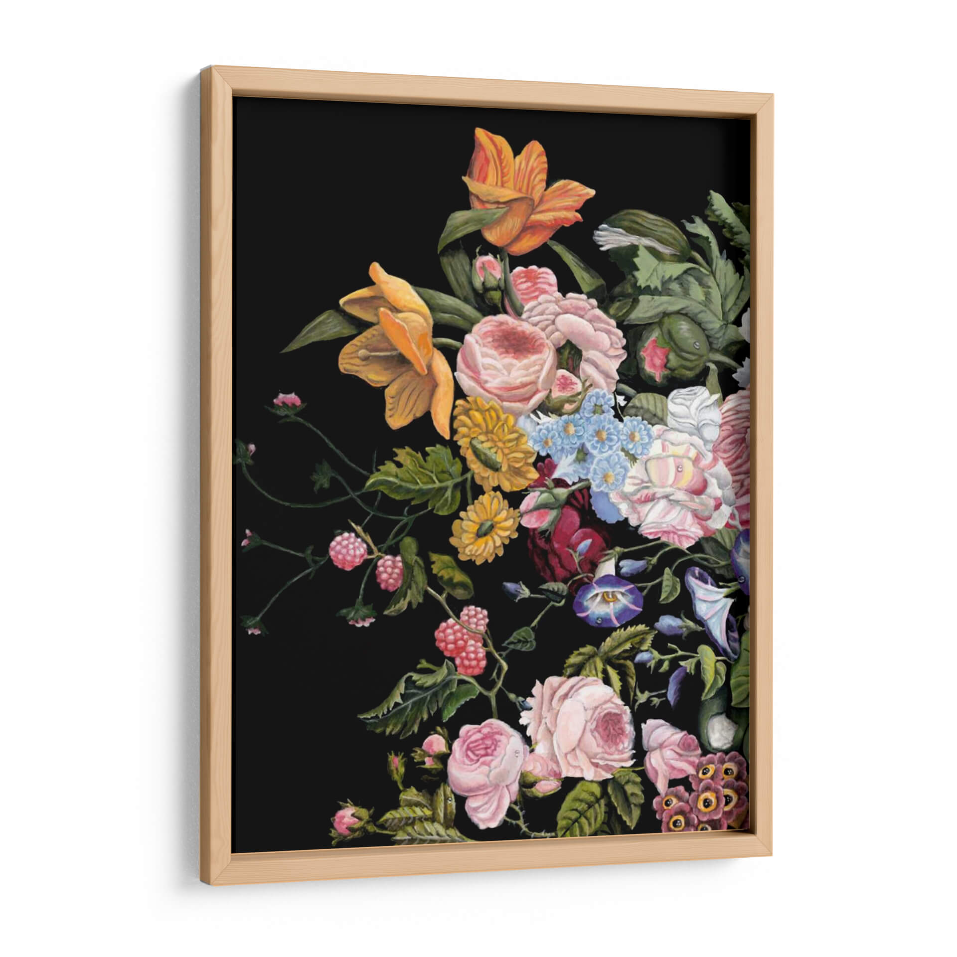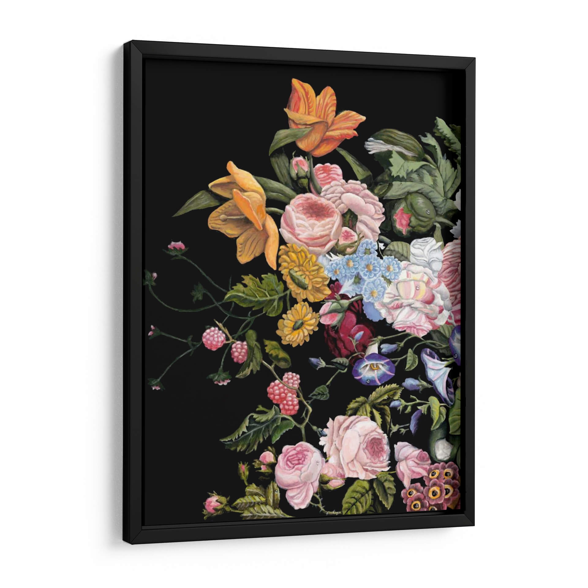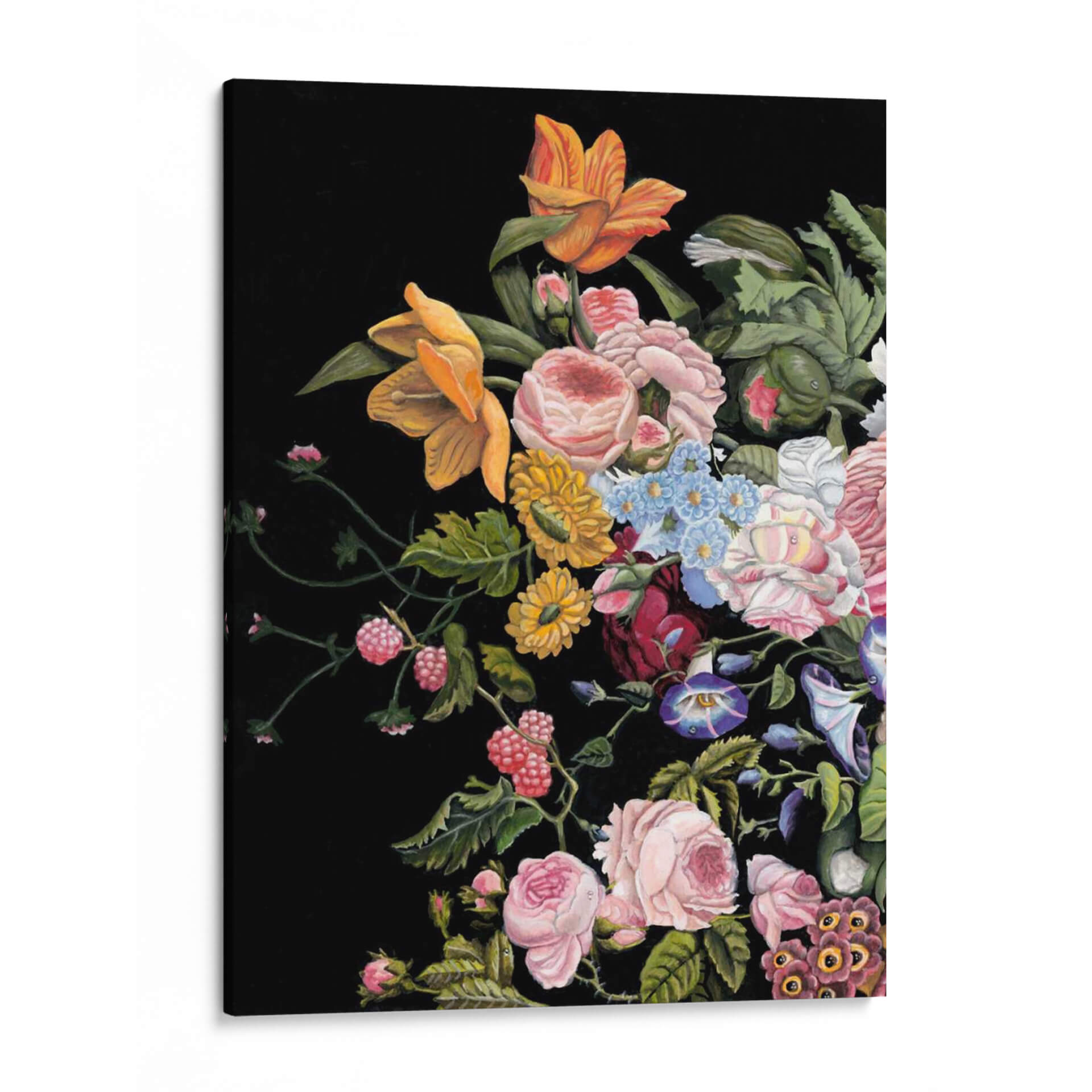 Sumérgete en la opulencia y el detalle de 'Diptych Barroco I', una obra de arte que evoca la riqueza visual de las naturalezas muertas clásicas con un toque contemporáneo. Este cuadro decorativo presenta un exuberante arreglo floral sobre un profundo fondo negro, creando un contraste dramático que realza la vibrante paleta de colores. Observa la delicadeza de los pétalos de rosa en tonos pastel, el vibrante naranja de los tulipanes, el azul sereno de las flores pequeñas y los toques de bayas rojas que añaden un punto de interés. La composición, que se despliega desde la esquina superior izquierda hacia abajo, invita a la contemplación, ofreciendo una sensación de profundidad y detalle intrincado. La atmósfera es a la vez elegante y ligeramente misteriosa, perfecta para añadir un toque de sofisticación a tu sala de estar, comedor o estudio. Ideal para quienes aprecian el arte floral detallado y buscan una pieza que sea a la vez clásica y moderna, este cuadro decorativo aportará un aire de refinamiento y belleza atemporal a cualquier espacio, convirtiéndose en un punto focal cautivador que invita a la admiración.