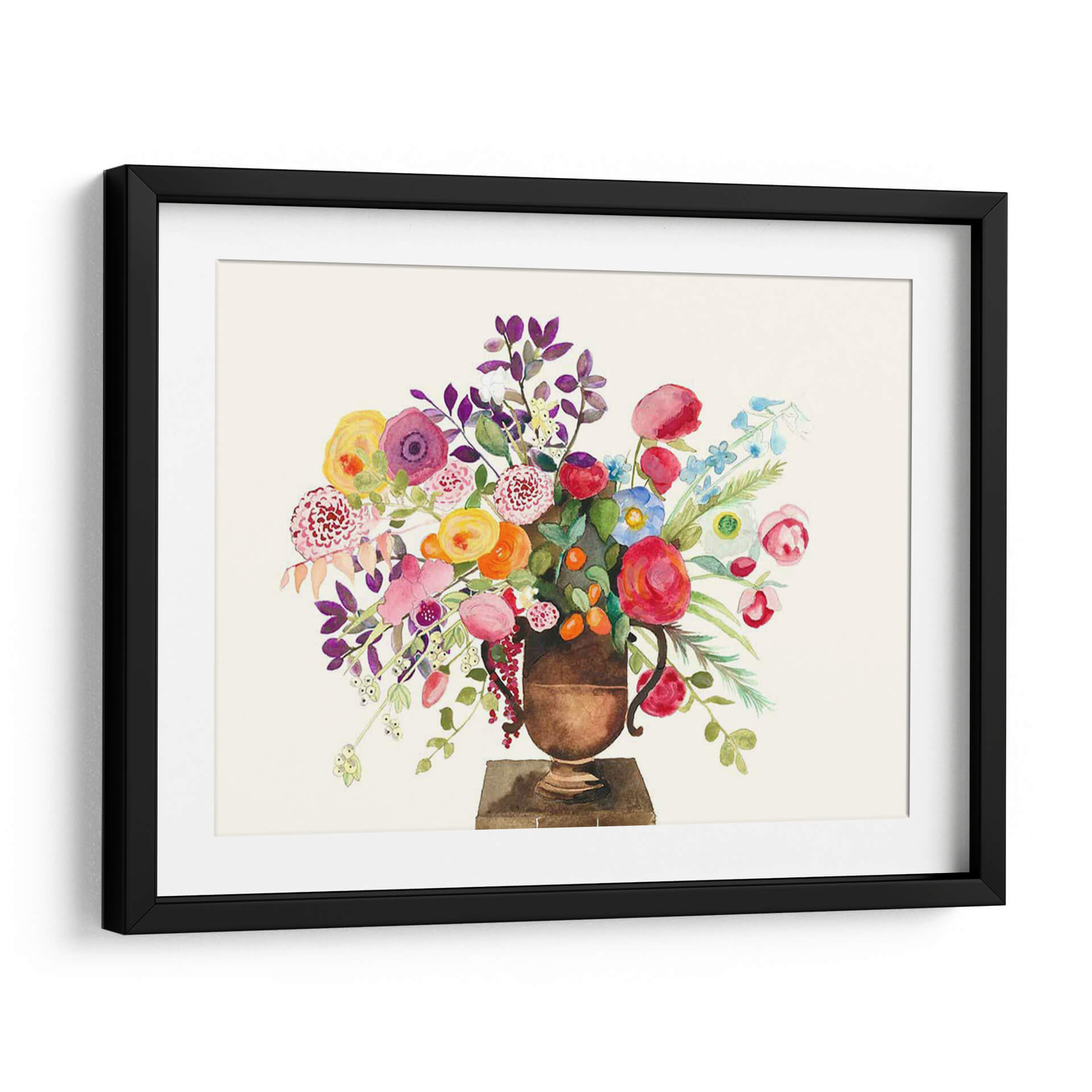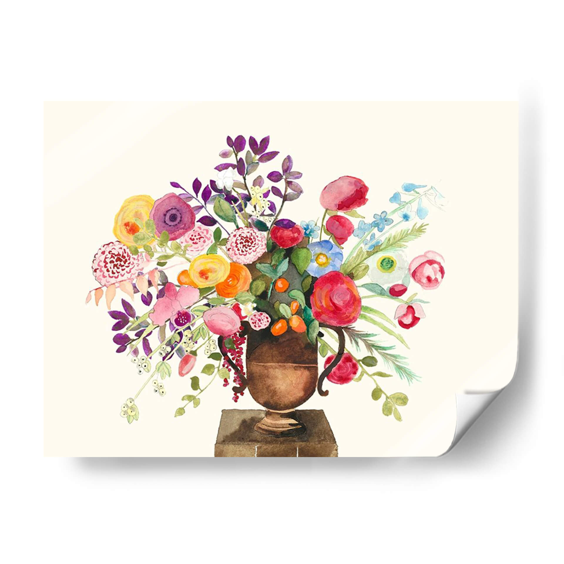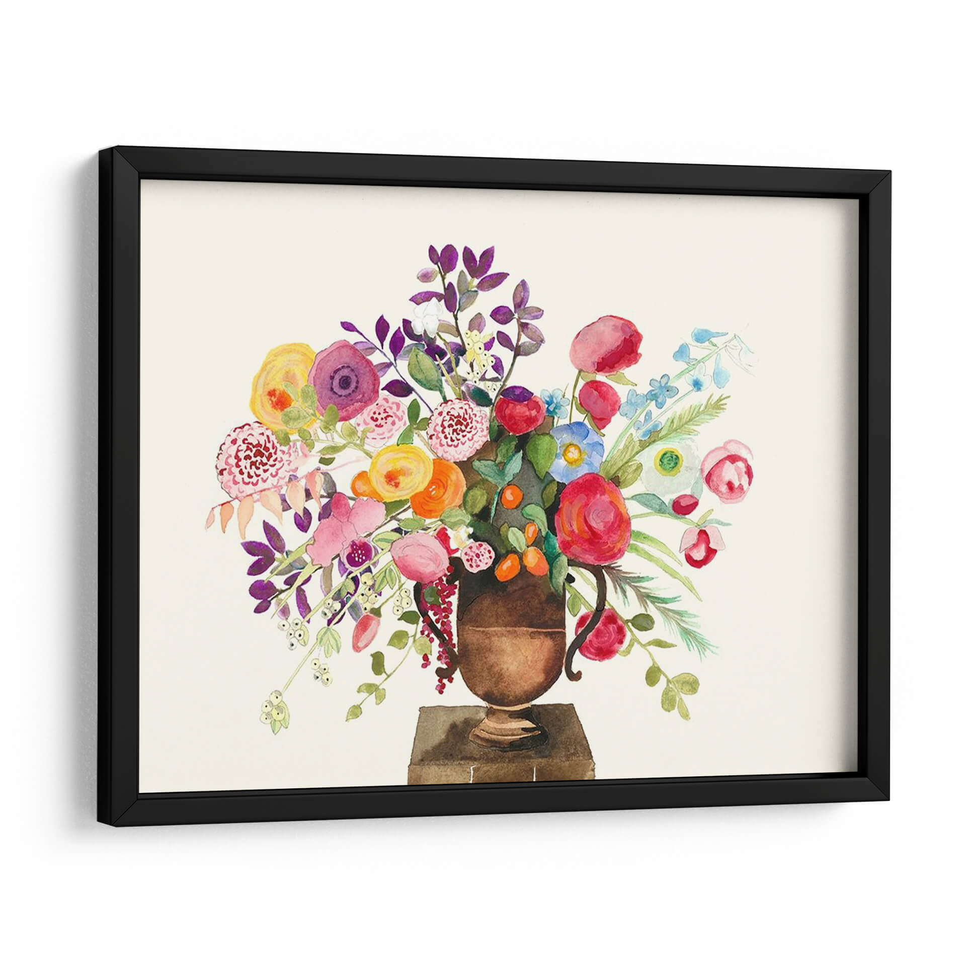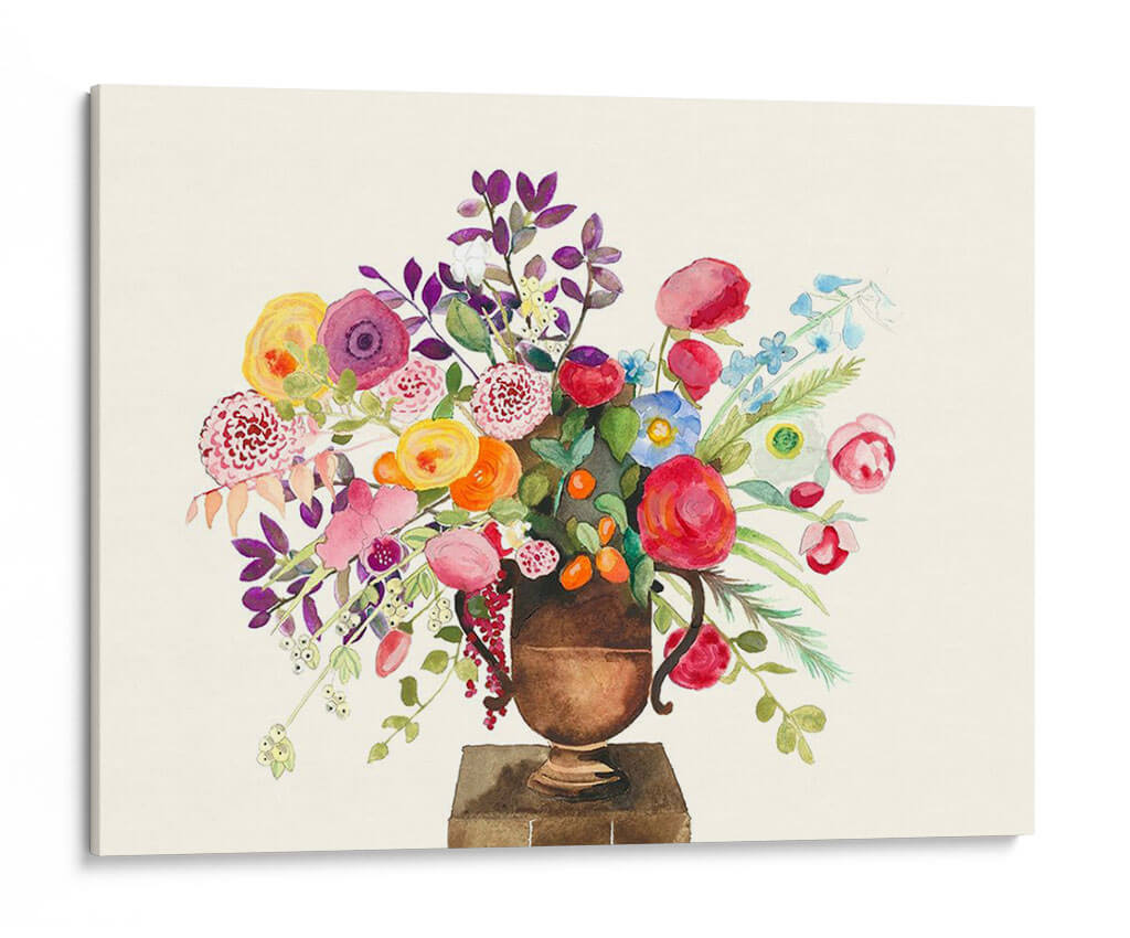 Sumérgete en la vibrante belleza de "Disposición Soleada II" de Alicia Ludwig, una obra de arte que captura la esencia de un jardín exuberante en plena floración. Este cuadro decorativo despliega un tapiz de colores vivos y formas orgánicas, dominado por rosas intensos, naranjas cálidos, amarillos alegres y toques de azul y púrpura, todo ello enmarcado en un sereno fondo de color crema. La composición, que presenta un rico ramo de flores dispuestas en una urna rústica, evoca una sensación de abundancia y alegría natural. El estilo artístico, que combina la delicadeza de la acuarela con una pincelada suelta y expresiva, dota a la pieza de una frescura contemporánea, ideal para quienes buscan infundir vitalidad y optimismo en sus espacios. Este cuadro es perfecto para añadir un punto focal de color y vida a salas de estar modernas, comedores acogedores o estudios creativos. Su atmósfera soleada y optimista transforma cualquier ambiente, invitando a la contemplación y al disfrute de la belleza efímera de la naturaleza. "Disposición Soleada II" es más que una simple decoración; es una ventana a un mundo de color y serenidad.