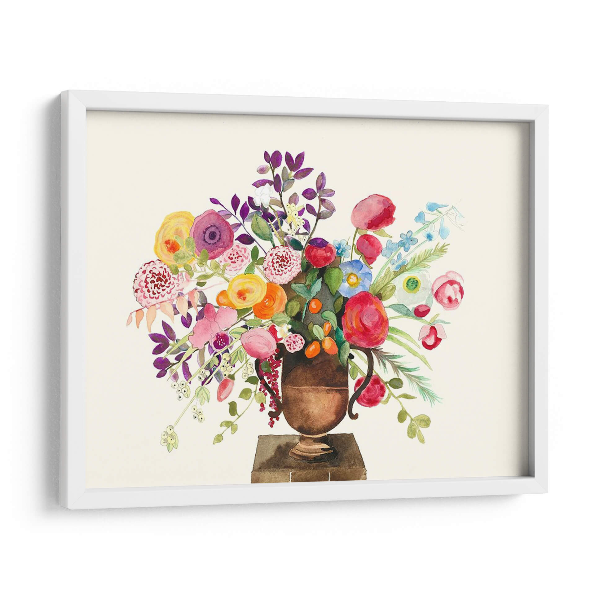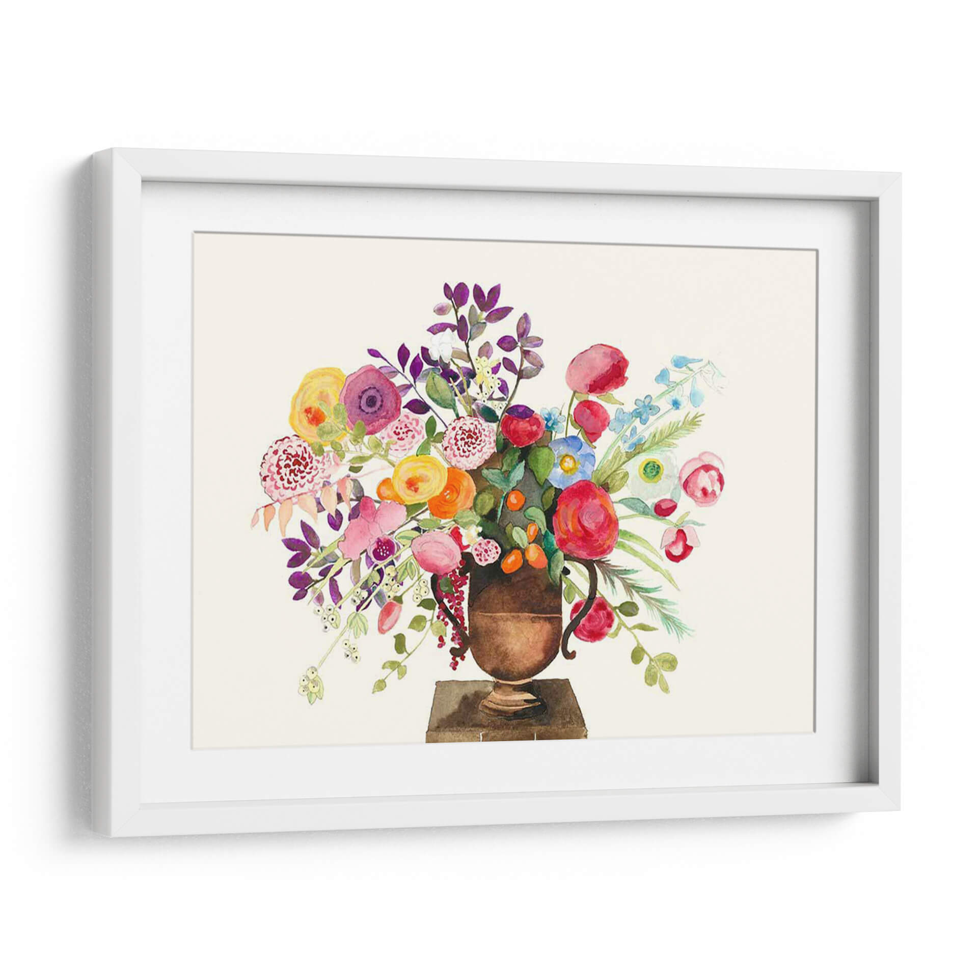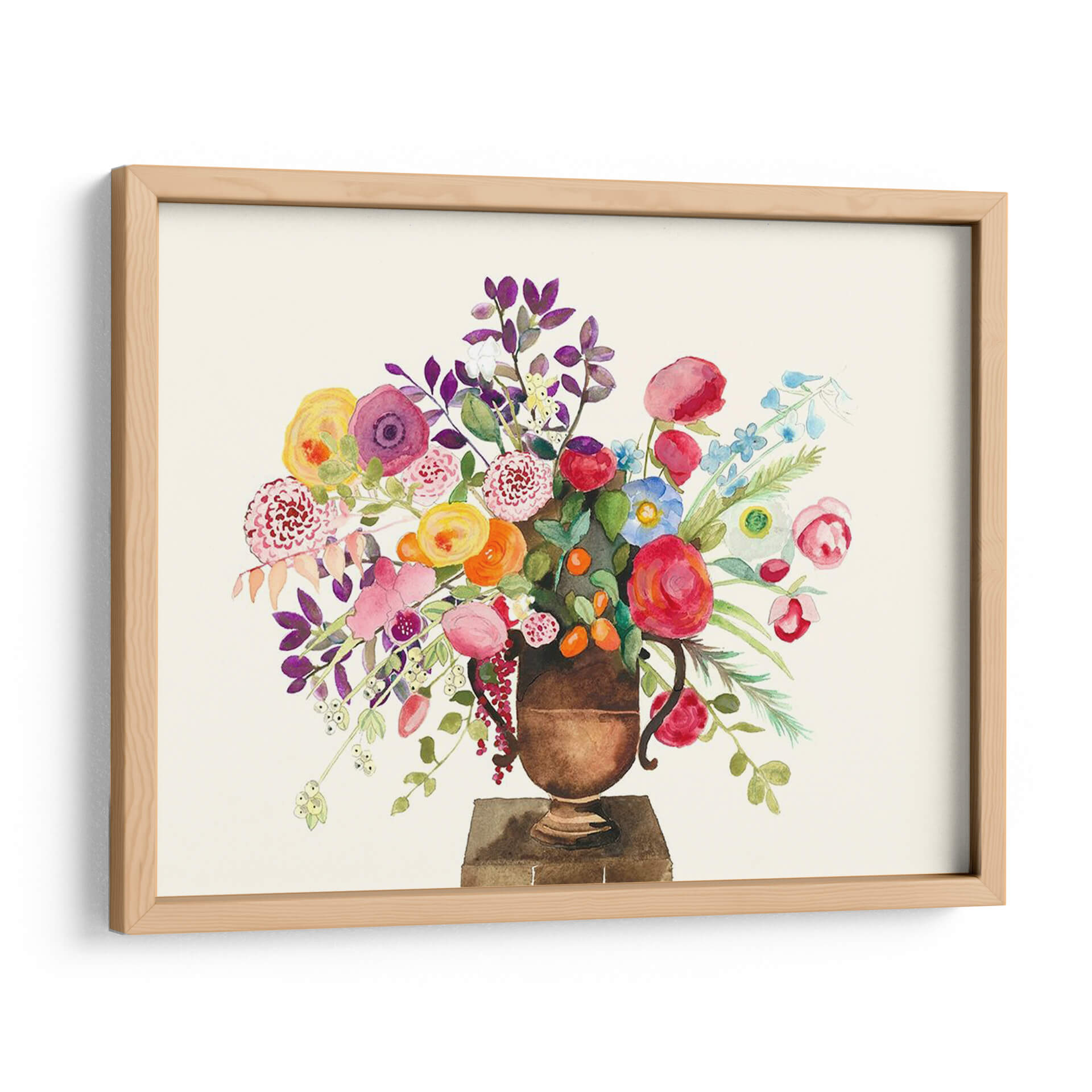 Sumérgete en la vibrante belleza de "Disposición Soleada II" de Alicia Ludwig, una obra de arte que captura la esencia de un jardín exuberante en plena floración. Este cuadro decorativo despliega un tapiz de colores vivos y formas orgánicas, dominado por rosas intensos, naranjas cálidos, amarillos alegres y toques de azul y púrpura, todo ello enmarcado en un sereno fondo de color crema. La composición, que presenta un rico ramo de flores dispuestas en una urna rústica, evoca una sensación de abundancia y alegría natural. El estilo artístico, que combina la delicadeza de la acuarela con una pincelada suelta y expresiva, dota a la pieza de una frescura contemporánea, ideal para quienes buscan infundir vitalidad y optimismo en sus espacios. Este cuadro es perfecto para añadir un punto focal de color y vida a salas de estar modernas, comedores acogedores o estudios creativos. Su atmósfera soleada y optimista transforma cualquier ambiente, invitando a la contemplación y al disfrute de la belleza efímera de la naturaleza. "Disposición Soleada II" es más que una simple decoración; es una ventana a un mundo de color y serenidad.