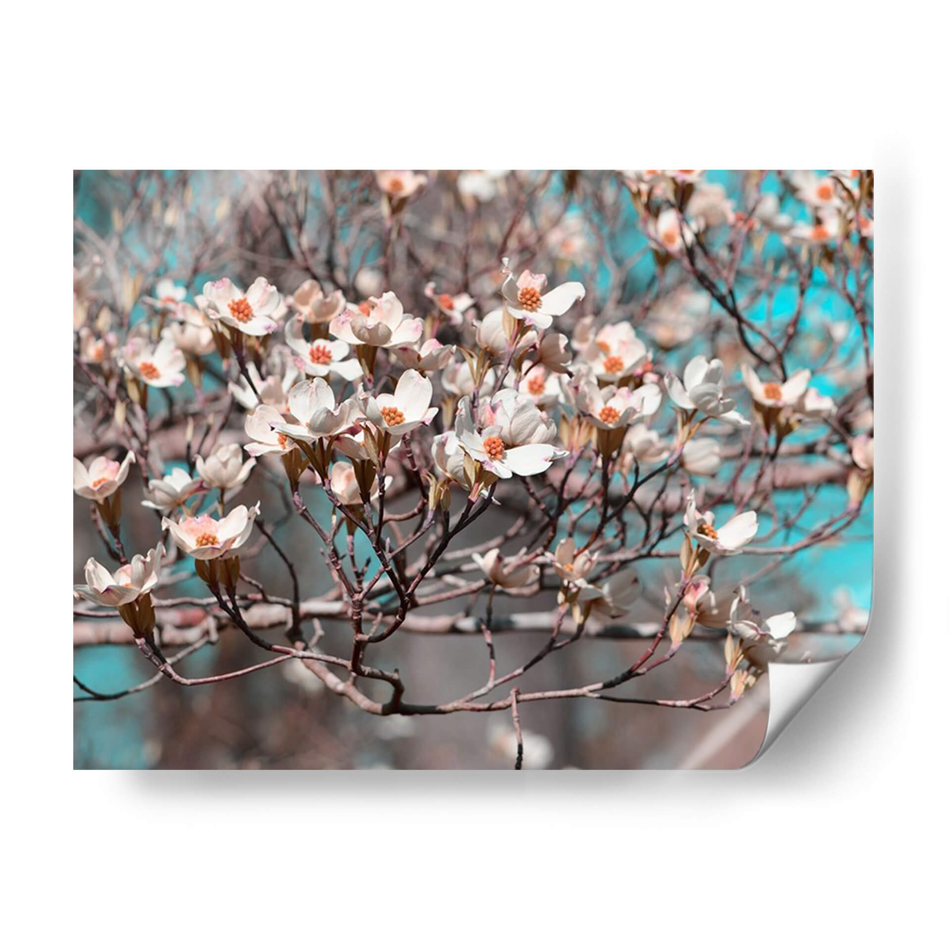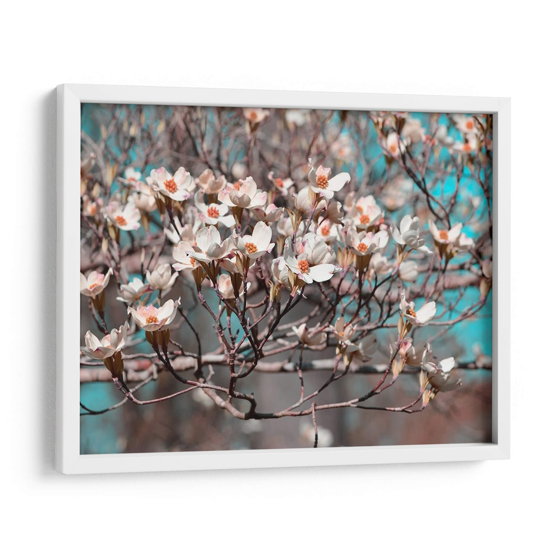 Captura la esencia de la primavera con "Dogwood Spring II", una obra de arte que celebra la delicadeza de las flores del cornejo. Sharon Chandler nos presenta un primer plano cautivador de estas emblemáticas flores blancas, salpicadas con sutiles toques de naranja en su centro, que contrastan bellamente con un fondo etéreo de tonos turquesa y marrones terrosos. La composición se centra en las ramas entrelazadas y las flores abiertas, creando una sensación de profundidad y movimiento. El estilo, que combina realismo fotográfico con un toque de suavidad impresionista, evoca una atmósfera de tranquilidad y renovación. Este cuadro decorativo es perfecto para añadir un toque de naturaleza y serenidad a cualquier espacio, ya sea una sala de estar, un dormitorio o una entrada. Su paleta de colores vibrante pero armoniosa lo convierte en un punto focal encantador que invita a la contemplación y trae la belleza efímera de la primavera al interior de tu hogar durante todo el año. Ideal para quienes buscan arte floral que transmita paz y delicadeza.