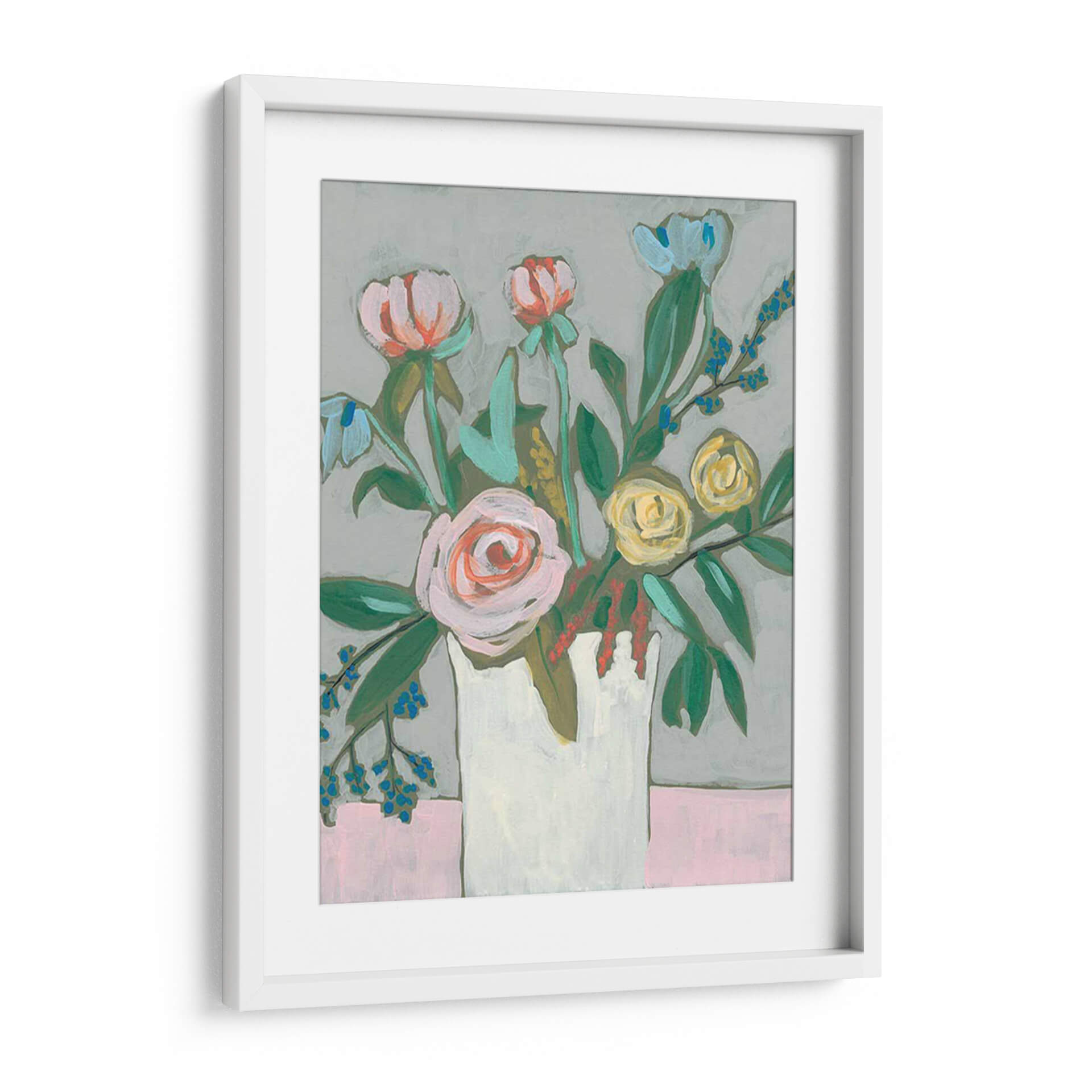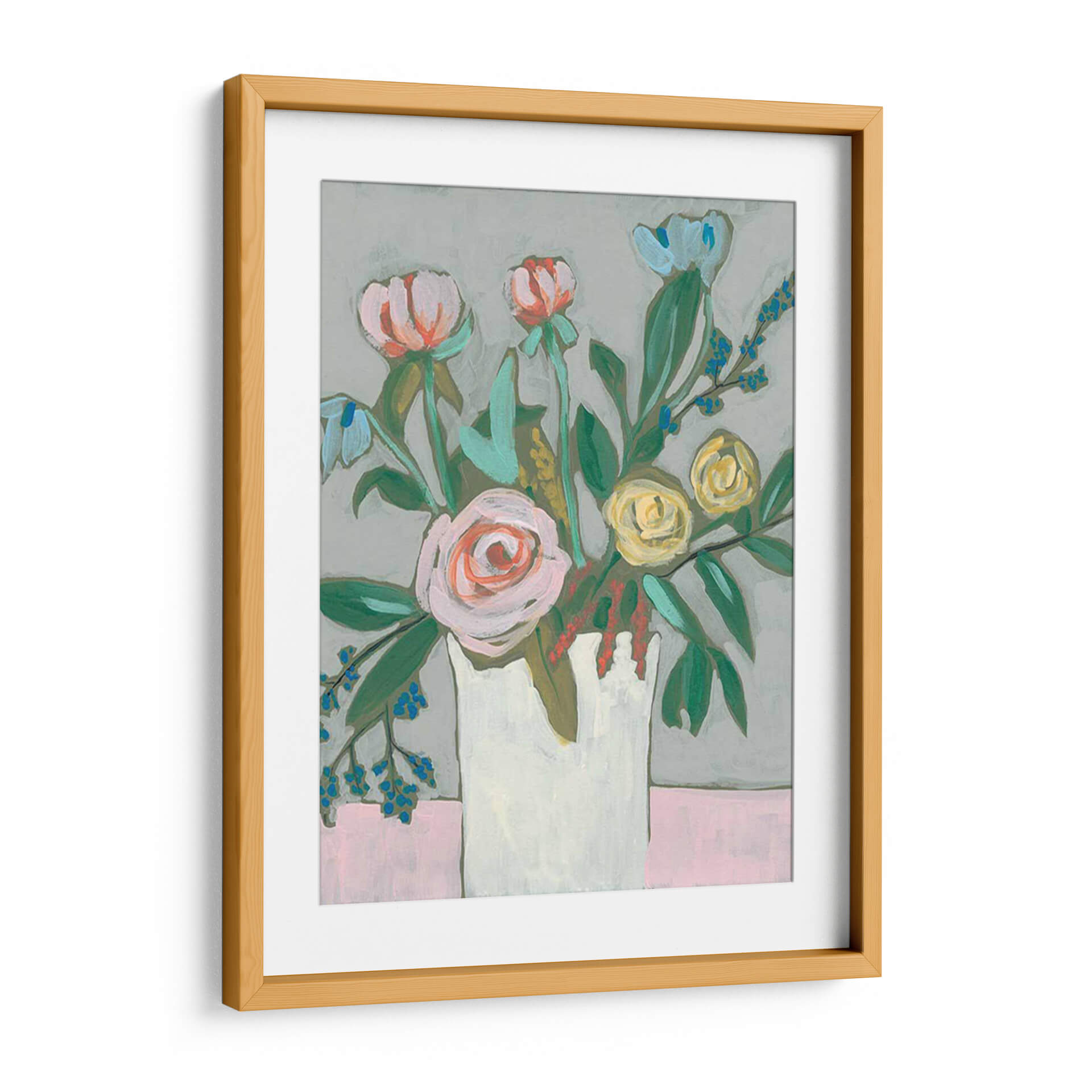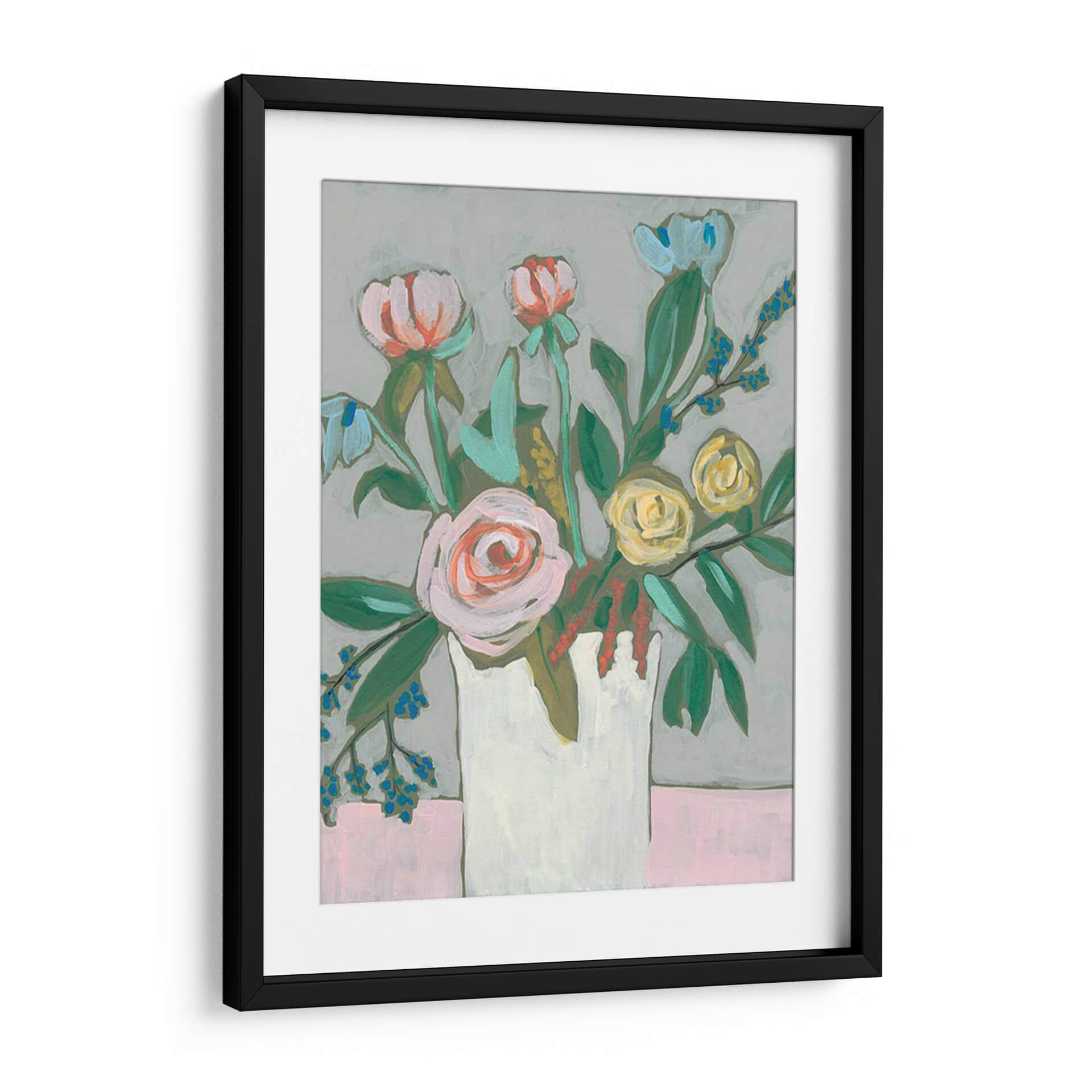 Inunda tus espacios con la delicadeza y el encanto de "Dulce Y Peculiar I", una obra de arte contemporáneo de Jennifer Goldberger. Este cuadro decorativo captura la belleza etérea de un ramo floral presentado en un jarrón blanco texturizado, sobre un fondo de suaves tonos grises y un toque de rosa pastel. La composición, con sus flores en tonos pastel de rosa, amarillo y azul, junto a un follaje verde exuberante, evoca una sensación de calma y serenidad. El estilo pictórico, con pinceladas visibles y un toque impresionista, aporta una calidez y una profundidad únicas, invitando a la contemplación. Esta pieza es ideal para añadir un acento de color sutil pero significativo a tu sala de estar, dormitorio o estudio, creando un ambiente acogedor y lleno de estilo. "Dulce Y Peculiar I" no es solo una decoración de pared, sino una invitación a disfrutar de la belleza efímera de la naturaleza en tu día a día, transformando cualquier rincón en un santuario de paz y buen gusto. Su paleta de colores y su temática floral lo convierten en una elección perfecta para quienes buscan un arte que inspire tranquilidad y belleza.