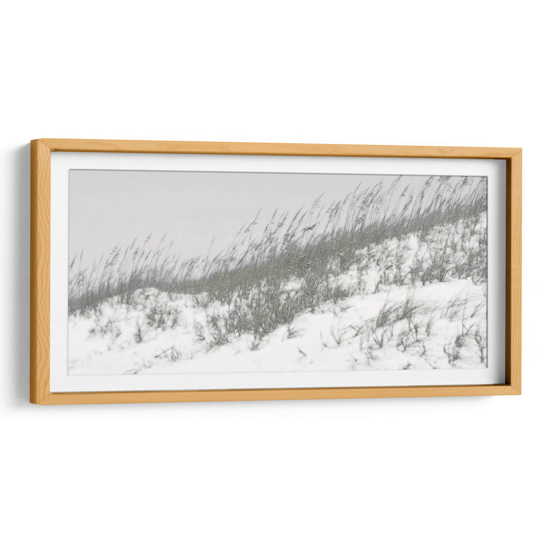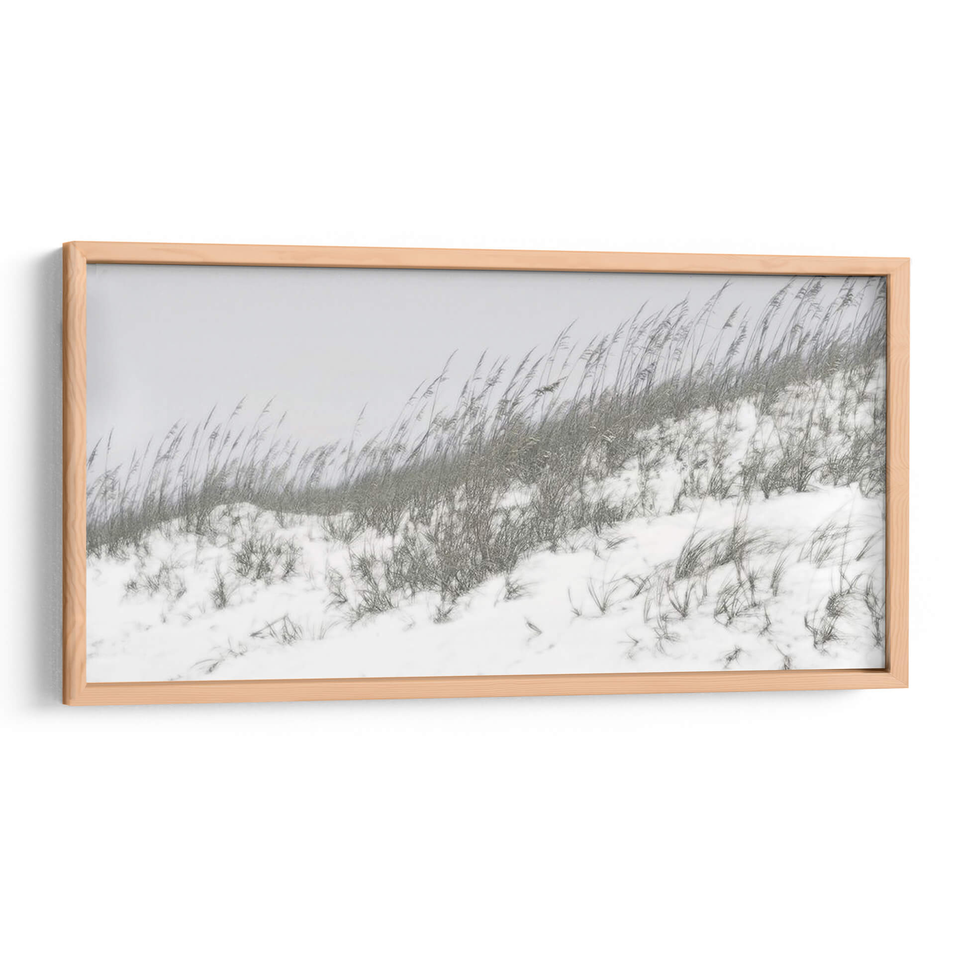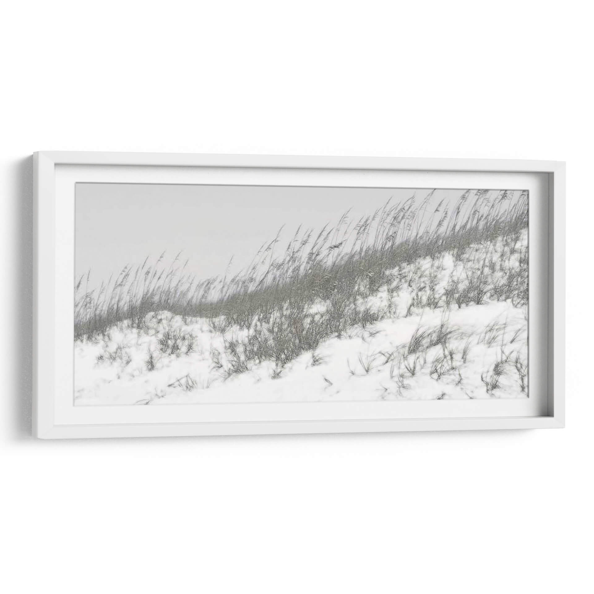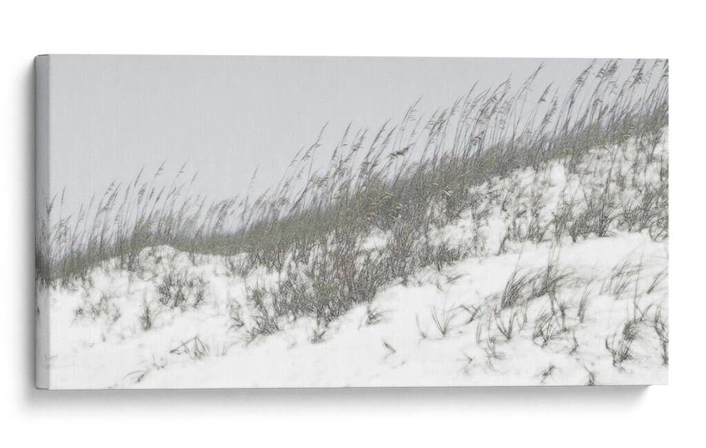Sumérgete en la serena belleza de "Dunas Exuberantes I", una obra de arte de Sharon Chandler que captura la esencia etérea de un paisaje costero invernal. Este cuadro decorativo presenta dunas cubiertas de nieve y hierbas secas meciéndose al viento, evocando una atmósfera de tranquilidad y contemplación. La paleta de colores sutil, dominada por grises suaves y blancos puros, crea una sensación de calma y minimalismo, perfecta para espacios que buscan serenidad y un toque natural. Las texturas de la nieve y la vegetación se representan con un detalle delicado, invitando al espectador a perderse en la escena. Ideal para salones, dormitorios o estudios, este arte de pared contemporáneo aporta una sensación de paz y conexión con la naturaleza. Su composición horizontal y el enfoque en la naturaleza lo convierten en una pieza versátil que complementa tanto decoraciones modernas como rústicas, añadiendo un punto de interés visual sin abrumar el espacio. Descubre la poesía silenciosa de este paisaje invernal y transforma tu hogar en un oasis de calma.